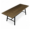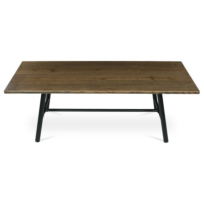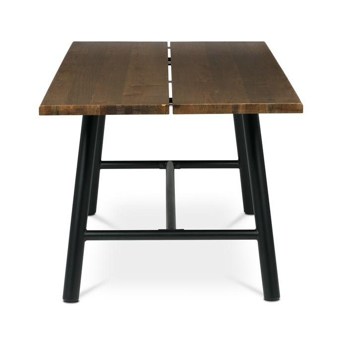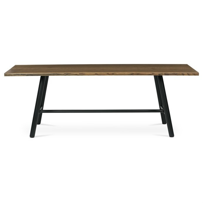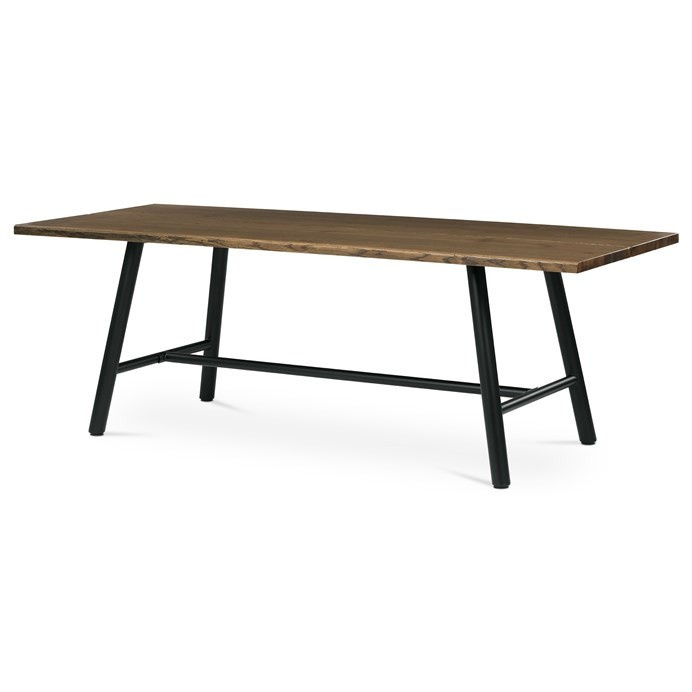 Stôl jedálenský, 220x90cm, dyha, farba orech, kovová čierna noha