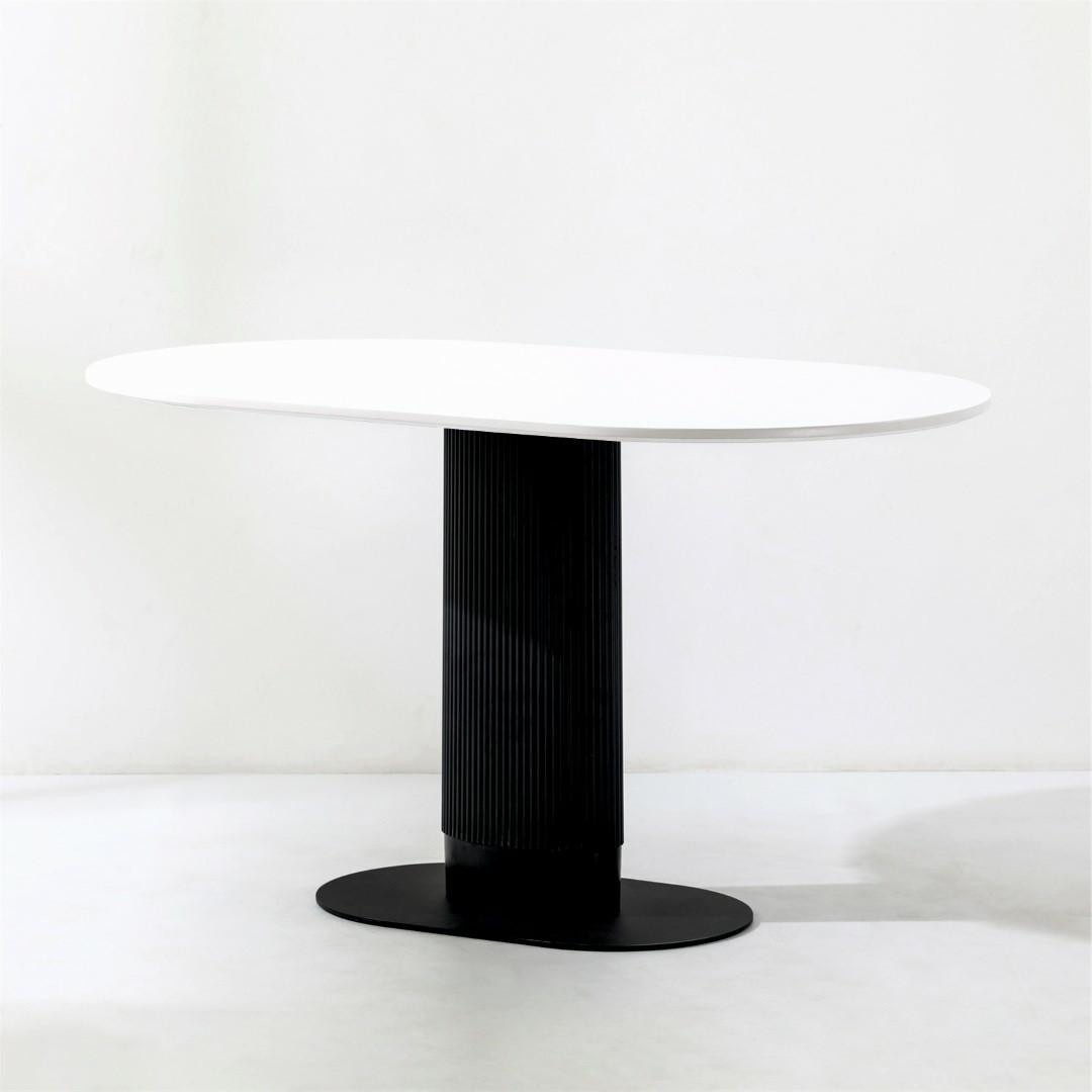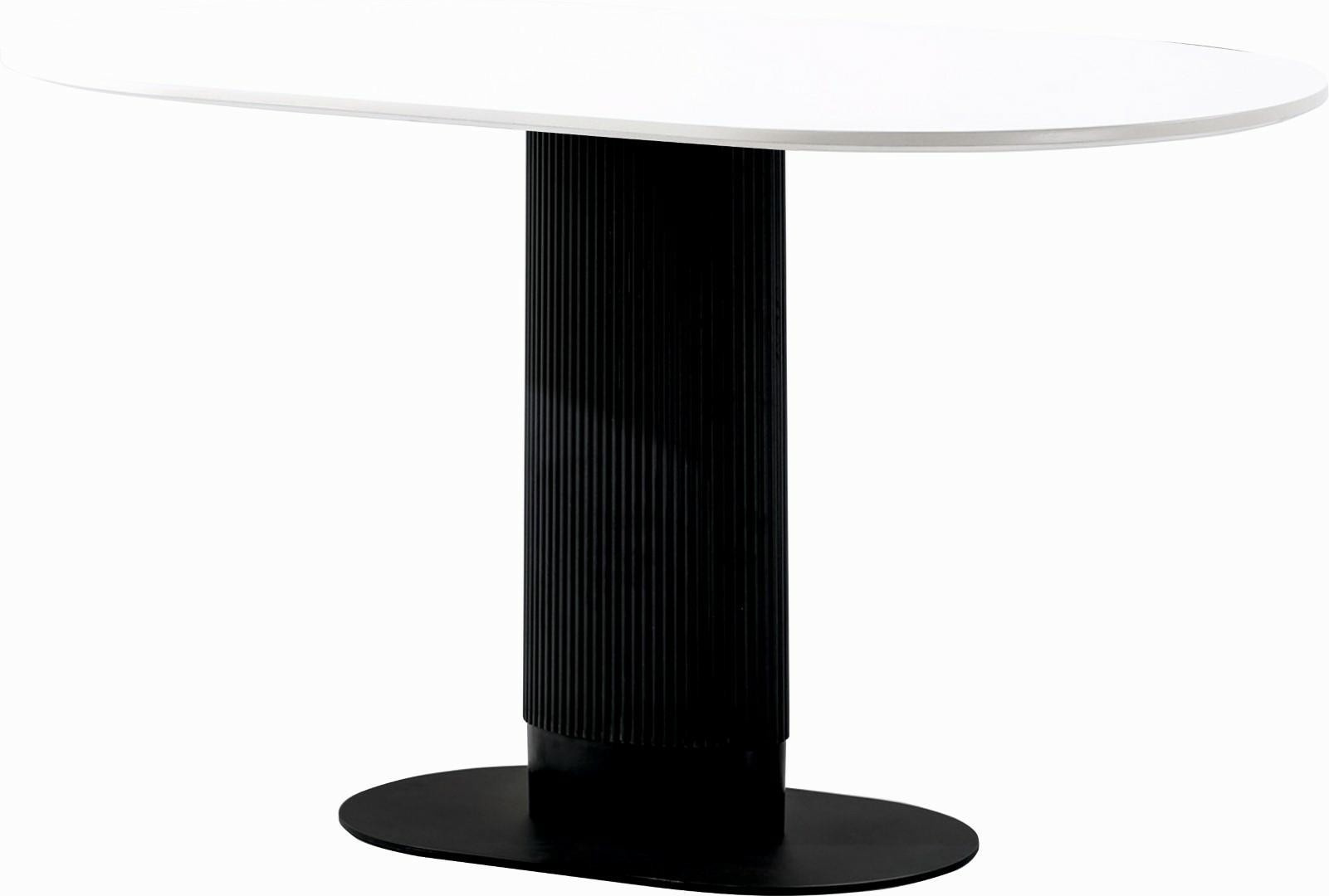 Stôl Maxim je moderný projekt s nadčasovým vzhľadom. Oválny stôl so šírkou 120 cm a hĺbkou 70 cm je ideálnou plochou pre 5-6 osôb. Stôl na jednej nohe bol vyrobený z MDF dosky a kovovej základne. Noga stola vyrobená z kovu bola ozdobená vertikálnymi lamelami z plastu, ktoré jej dodávajú moderný vzhľad. Plochá základňa stola je kovová, práškovo lakovaná na čierno. Doska stola vyrobená z odolnej MDF dosky očaruje svojím vzhľadom vďaka jemnému podrezaniu, ktoré jej dodáva ľahkosť. Stôl je k dispozícii v dvoch farebných variantoch. Vyžaduje montáž Hmotnosť stola: 25,6 kg