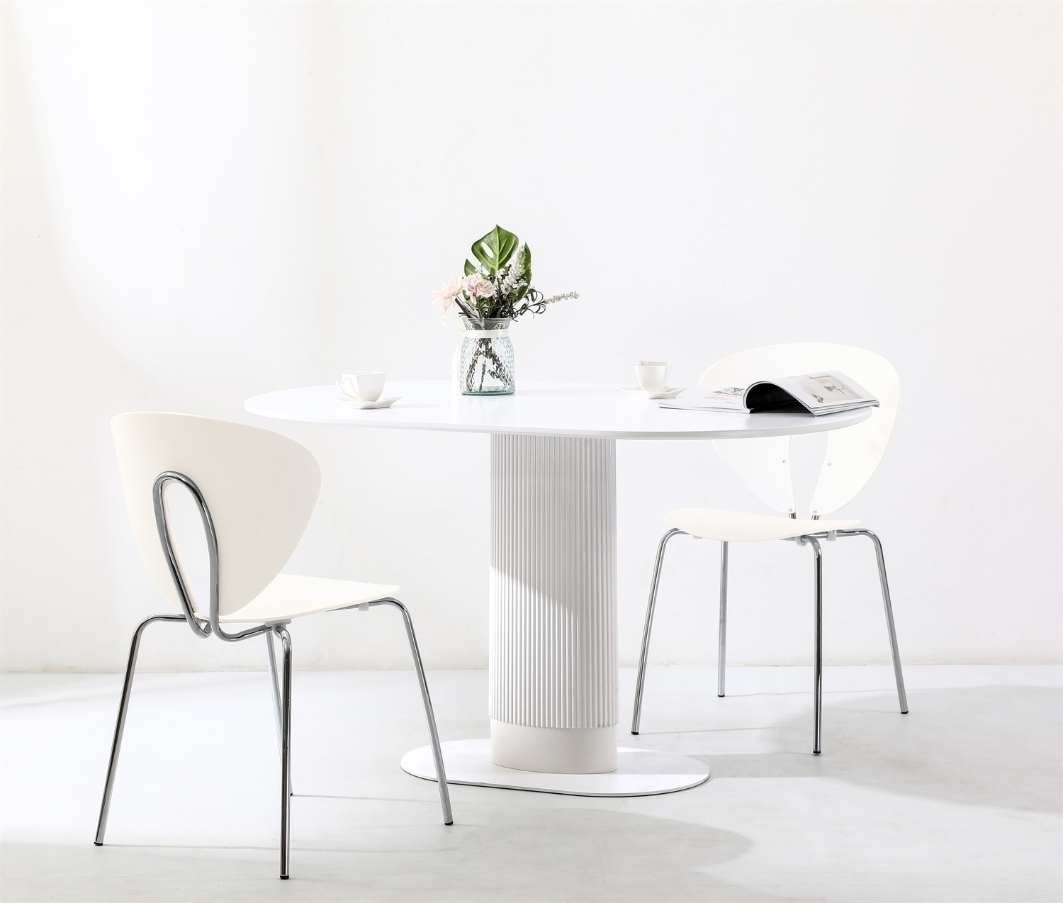 Stôl Maxim je moderný projekt s nadčasovým vzhľadom. Oválny stôl so šírkou 120 cm a hĺbkou 70 cm je ideálnou plochou pre 5-6 osôb. Stôl na jednej nohe bol vyrobený z MDF dosky a kovovej základne. Noga stola vyrobená z kovu bola ozdobená vertikálnymi lamelami z plastu, ktoré jej dodávajú moderný vzhľad. Plochá základňa stola je kovová, práškovo lakovaná na čierno. Doska stola vyrobená z odolnej MDF dosky očaruje svojím vzhľadom vďaka jemnému podrezaniu, ktoré jej dodáva ľahkosť. Stôl je k dispozícii v dvoch farebných variantoch. Vyžaduje montáž Hmotnosť stola: 25,6 kg