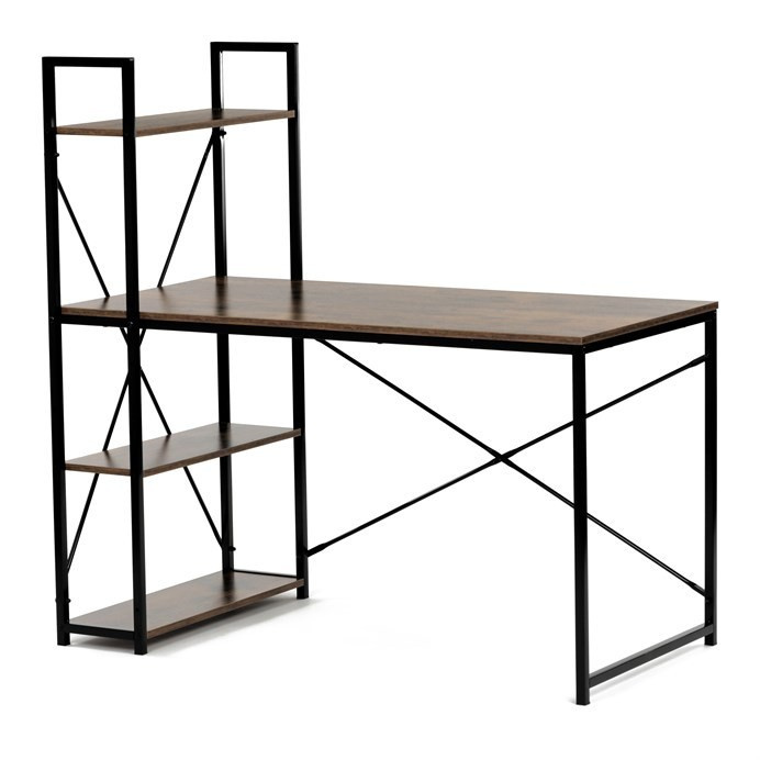 Stôl pracovný s regálom, MDF, dekor staré drevo, čierny kov