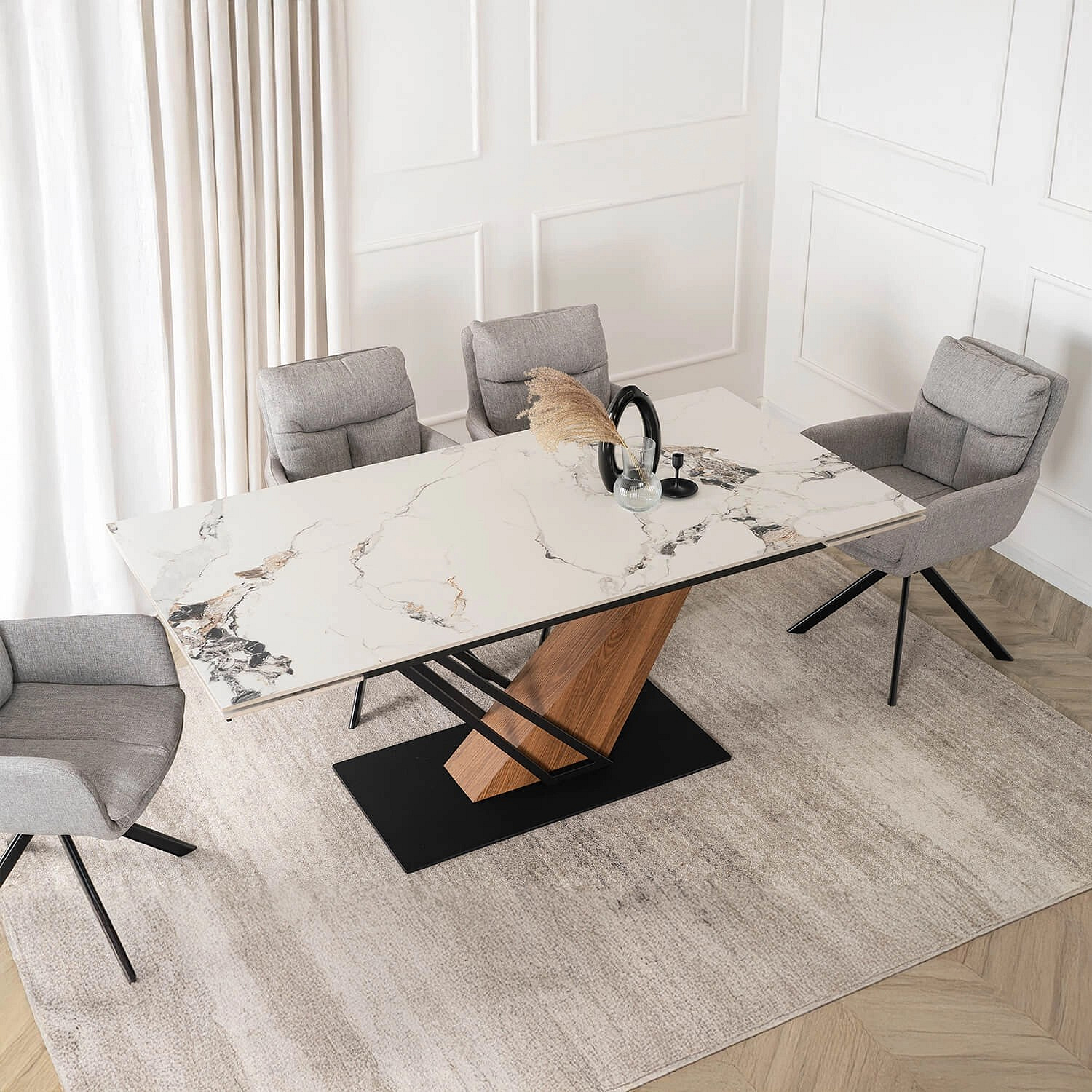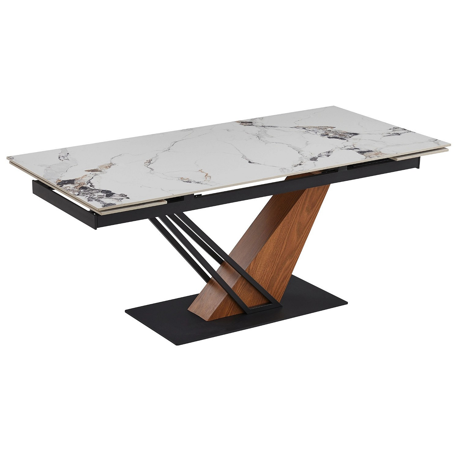 Stôl REX 2 Keramický Rozkladací 180-240 cm Biely Mramor/Dub