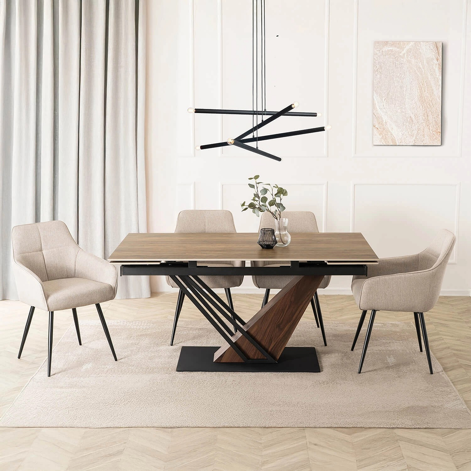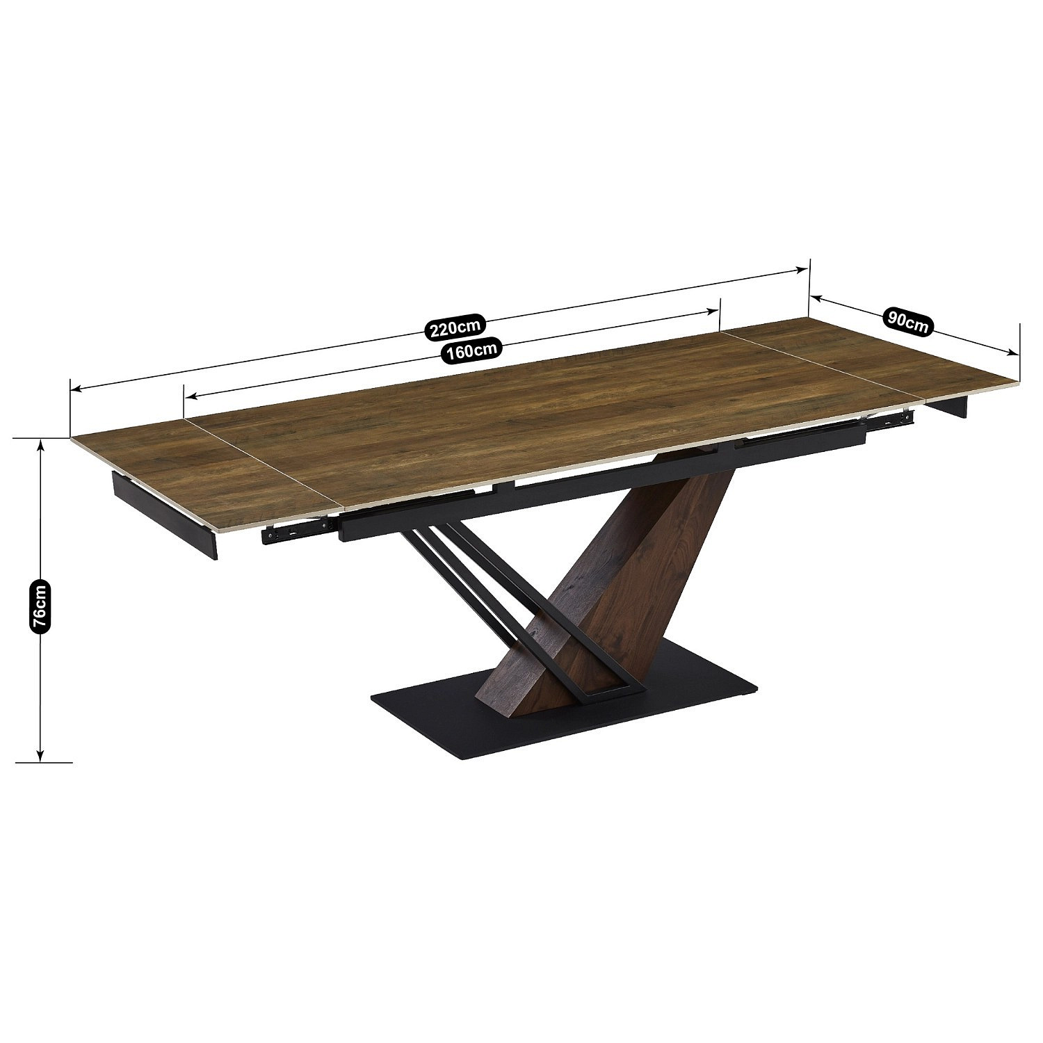 Stôl REX Keramický Rozkladací 160-220 cm Tmavo hnedý/Čierny