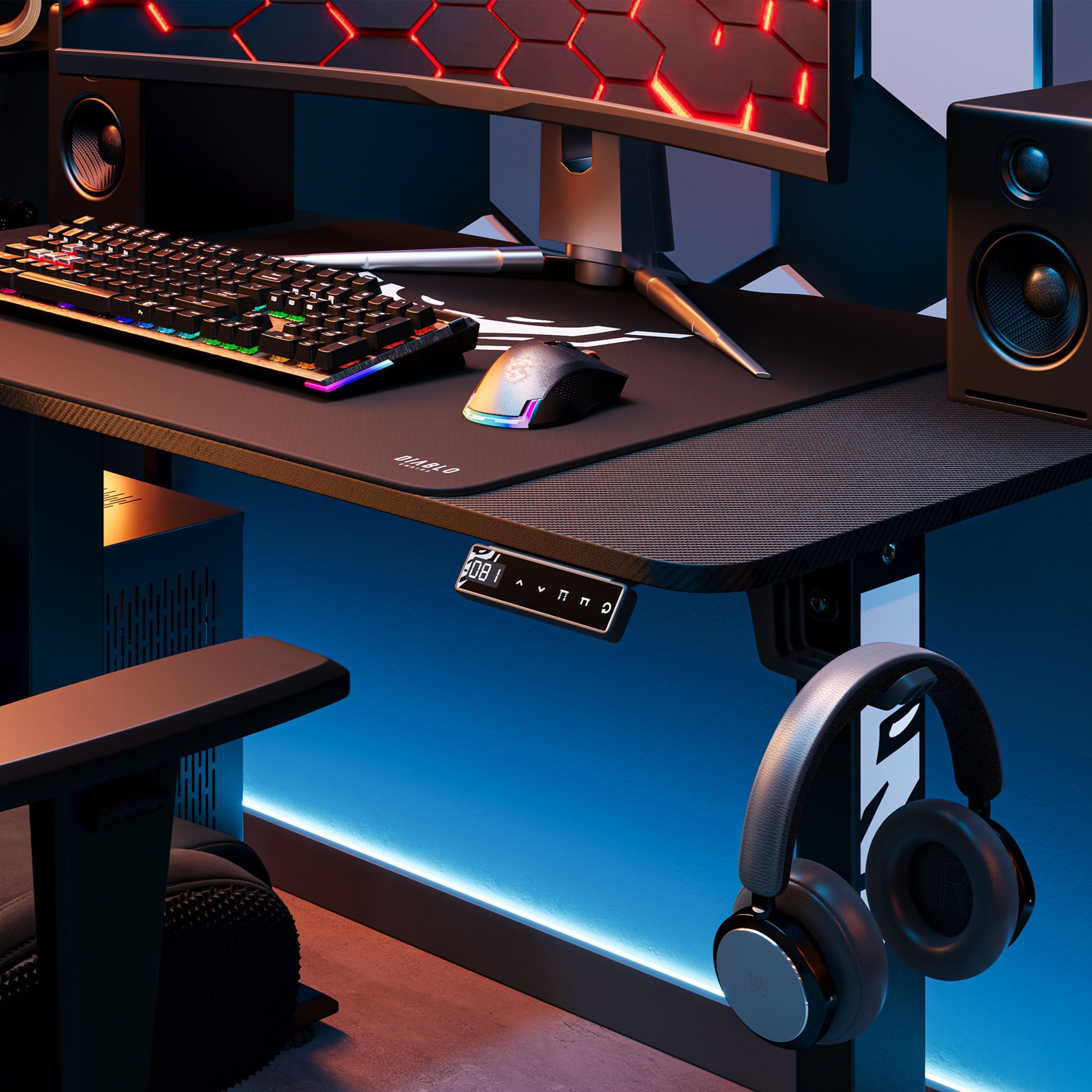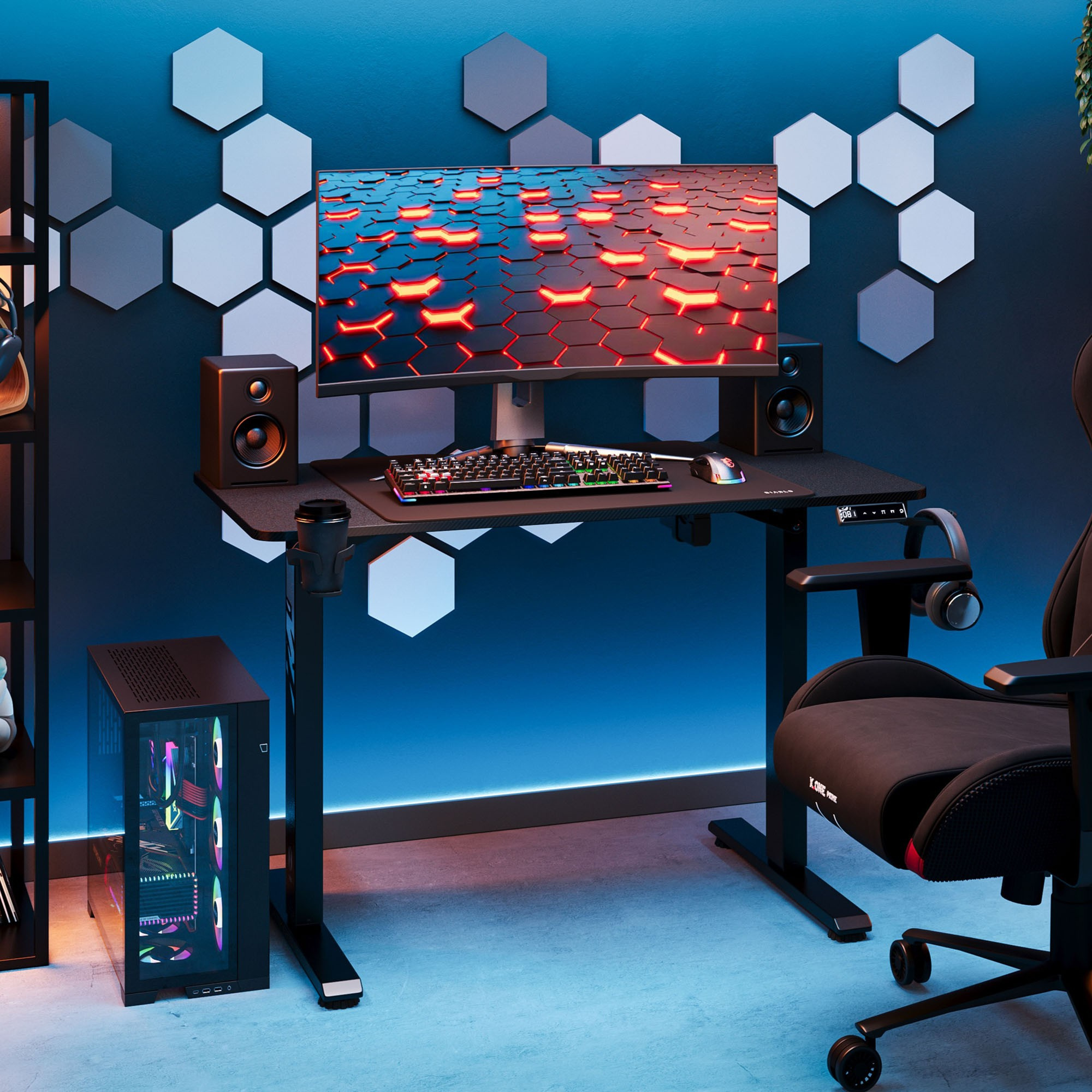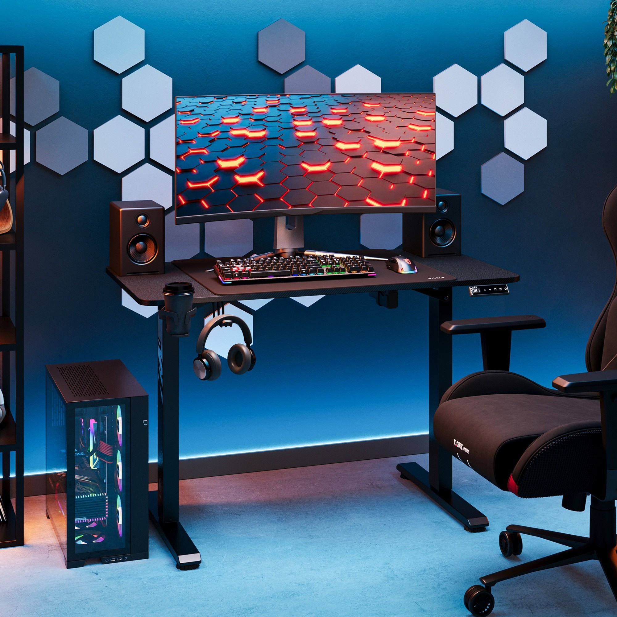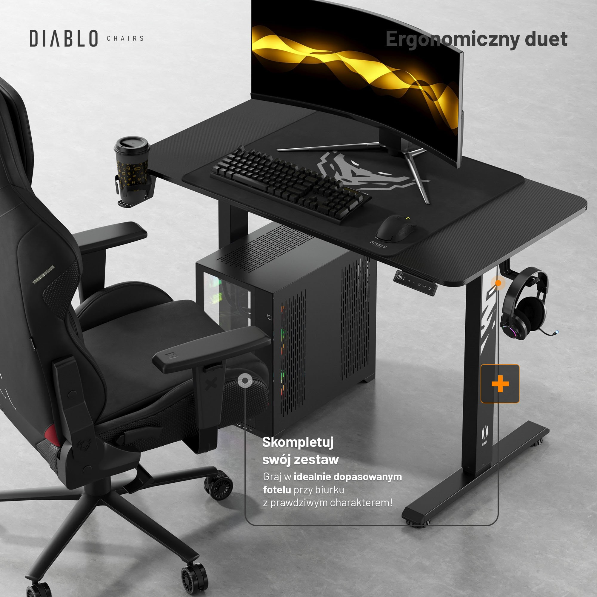 Preto je vybavený praktickými držiakmi na slúchadlá a hrnček. Vaše obľúbené príslušenstvo bude vždy po ruke, bez rizika rozliatia nápoja alebo poškodenia slúchadiel. Ušetrite cenné miesto na stole a užite si dokonalý poriadok.Organizácia káblov: Koniec zamotaným drôtom