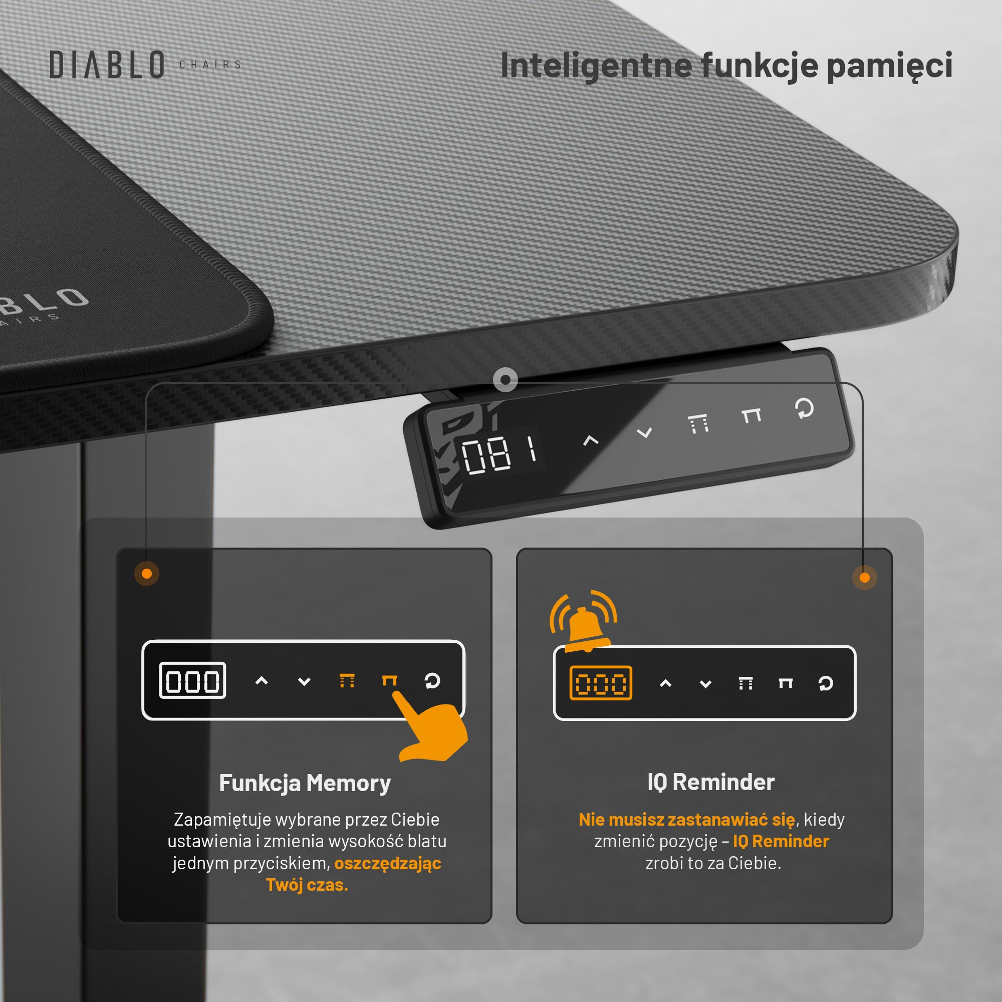 - Funkcia Memory: Uloženie obľúbených nastavení výšky.