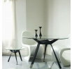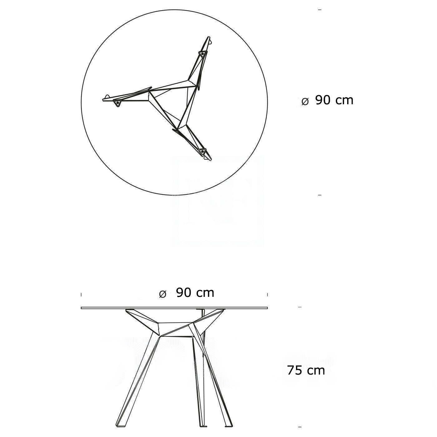Stôl Troy je stôl s nepochybne modernou a výraznou formou. Stôl spája motív umenia origami a všestrannú okrúhlu, sklenenú dosku s priemerom 90 cm. Základom stola sú tri nohy, ktoré odkazujú na starostlivo poskladané kúsky papiera. Na trojnohej základni bola umiestnená doska z tvrdeného skla. Okrúhla sklenená doska nie je trvalo pripevnená k základni, ale váha dosky a chrómované úchyty zabraňujú jej posúvaniu. Montáž spočíva v rovnomernom uložení skla na troch prvkoch základne. Nohy stola boli zakončené pätkami, ktoré chránia podlahu pred poškrabaním. Materiál základne je oceľ lakovaná práškovou farbou na čierno. Hrúbka steny ocele 0,5 cm. Povrchová úprava základne je matná. Doska je vyrobená z tvrdeného skla. Hrúbka dosky stola je 1 cm. Stôl vyžaduje montáž. Maximálne zaťaženie stola je 50 kg. Hmotnosť stola je 16 kg.