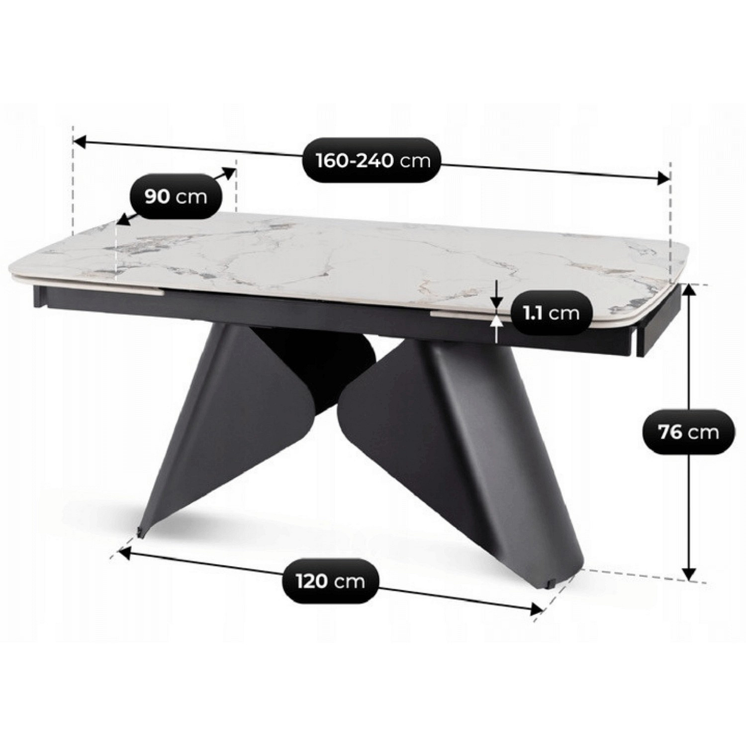 Stôl VERONA Keramický Rozkladací 160-240 cm Biely Mramor/Čierny