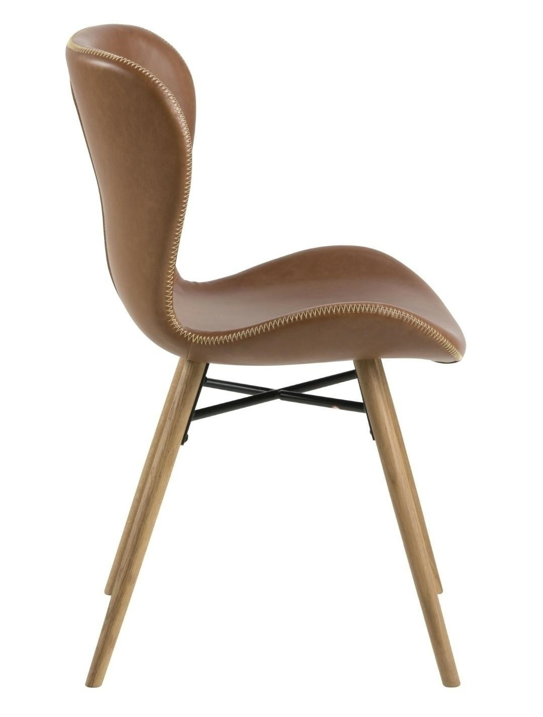 Stolička Batilda Retro Brandy je skvelým riešením pre obývačku alebo jedáleň. Pevná základňa vyrobená z olejovaného dubového dreva, spevnená kovovým krížom, zabezpečí stabilitu počas používania. Sedák z eko kože v svetlo hnedej farbe s hrubším prešívaním vyzerá veľmi efektne. Stolička je pomerne ľahká, pretože váži 6,15 kg. Jeho maximálne zaťaženie je 120 kg. Maximálne množstvo ks. v krabici: 2 Výška sedadla: 46,5 cm Šírka sedadla: 47 cm Hĺbka sedadla: 40 cm