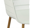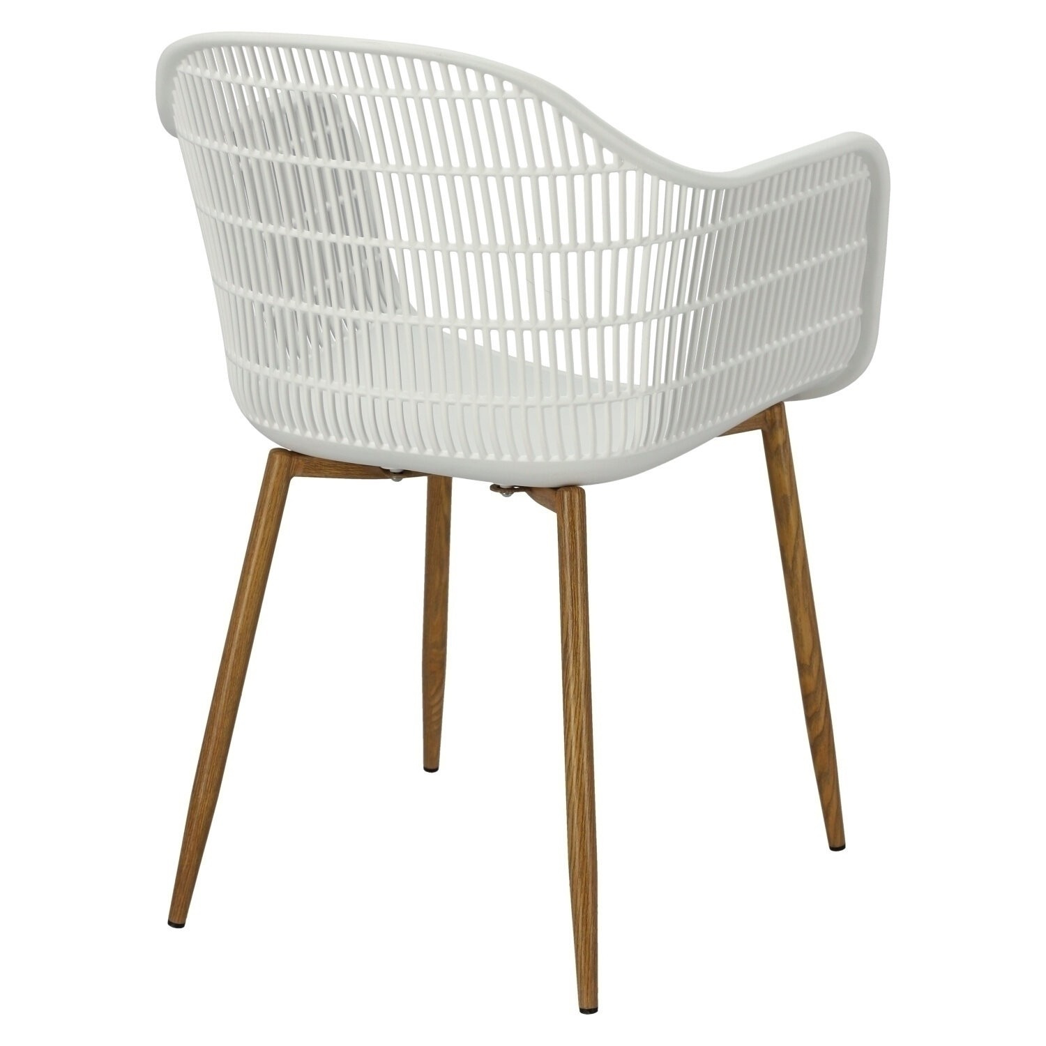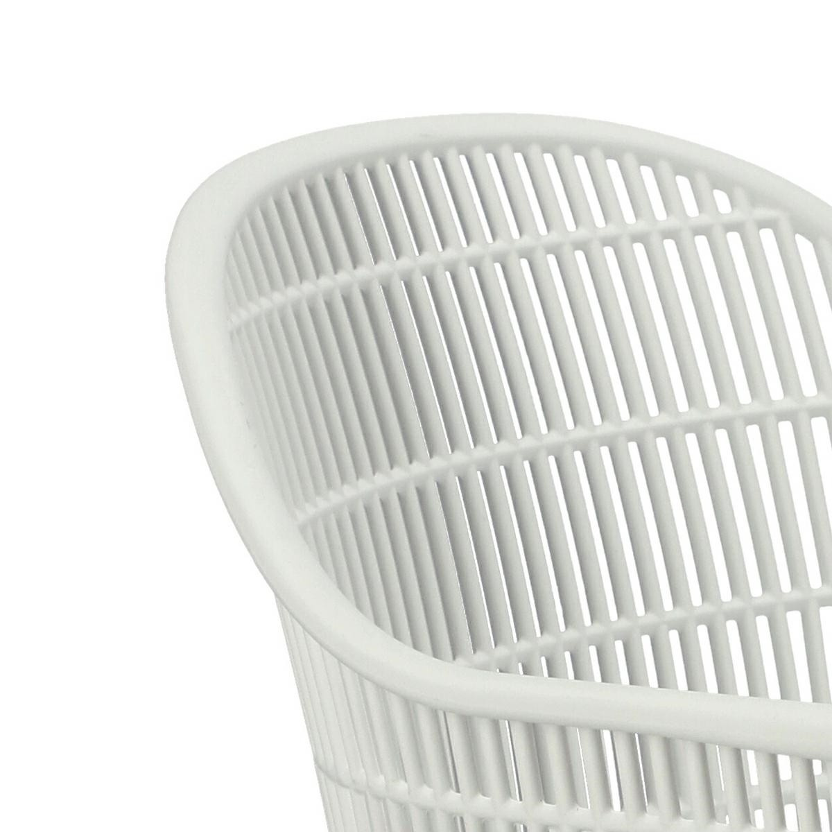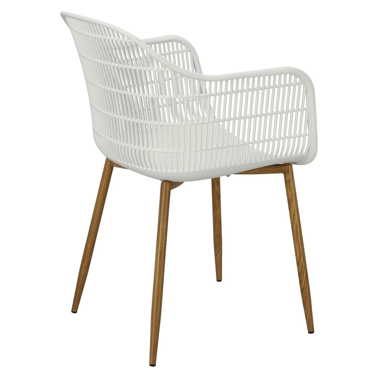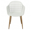 Moderná stolička Becker bola vyrobená z odolného materiálu v bielej farbe. Polypropylén použitý v sedadle má matnú úpravu, je ľahko čistiteľný a odolný voči znečisteniu, navyše sa vyznačuje aj odolnosťou. Charakteristické sedadlo, podrúčky a operadlo pripomínajú sieť. Základňa stoličky bola vyrobená z kovu pokrytého dyhou so štruktúrou dreva. Dyha použitá v základni má polomatnú úpravu. Maximálne zaťaženie stoličky je 120 kg. výška podrúčok od sedadla 27 cm hĺbka sedadla 45 cm šírka sedadla 48 cm Rozmery