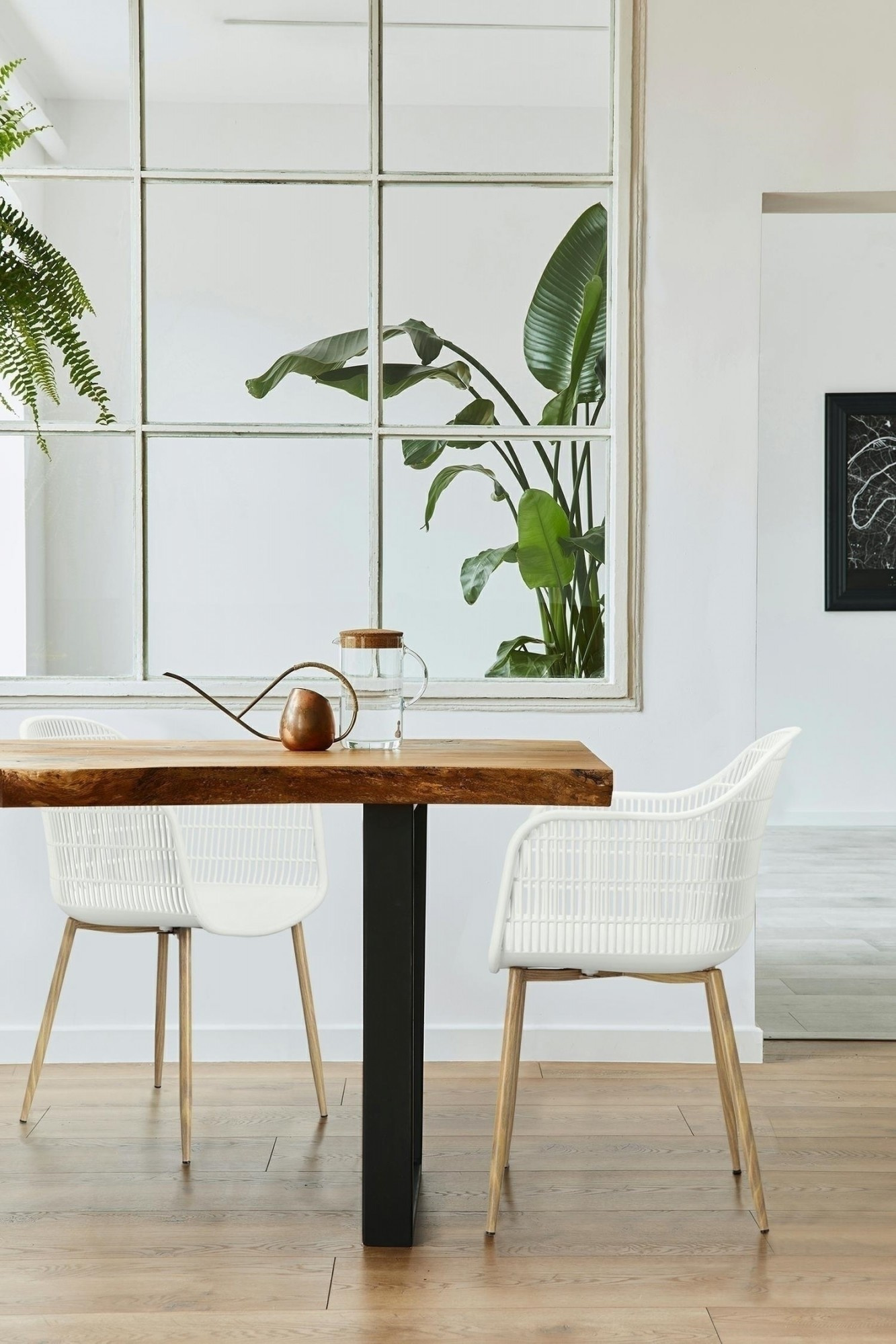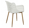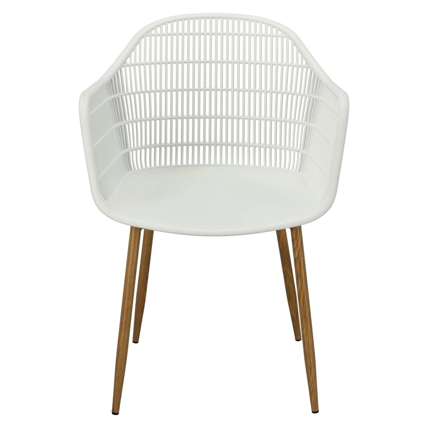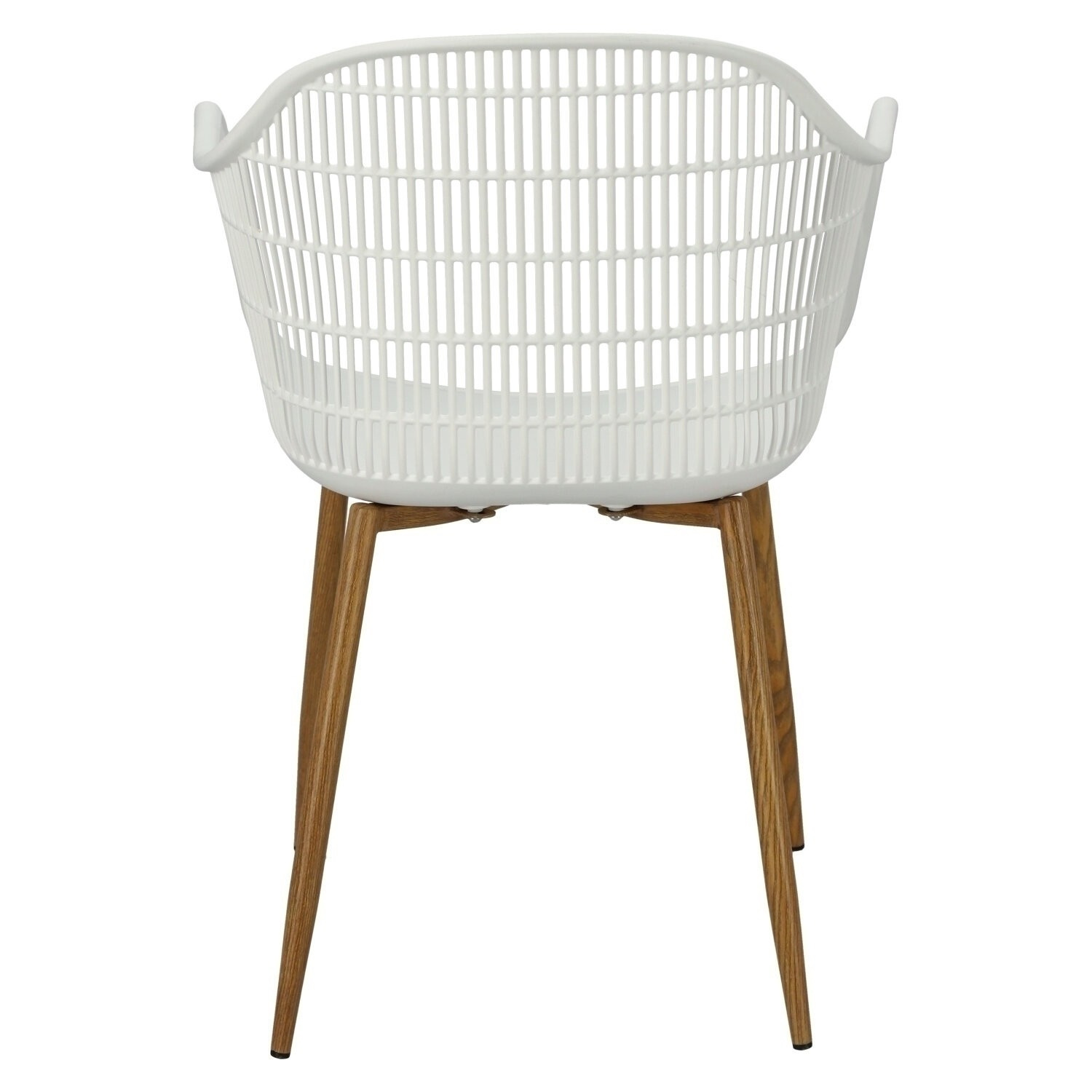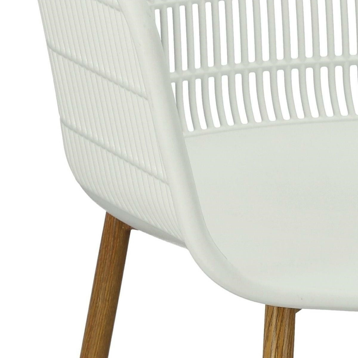 Moderná stolička Becker bola vyrobená z odolného materiálu v bielej farbe. Polypropylén použitý v sedadle má matnú úpravu, je ľahko čistiteľný a odolný voči znečisteniu, navyše sa vyznačuje aj odolnosťou. Charakteristické sedadlo, podrúčky a operadlo pripomínajú sieť. Základňa stoličky bola vyrobená z kovu pokrytého dyhou so štruktúrou dreva. Dyha použitá v základni má polomatnú úpravu. Maximálne zaťaženie stoličky je 120 kg. výška podrúčok od sedadla 27 cm hĺbka sedadla 45 cm šírka sedadla 48 cm Rozmery