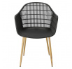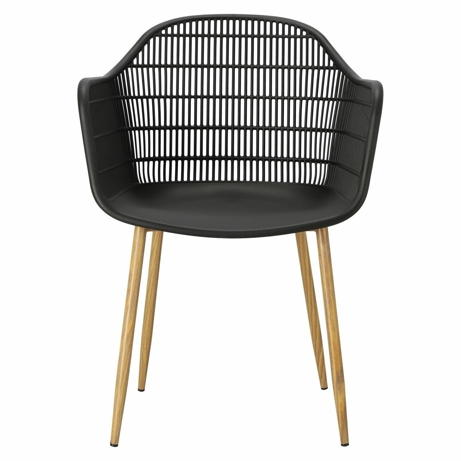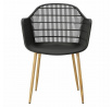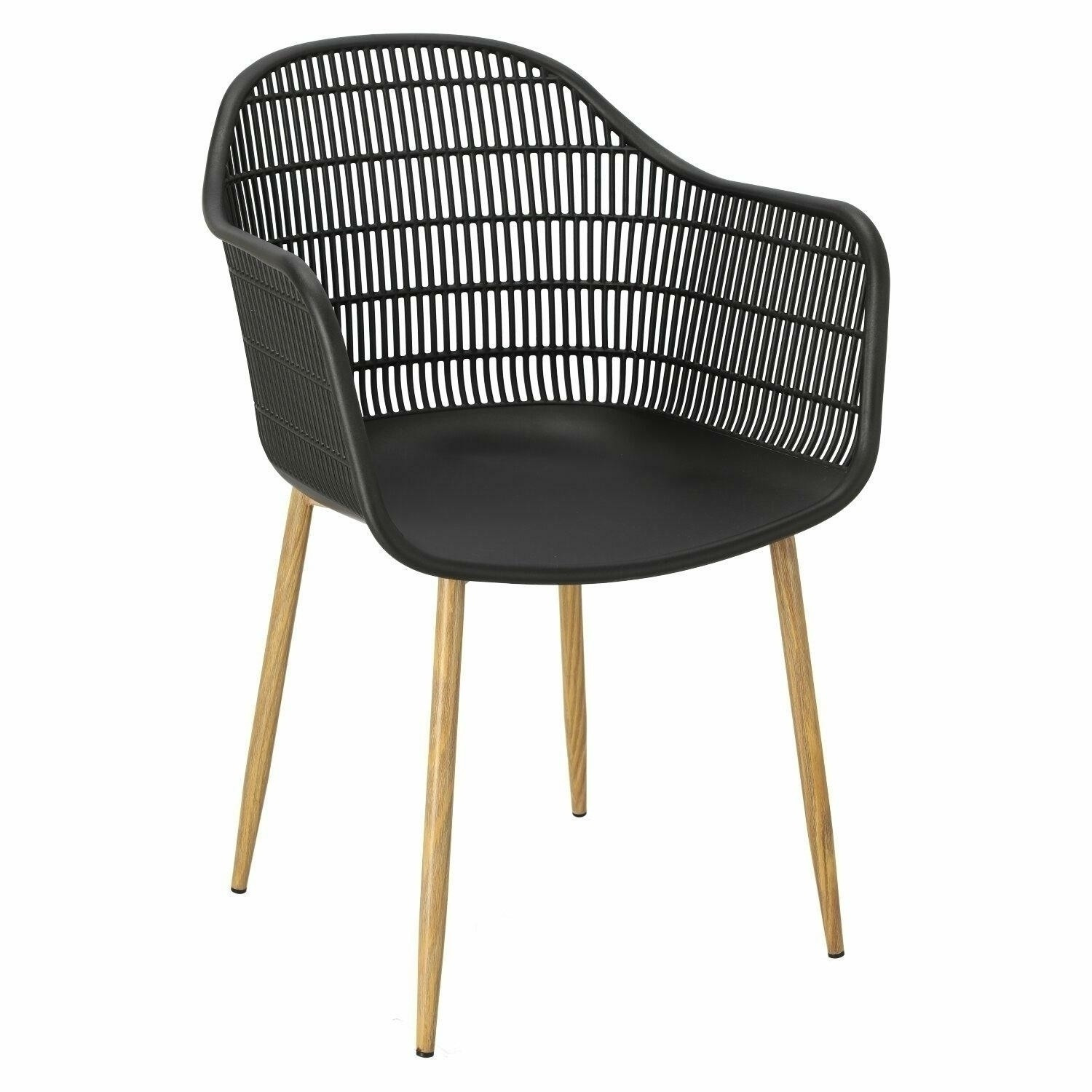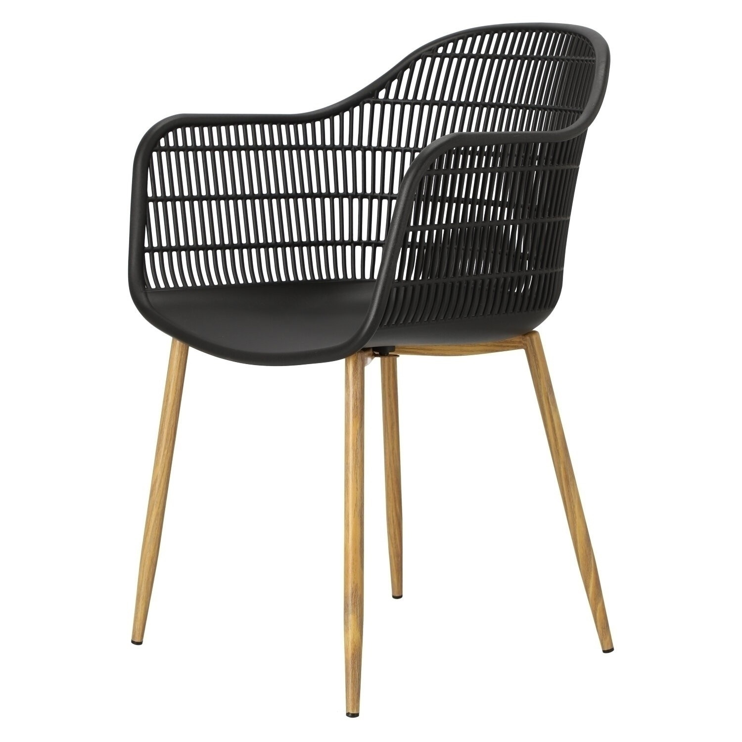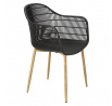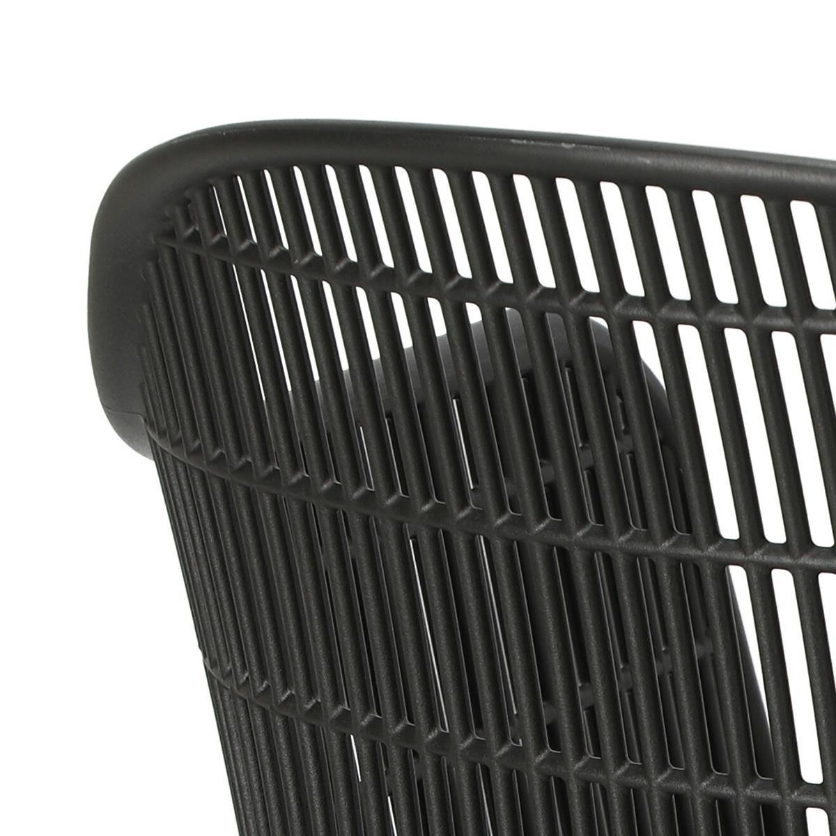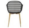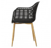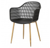 Moderná stolička Becker bola vyrobená z odolného materiálu v čiernej farbe. Polypropylén použitý v sedadle má matnú úpravu, je ľahko čistiteľný a odolný voči znečisteniu, navyše sa vyznačuje aj odolnosťou. Charakteristické sedadlo, podrúčky a operadlo pripomínajú sieť. Základňa stoličky bola vyrobená z kovu pokrytého dyhou so štruktúrou dreva. Dyha použitá v základni má polomatnú úpravu. Maximálne zaťaženie stoličky je 120 kg. výška podrúčok od sedadla 27 cm hĺbka sedadla 45 cm šírka sedadla 48 cm Požiadavky