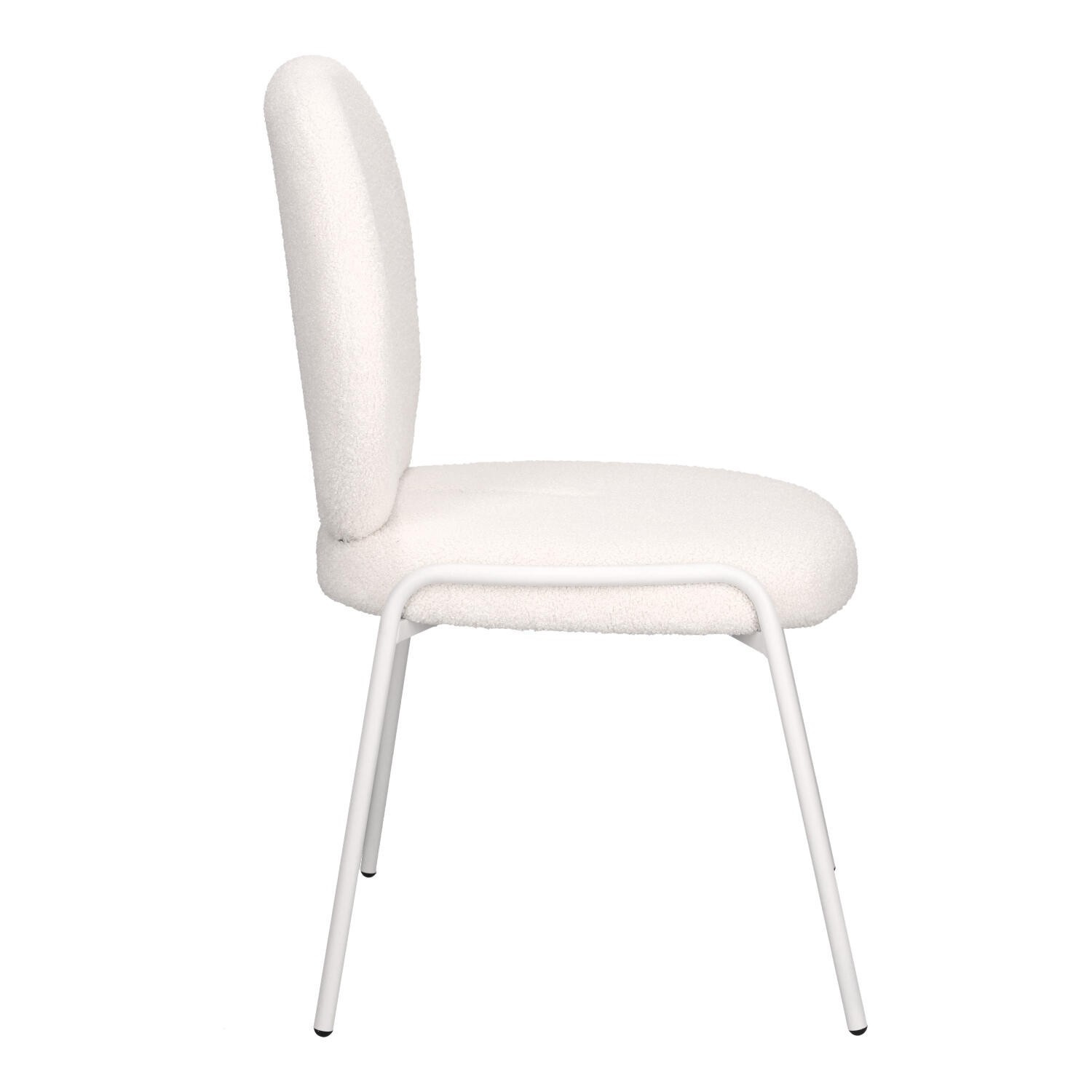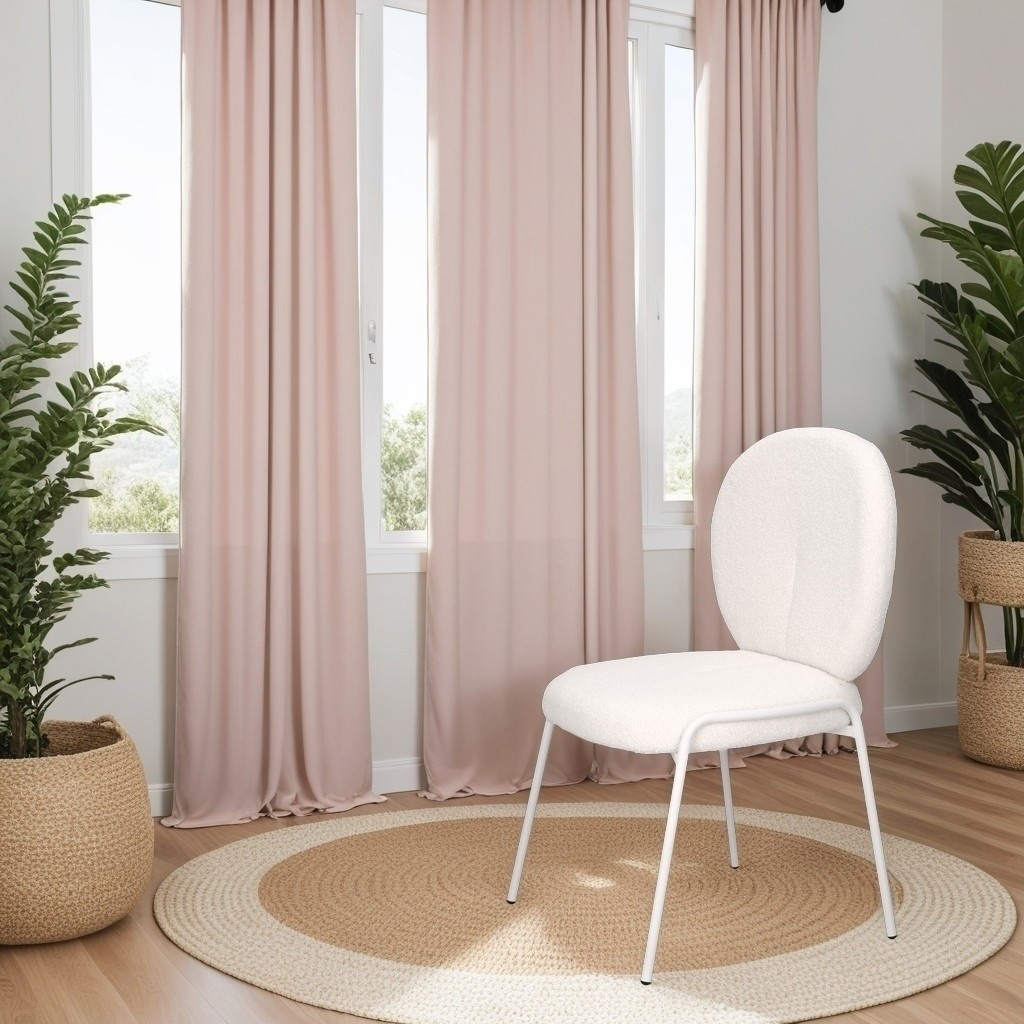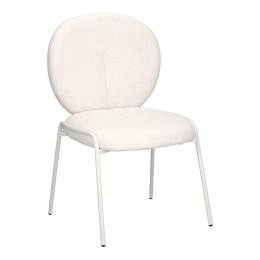 Štýlová stolička Bianco v boho štýle so štyrmi kovovými nohami lakovanými práškovou farbou na bielo bude kvintesenciou módnej a svetlej obývačky. Čalúnené látkou bouclé, ktorá je mäkká a štýlová, poskytuje výnimočný komfort a eleganciu. Ideálne do interiérov v prírodnom štýle so svetlým alebo béžovým prevedením. Stolička Bianco spája funkčnosť s estetikou. Dokonale sa hodí do obývacej izby, jedálne alebo spálne, kde navodí teplú, útulnú atmosféru. Veľmi pohodlná stolička Bianco je ideálna pre dlhé sedenie a relaxáciu pri stole s rodinou alebo priateľmi. Vyžaduje montáž. Max. zaťaženie 120 kg Nestohovateľné Nevhodné pre vonkajšie použitie