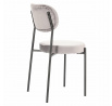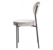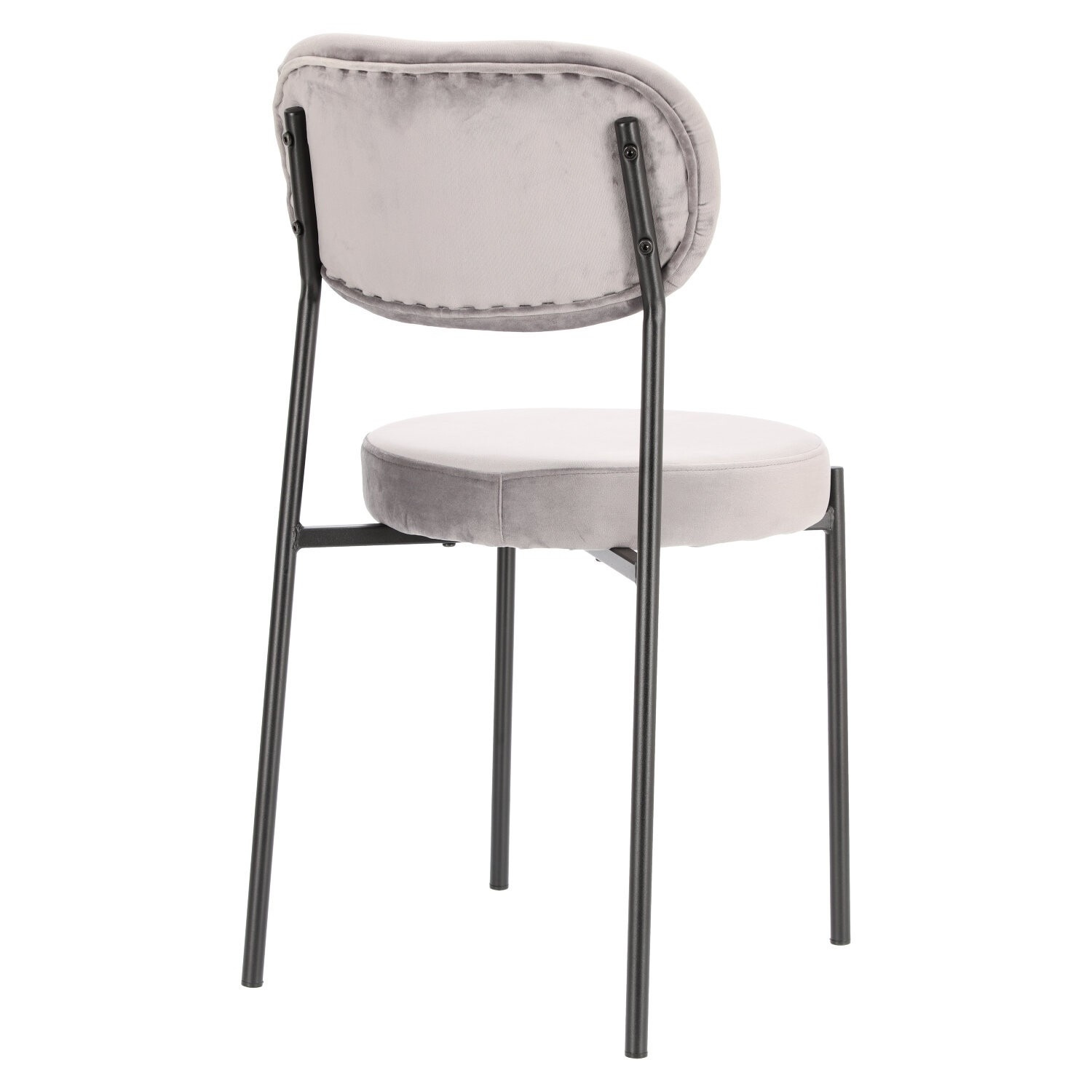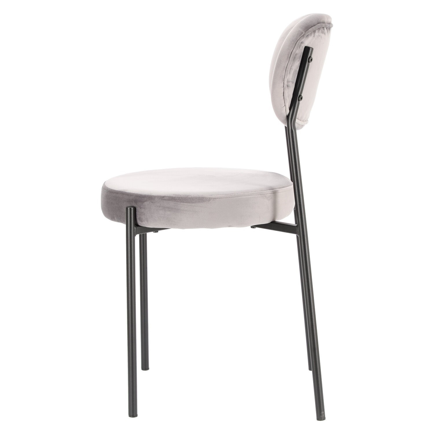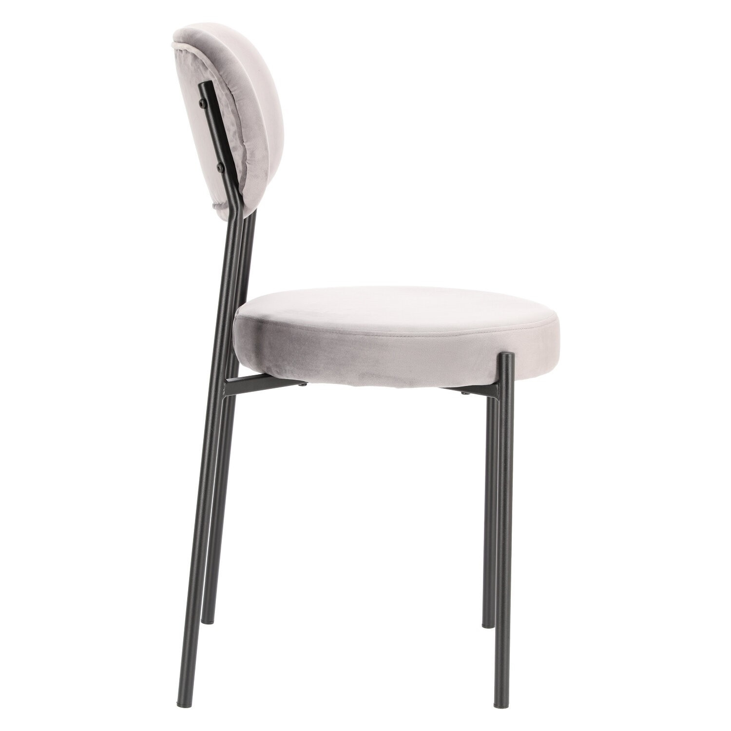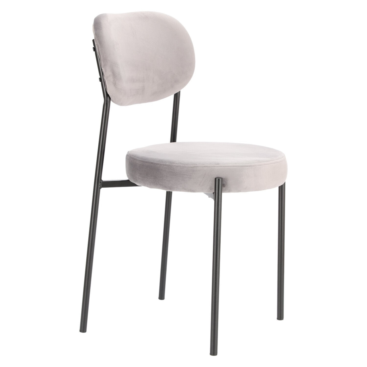 Stolička Camile v zamatovej látke s mimoriadne zaujímavým dizajnom sa skvele hodí do menšej obývačky alebo jedálne. Okrúhle sedadlo spolu s tvarovaným operadlom dodáva tomuto modelu futuristický vzhľad, ale tiež umožňuje pohodlie pri dlhšom sedení. Mäkké sedadlo bolo vyplnené penou a potiahnuté látkou pripomínajúcou zamat, ktorá je mimoriadne mäkká na dotyk. Profilované operadlo je kombináciou ohýbanej preglejky a peny, potiahnuté tiež zamatovou mäkkou tkaninou. Sedák stoličky spočíva na kovovom kríži, ktorý spája kovové, práškovou farbou lakované nohy. Štíhle nohy zabezpečia konštrukcii zodpovedajúcu stabilitu, ale tiež jej dodajú vizuálnu ľahkosť. Čalúnená stolička na čiernych nohách je univerzálny a nadčasový dizajn. Stolička Camile je dostupná v troch rôznych farbách látok. Hĺbka sedadla: 42,5 cm Šírka sedadla: 42,5 cm Rozmery operadla: 43 x 27 cm Rozstup nôh vpredu: 38 cm Rozstup nôh vzadu: 39 cm