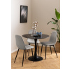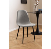 Stolička do jedálne s univerzálnym a nadčasovým vzhľadom, ktorá sa bez problémov hodí do každej jedálne. Pohodlné sedadlo, ozdobené horizontálnymi prešívaniami, je podopreté štíhlymi nohami, ktoré dodávajú projektu výraznú škandinávsku estetiku. Vďaka takémuto vzhľadu je možné stoličku kombinovať s takmer akýmkoľvek stolom. Výška operadla 47 cm, Šírka sedadla 44 cm, Hĺbka sedadla 40 cm, Maximálna výška sedadla. 46 cm. Vyžaduje montáž. Max. zaťaženie 110 kg, Rozmery kartónu: 45x62x67 cm