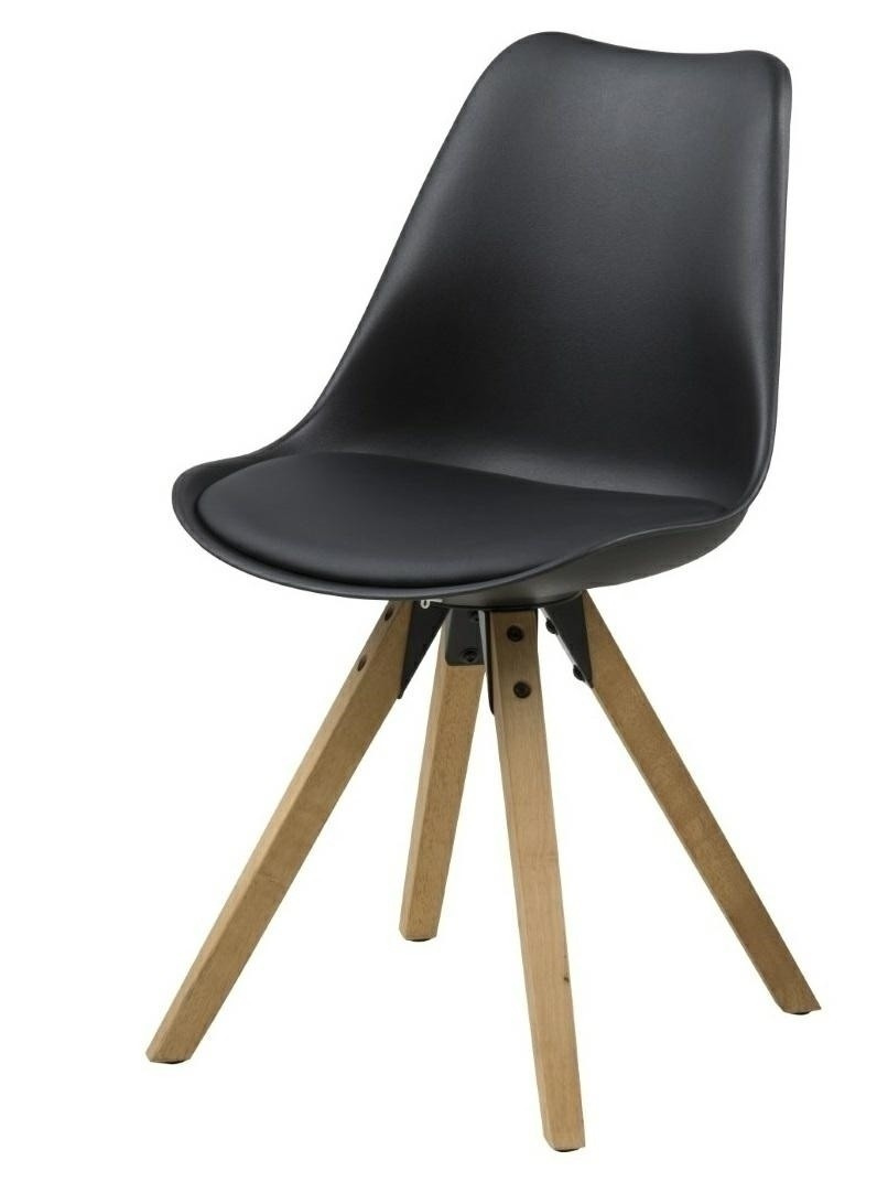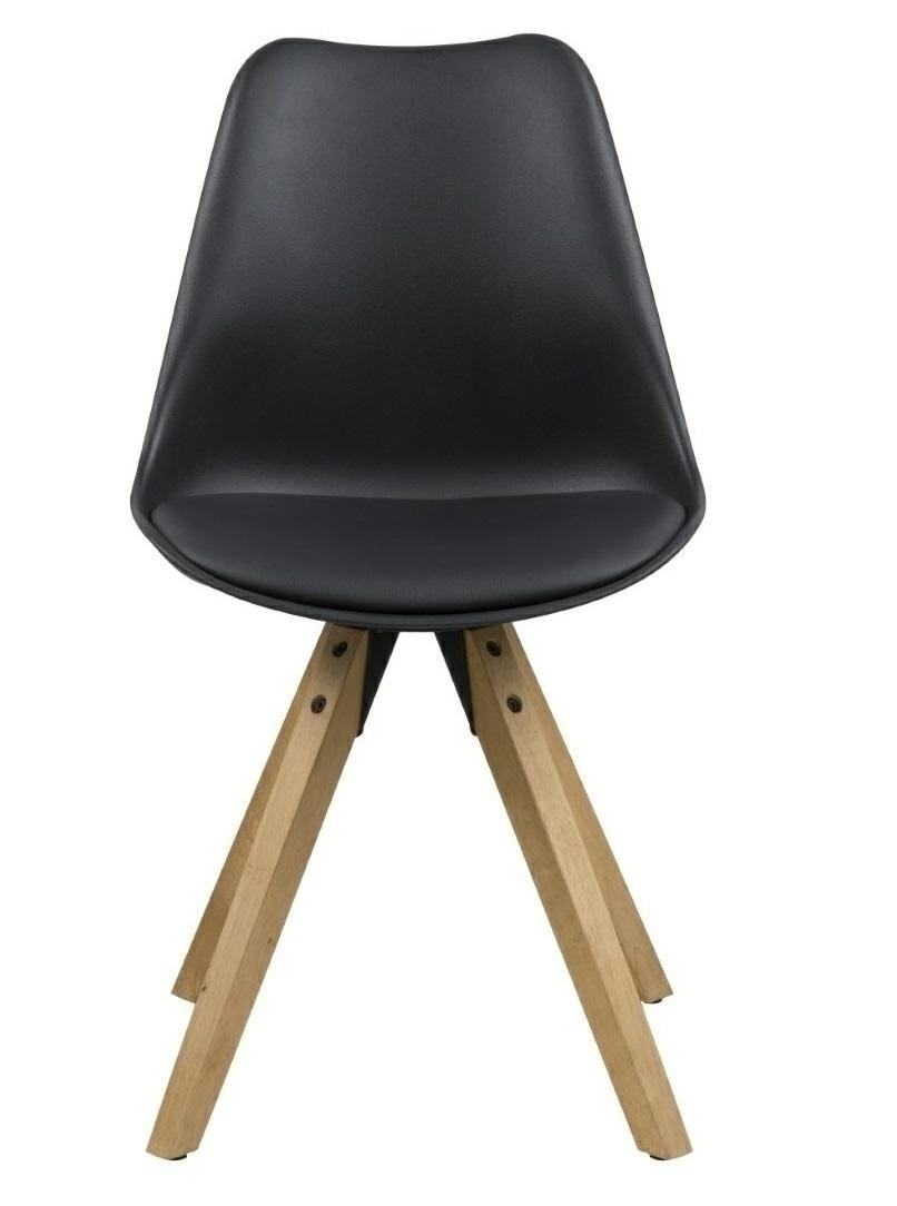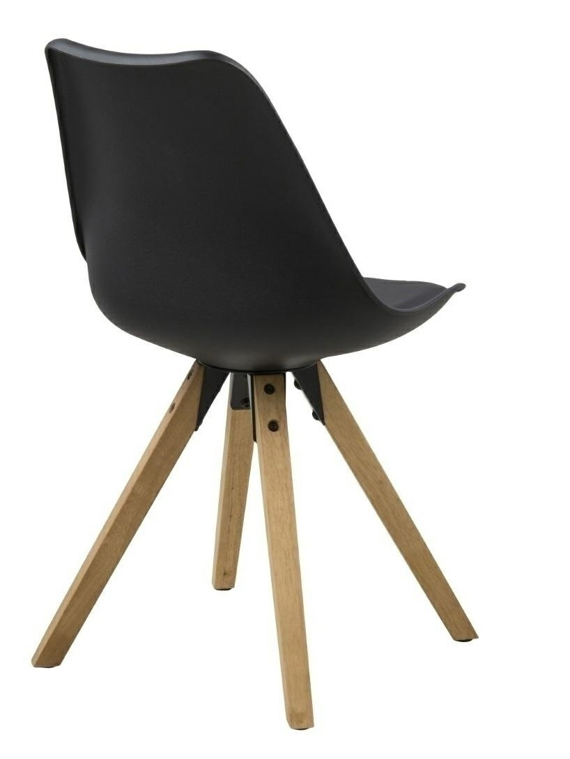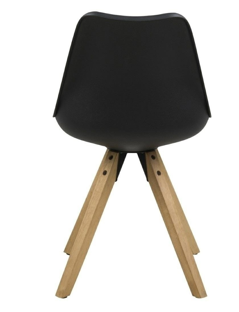 Stolička Dima sa vyznačuje jednoduchým, ale očarujúcim tvarom. Sedátko bolo vyrobené z plastu v čiernej farbe. Dodatočne bol umiestnený vankúš čalúnený ekologickou kožou v čiernej farbe. Základňa bola vyrobená z olejovaného kaučukového dreva pokrytého moridlom v farbe duba. Stolička vyžaduje montáž. Maximálne zaťaženie: 120 kg Hmotnosť stoličky je 7 kg. Maximálne množstvo ks. v kartóne: 2 Rozmery kartónu: 71 cm x 51 cm x 38 cm Výška sedadla: 46 Hĺbka sedadla: 40,5 Šírka sedadla: 48