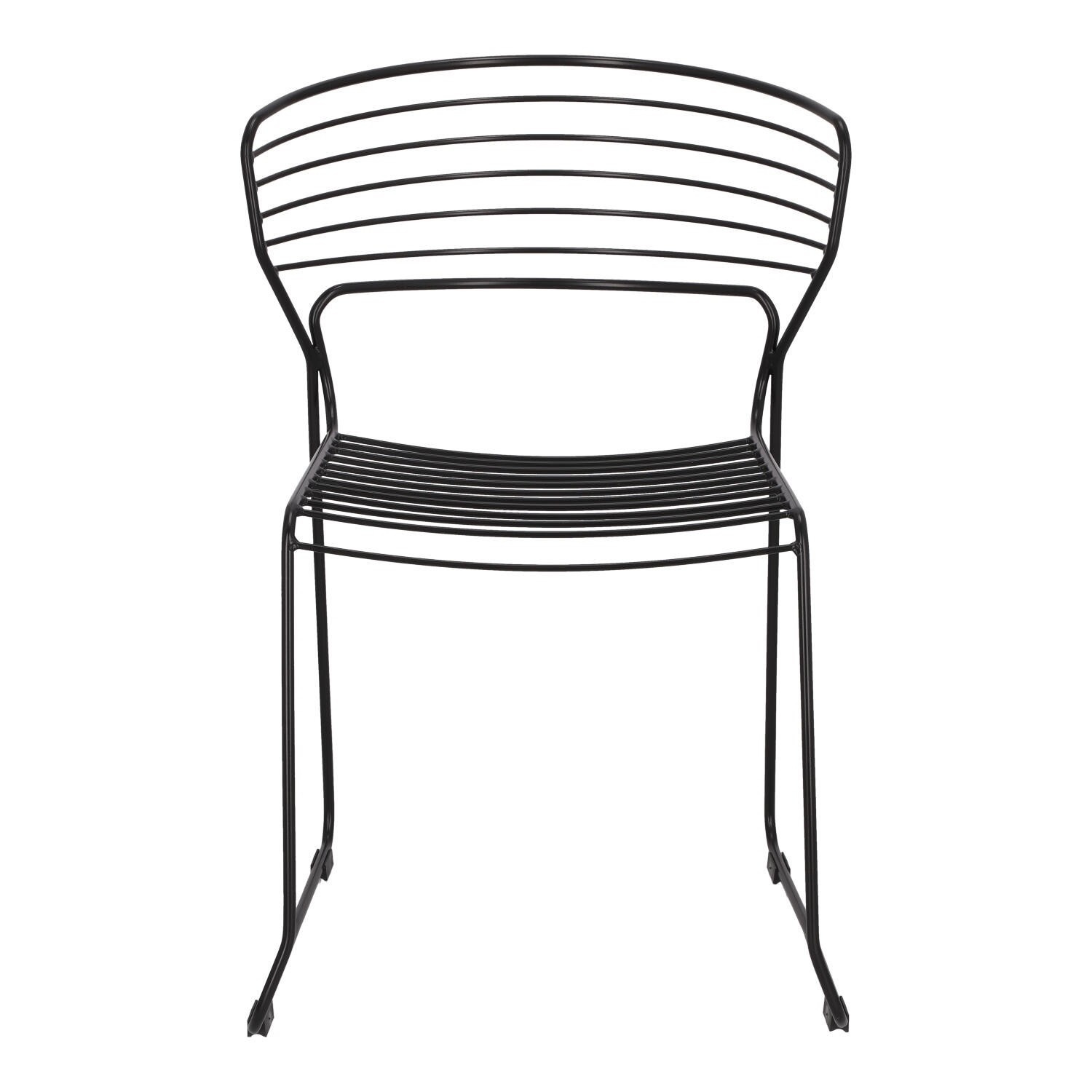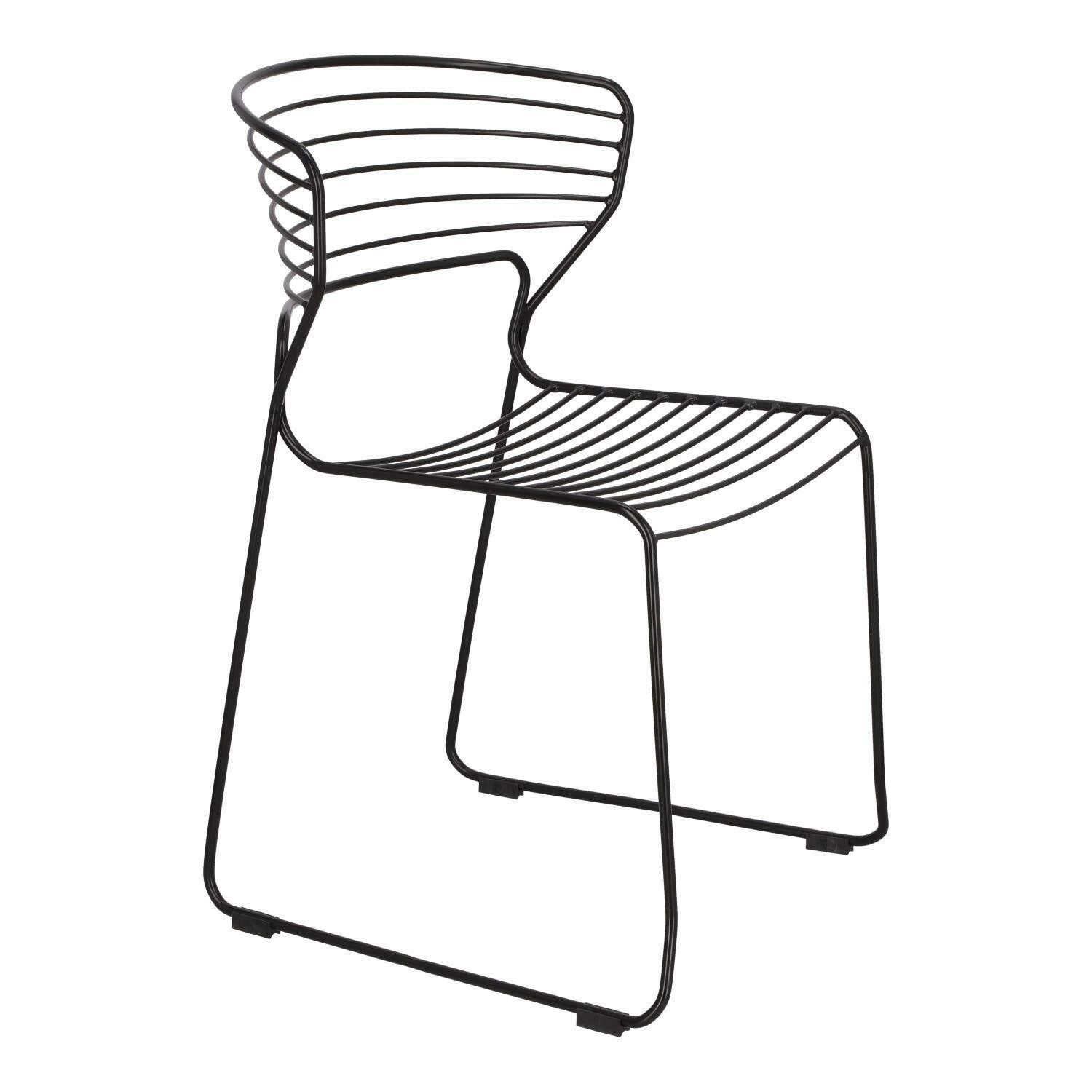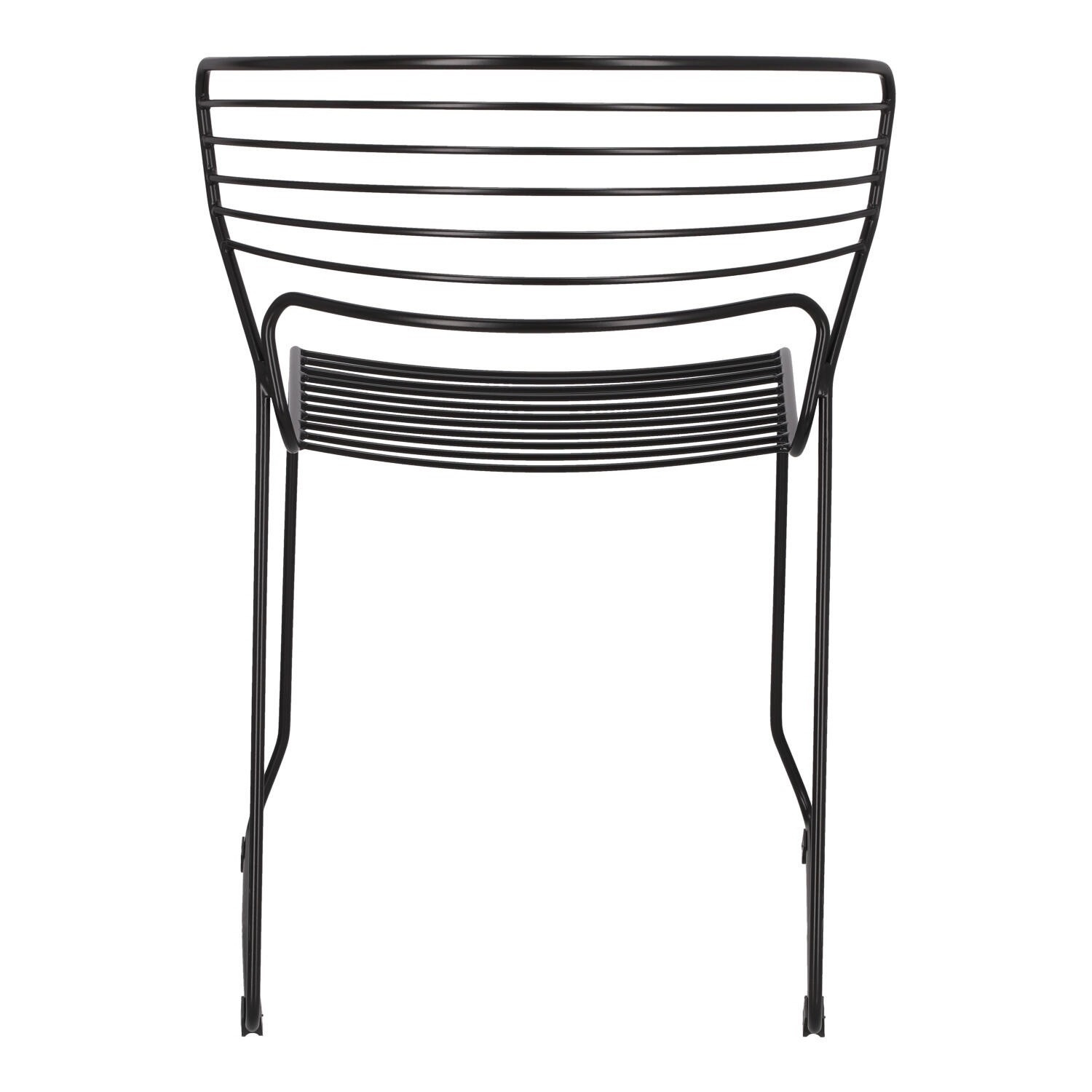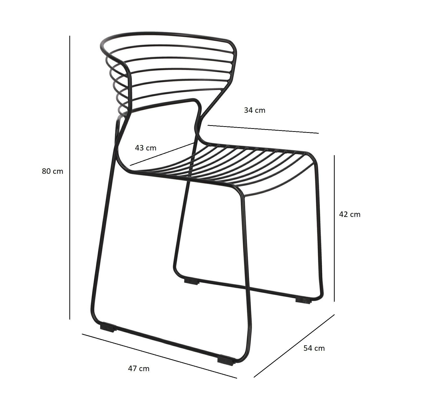 Kovová, drôtená stolička s tvarovaným, pohodlným operadlom je nábytok vyhľadávaný predovšetkým ľuďmi, ktorí majú radi minimalizmus a klasický, elegantný interiér. Stolička Hilly je vyrobená úplne z kovu, práškovo lakovaného na čierno. Stolička na lyžinách má navyše plastové koncovky, ktoré nielenže dodávajú nábytku stabilitu, ale tiež chránia nohy stoličky aj podlahu pred poškrabaním. Kovová stolička sa dokonale hodí k farebným vankúšom na sedadle. Kovové, práškovo lakované. Maximálne prípustné zaťaženie stoličky: 110 kg Stolička je odolná voči poveternostným podmienkam, preto ju môžeme používať vonku. Stolička nevyžaduje montáž. Stolička je stohovateľná. Maximálny počet stohov, ktoré možno použiť, je 6 kusov. Max 4 ks v kartóne. Rozmery kartónu: 61x59x89 cm