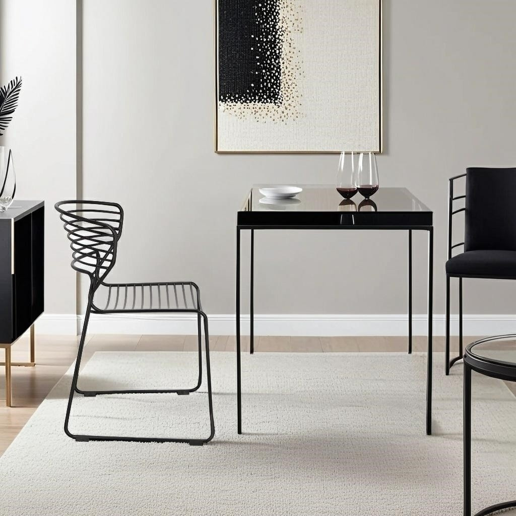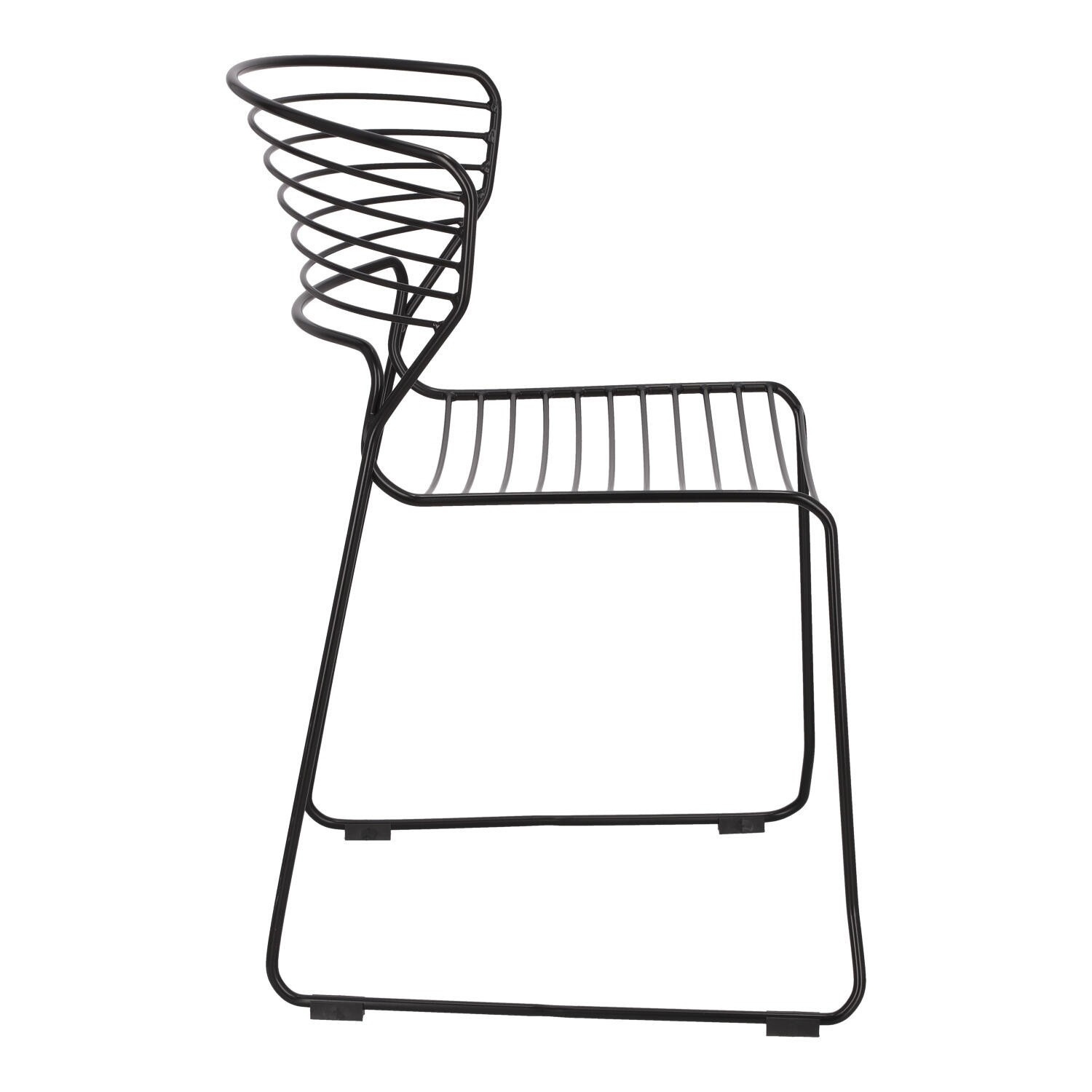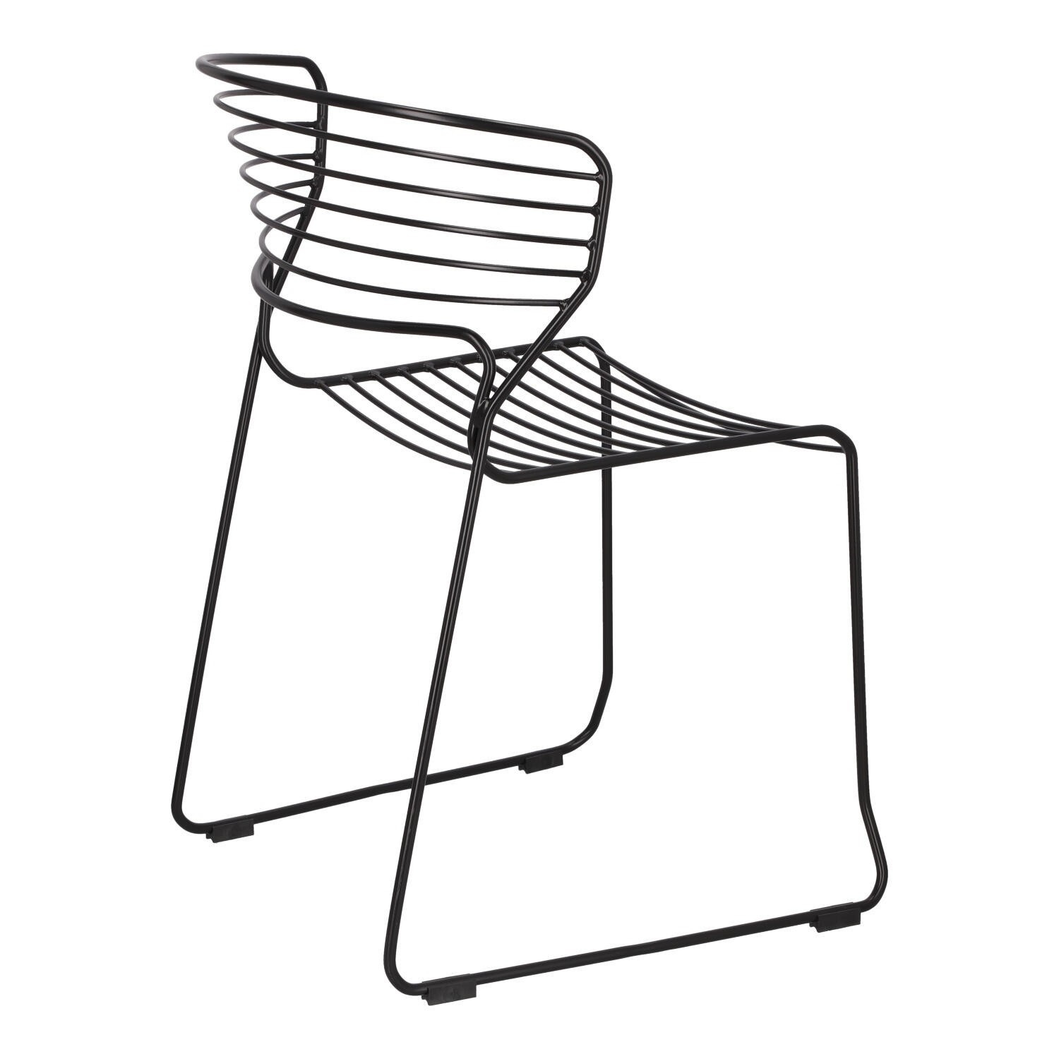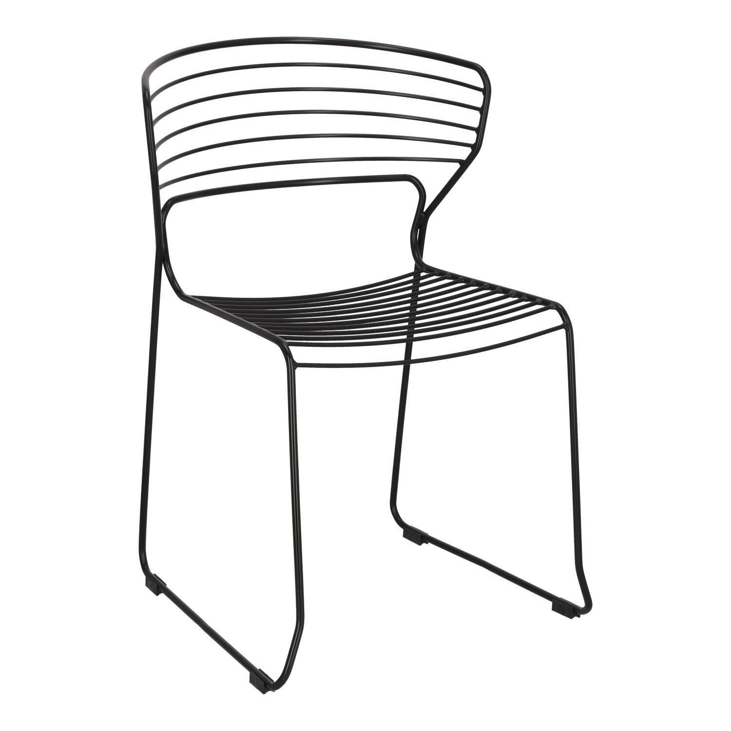 Kovová, drôtená stolička s tvarovaným, pohodlným operadlom je nábytok vyhľadávaný predovšetkým ľuďmi, ktorí majú radi minimalizmus a klasický, elegantný interiér. Stolička Hilly je vyrobená úplne z kovu, práškovo lakovaného na čierno. Stolička na lyžinách má navyše plastové koncovky, ktoré nielenže dodávajú nábytku stabilitu, ale tiež chránia nohy stoličky aj podlahu pred poškrabaním. Kovová stolička sa dokonale hodí k farebným vankúšom na sedadle. Kovové, práškovo lakované. Maximálne prípustné zaťaženie stoličky: 110 kg Stolička je odolná voči poveternostným podmienkam, preto ju môžeme používať vonku. Stolička nevyžaduje montáž. Stolička je stohovateľná. Maximálny počet stohov, ktoré možno použiť, je 6 kusov. Max 4 ks v kartóne. Rozmery kartónu: 61x59x89 cm