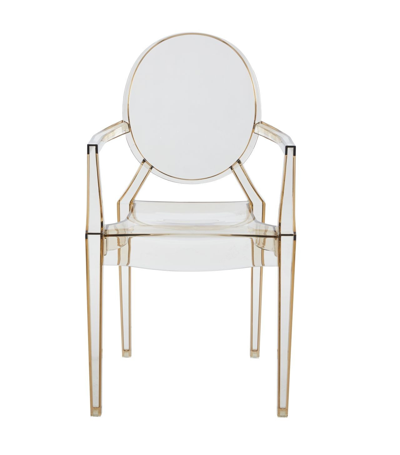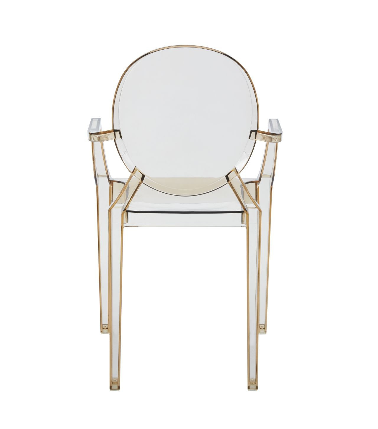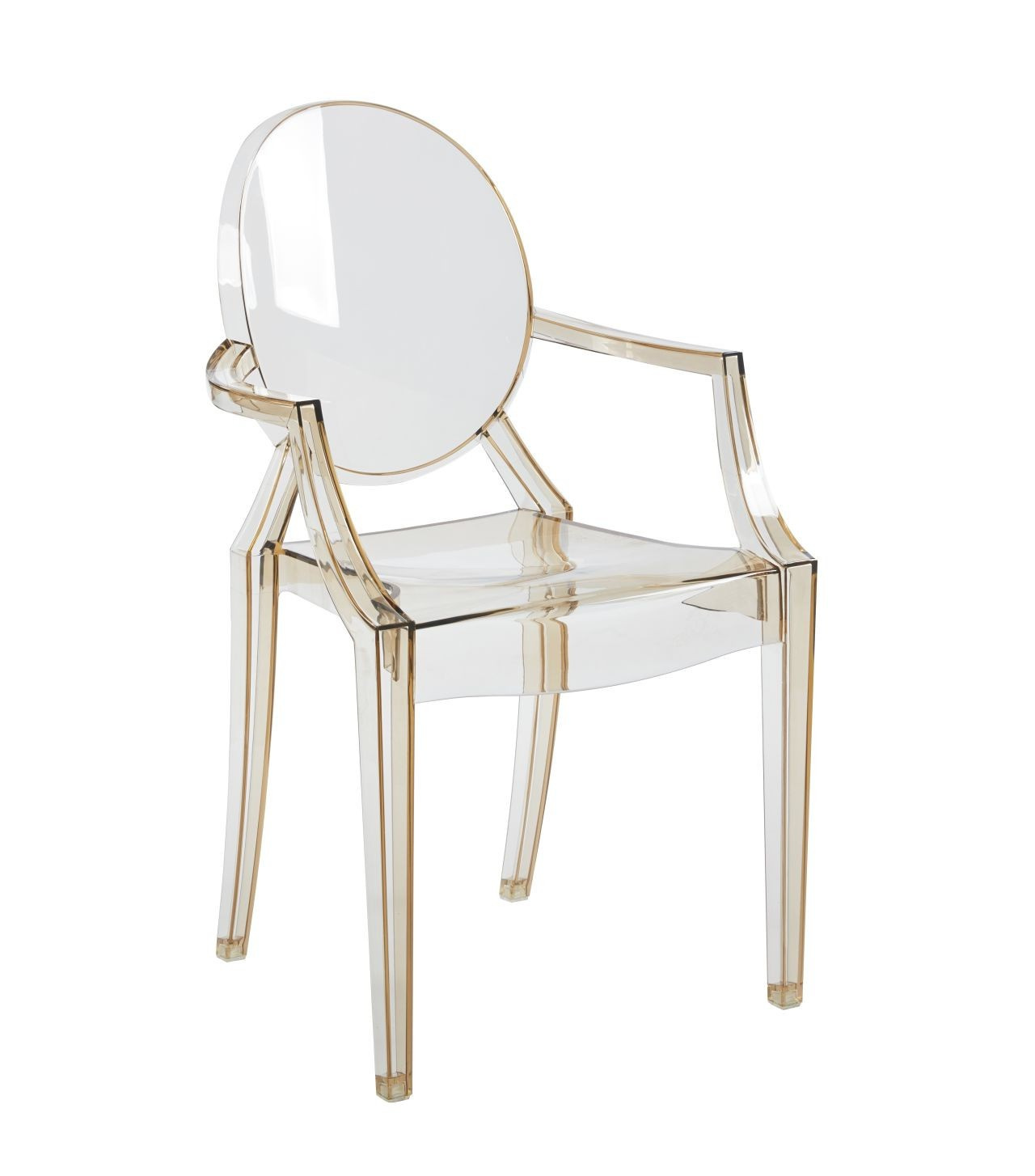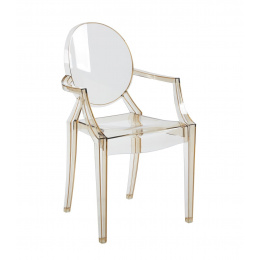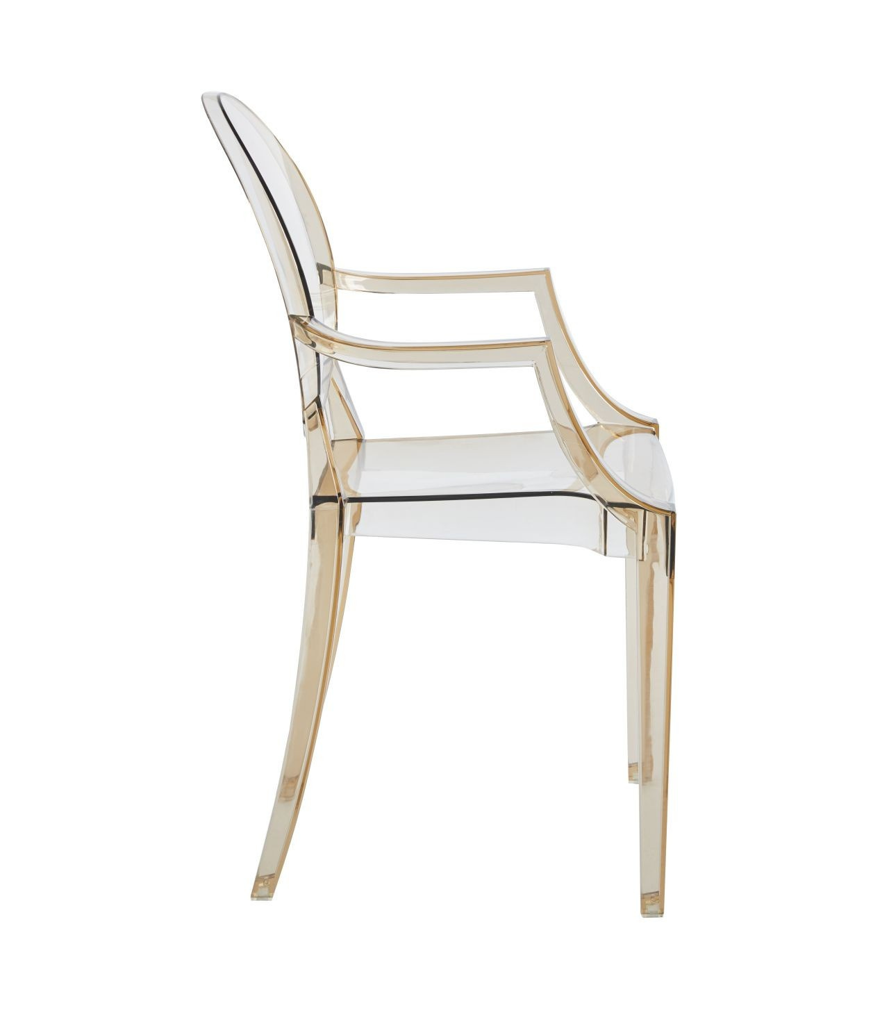 Rozmery: - šírka sedadla: 54 cm (predná časť sedadla), 32 cm (zadná časť sedadla) - výška sedadla: 48 cm - celková výška: 92 cm - hĺbka sedadla: 42 cm Materiál: - polykarbonát Farba: - jantárová