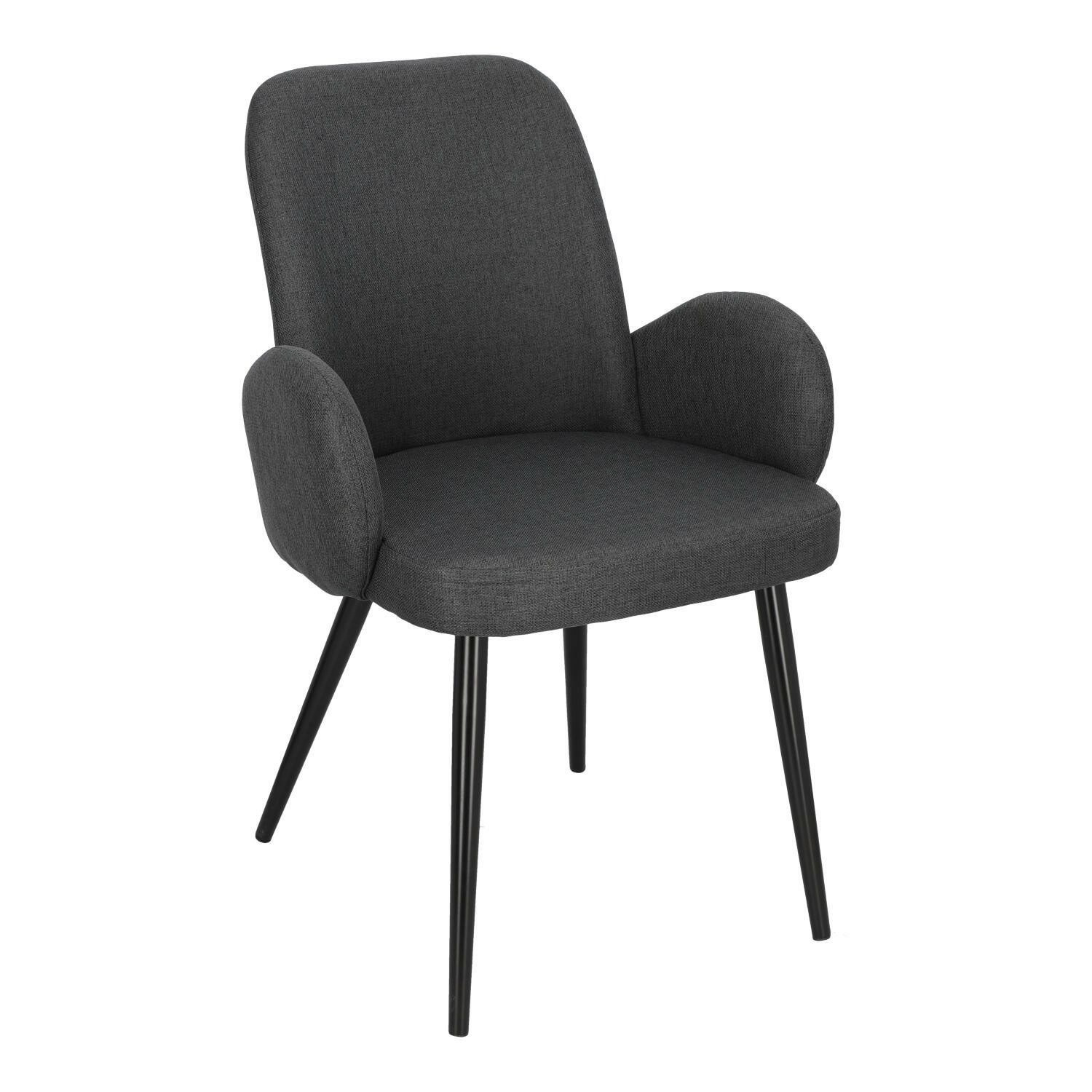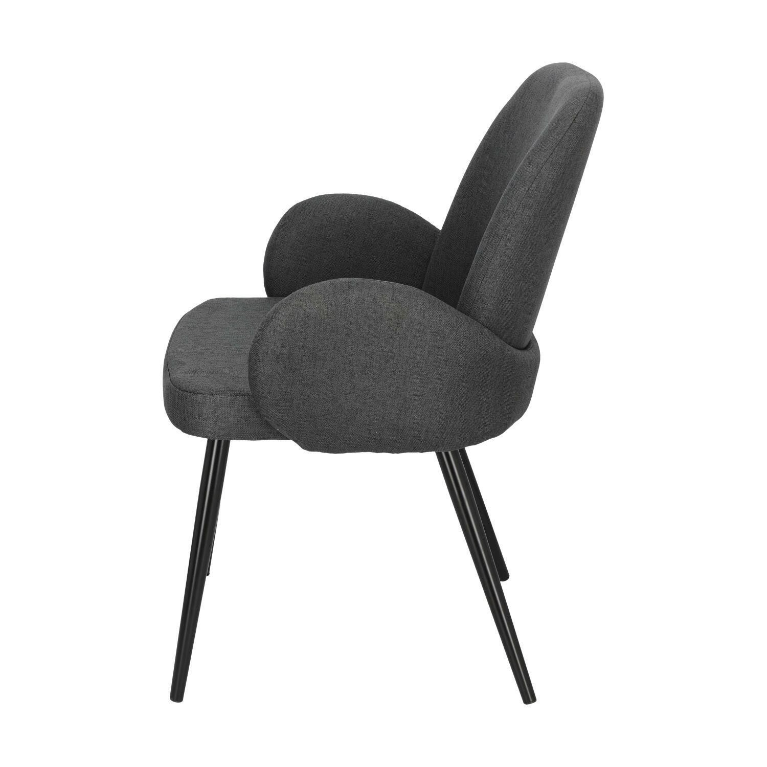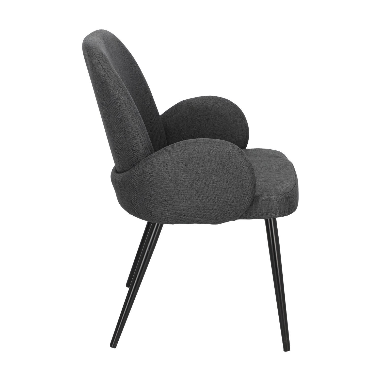 Kreslo Labby v šedej hrubo pletenej tkanine je ideálny nábytok pre loftové a moderné interiéry. Vďaka svojmu tvaru a čalúneniu príjemnou na dotyk látkou sa stolička vyznačuje ergonómiou a pohodlím, a vďaka pevnej kovovej základni je tiež odolná a stabilná. Stolička je vyplnená mäkkou penou. Ďalšou výhodou sú prepojené dizajnové podrúčky, ktoré sa tiahnu až po vnútornú stranu operadla, vďaka čomu nábytok získava elegantný charakter. Silné, kovové, čierne nohy stoličky zaujímavo kontrastujú so sivou látkou. Stolička Labby v sivej farbe je ideálny nábytok do obývacej izby alebo jedálne. Šírka sedadla: 47 cm Hĺbka sedadla: 45 cm