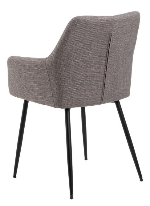 Stolička do jedálne Lizzy s podrúčkami potiahnutá látkou Basel brown 34 je vyrobená z čiernej matnej práškovo lakovanej základne a má zips na zadnej strane čalúneného operadla. Charakterizované nadčasovou eleganciou, klasické kreslo s podrúčkami je čalúnené silnou šedo-hnedou látkou s dvojfarebným efektom. Dodáva to projektu pekný, usporiadaný vzhľad. Doplnené štíhlymi nohami z čiernej ocele, stolička získava univerzálny vzhľad, ktorý sa hodí do rôznych štýlov jedální. Hlavné vlastnosti: Jedálenská stolička s opierkami s elegantným a univerzálnym vzhľadom, čalúnená štruktúrovanou látkou v šedo-hnedej farbe s dvojfarebným efektom. Max. zaťaženie 110 kg. Stolička vyžaduje montáž. Hmotnosť stoličky: 5,3 kg. Šírka sedadla: 42,5 cm Hĺbka sedadla: 44 cm Výška operadla: 39 cm Výška podrúčok od sedadla: 17 cm. Hĺbka podrúčok: 30 cm Max. 2 ks v kartóne Kartón: 60x60x52 cm