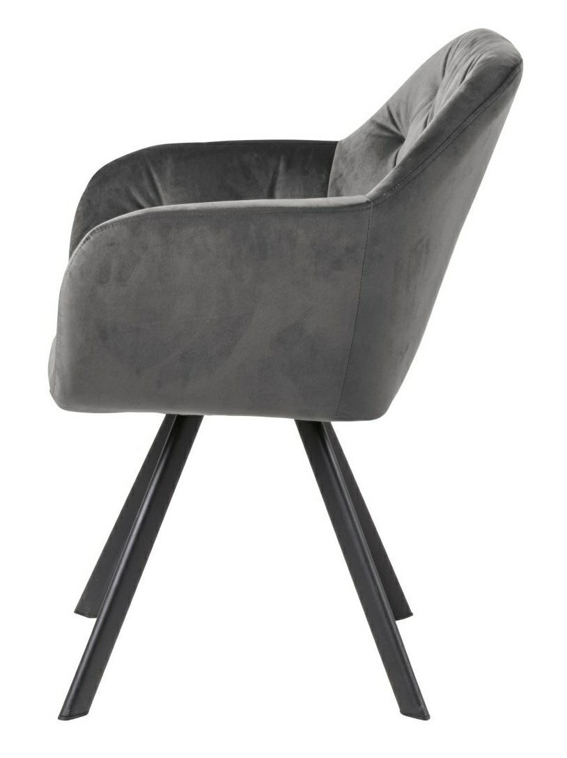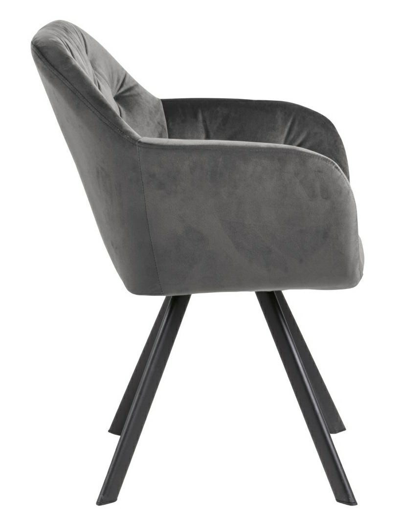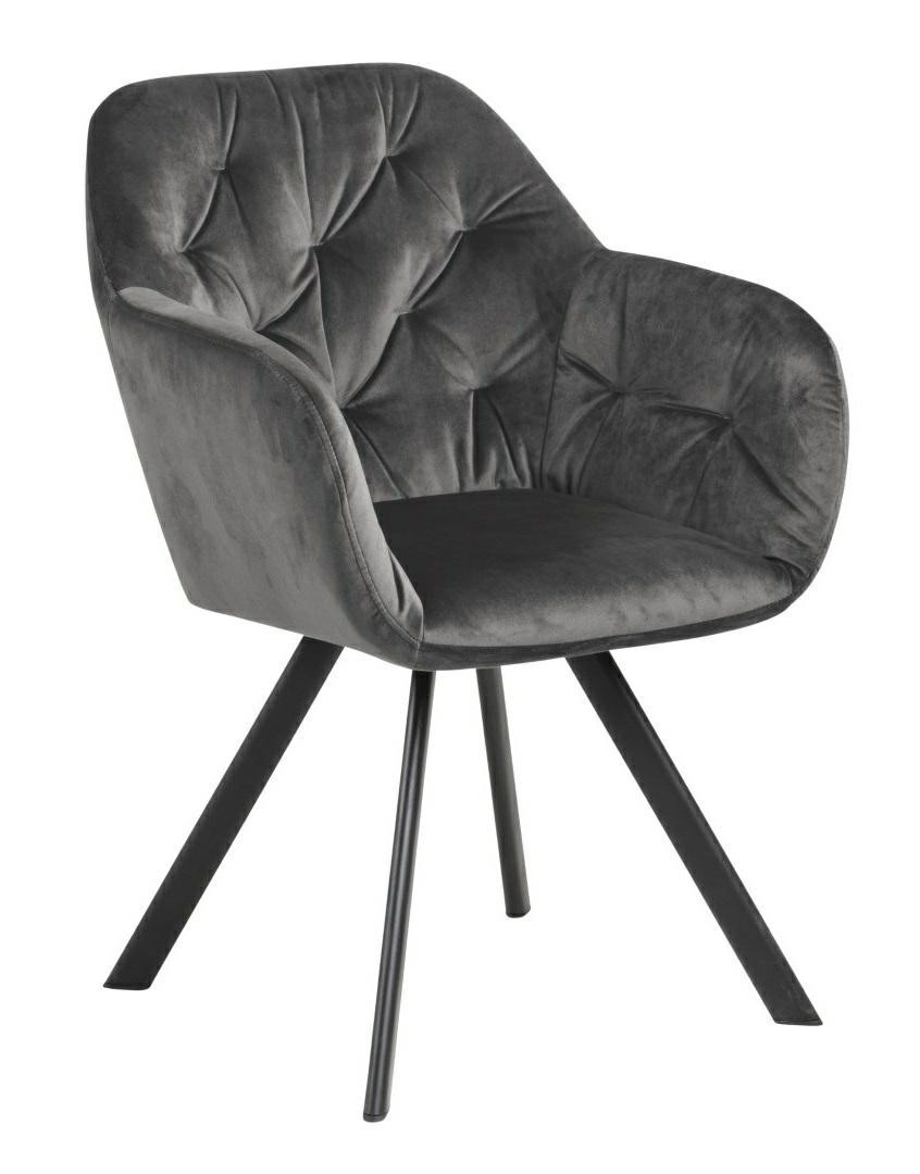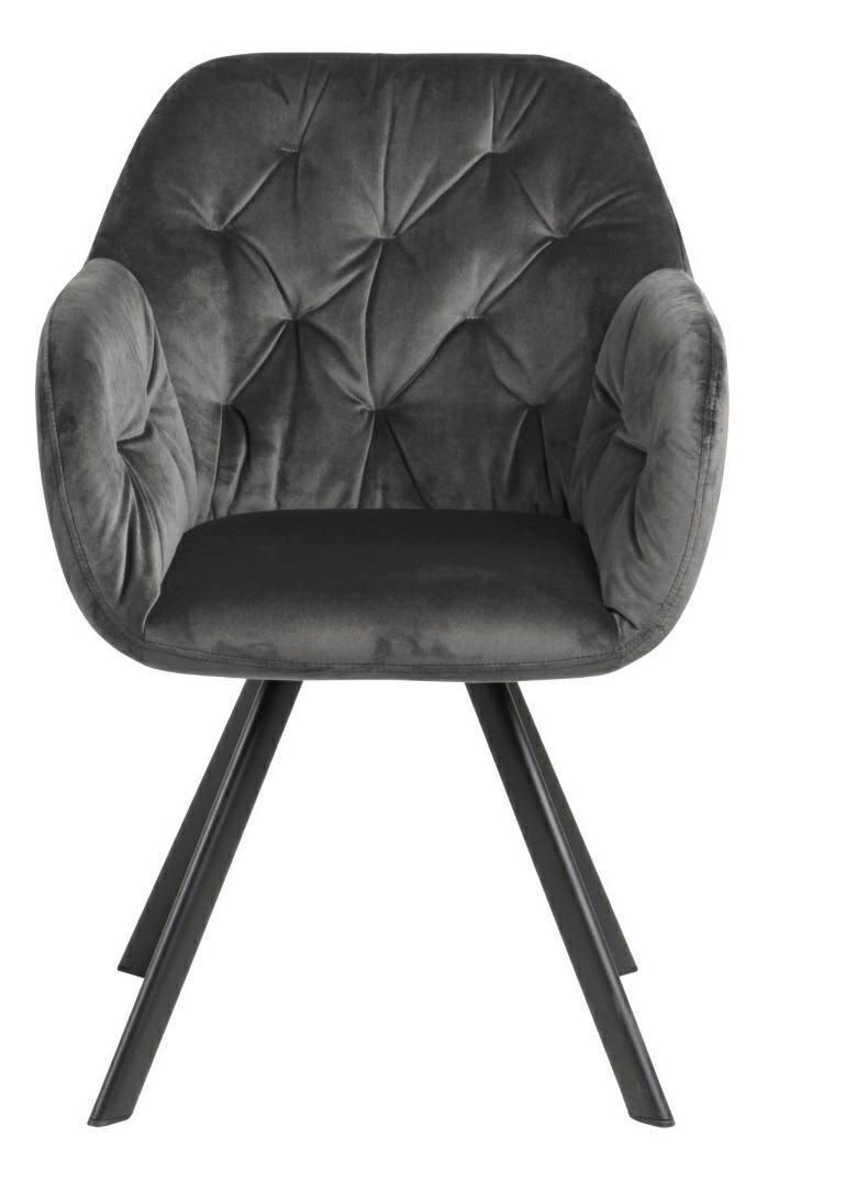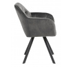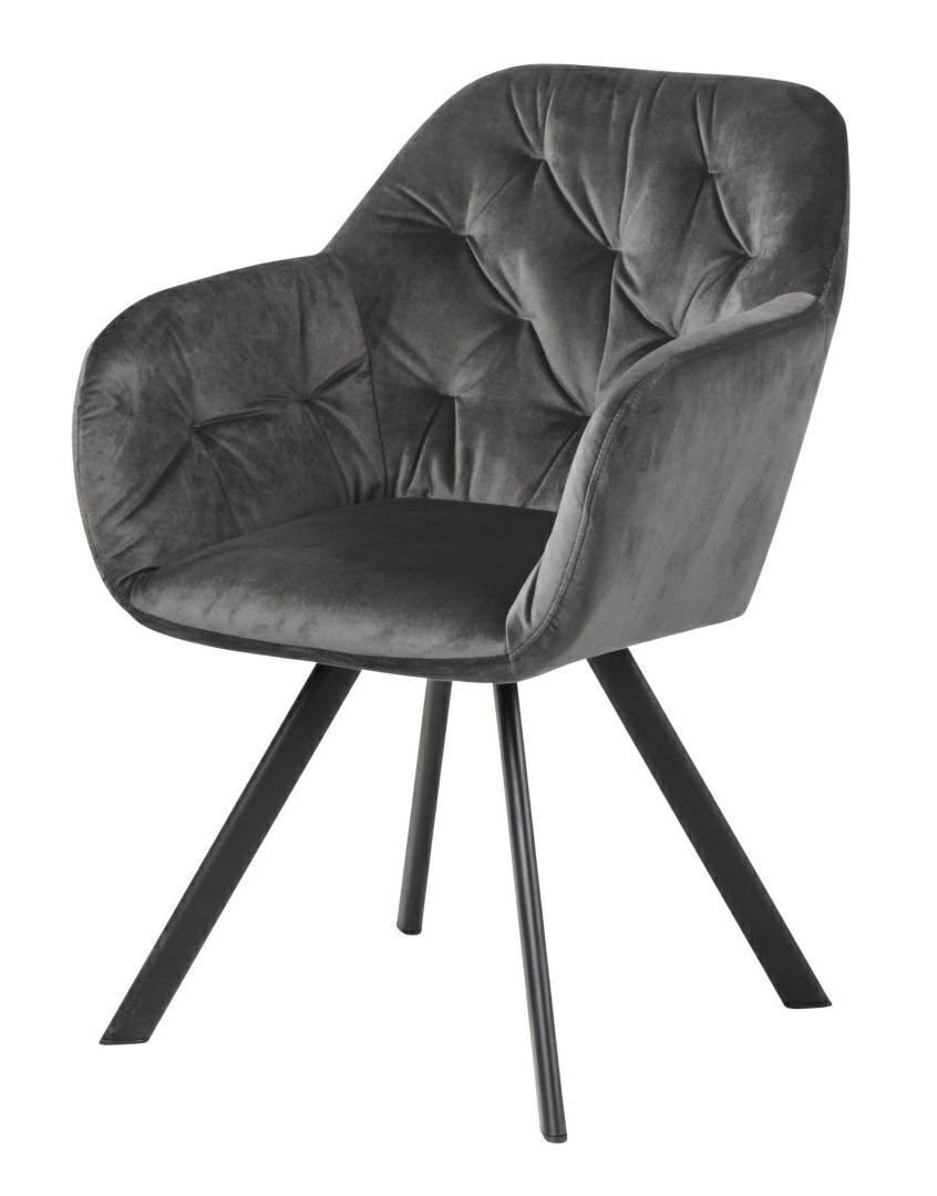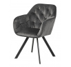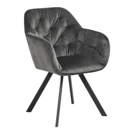 Stolička Lola je čalúnená stolička s mäkkou zamatovou látkou VIC fabric dark grey 28. Stolička má dokonale tvarované podrúčky, ktoré tvoria so sedadlom a operadlom jednotný celok. Operadlo stoličky bolo ozdobené prešívaním, ktoré mu dodáva štýl. Základom stoličky sú kovové nohy lakované čiernou práškovou farbou. Zaujímavý tvar základne dodáva celku ľahkosť. Stolička má funkciu "auto-return", ktorá zabezpečuje, že po skončení používania sa pohyblivé sedadlo vráti do správnej polohy. Maximálne zaťaženie: 120 kg. Hmotnosť stoličky: 11,4 kg Rozmery kartónu: 61 cm x 50,5 cm x 58 cm Maximálne množstvo ks. v kartóne: 1 Výška sedadla: 47,5 cm Šírka sedadla: 40 cm Hĺbka sedadla: 41 cm Výška podrúčok: 22 cm