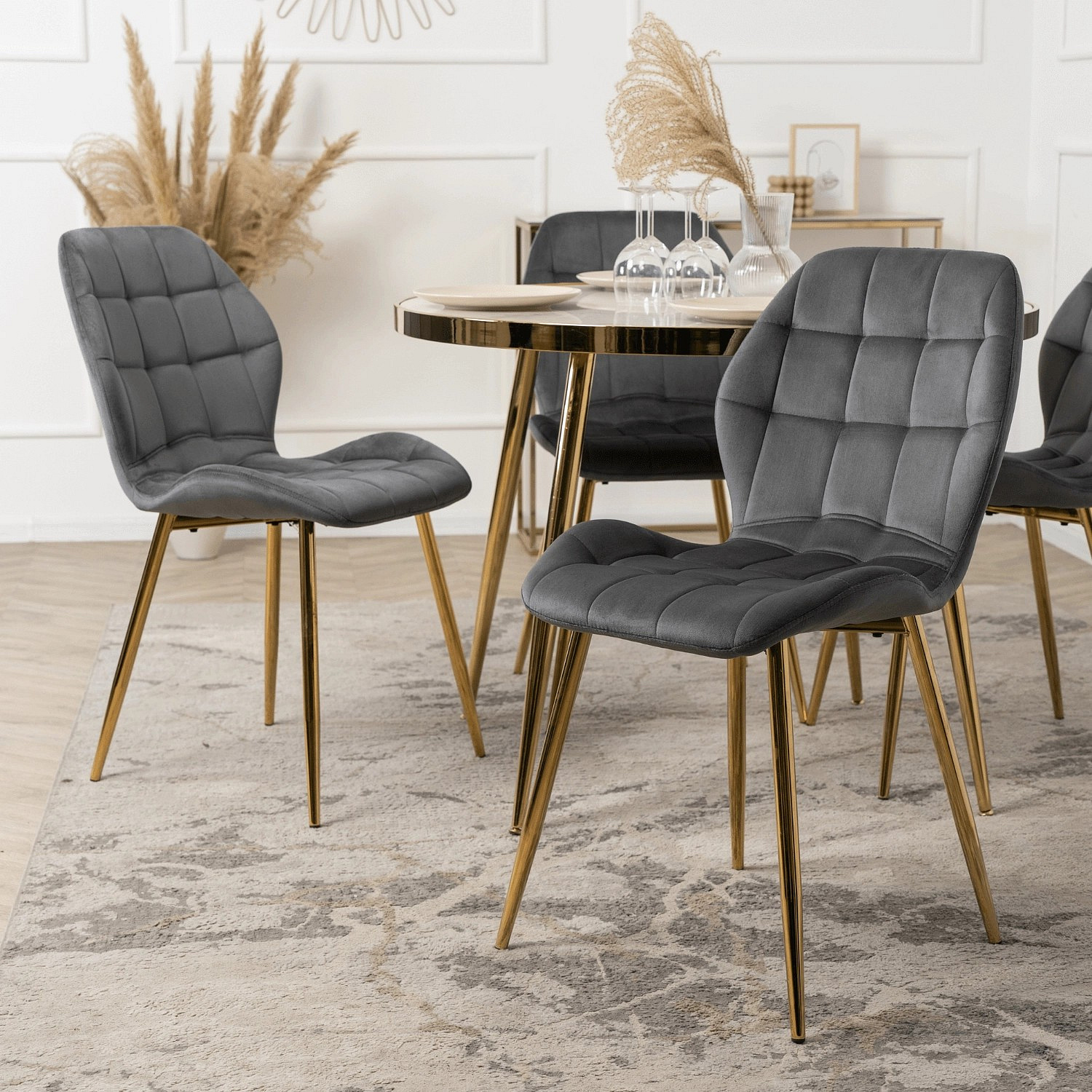 Stolička LUCKY Sivá so Zlatými Nohami Zamatová