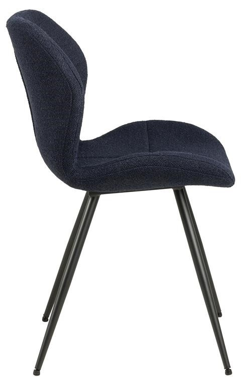 Vyzdobte svoju jedáleň elegantnou, tmavomodrou stoličkou Petri. Pozornosť upútava jeho neobvyklý tvar. Sedák je čalúnený mäkkou tkaninou bouclé, ktorá zaisťuje výnimočné pohodlie. Štvorcové švy dodávajú sedadlu textúru a pridávajú stoličke moderný charakter. Hlavné vlastnosti: Moderná jedálenská stolička s dekoratívnym štvorcovým prešívaním Čalúnená mäkkou tmavomodrou tkaninou bouclé s krútenou štruktúrou Okrúhle čierne kovové nohy zaisťujú štýl a stabilitu Dánsky dizajn chránený výhradne pre Actonu Počet kartónov: 1 Rozmery kartónov: 68x48x43cm Hmotnosť kartónov: 7kg Šírka sedadla: 48cm Hĺbka sedadla: 40cm