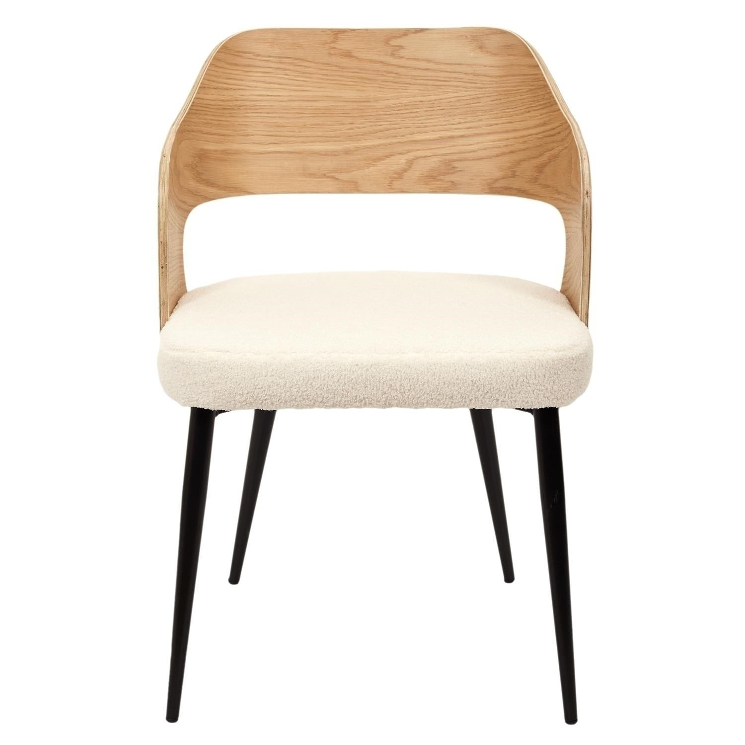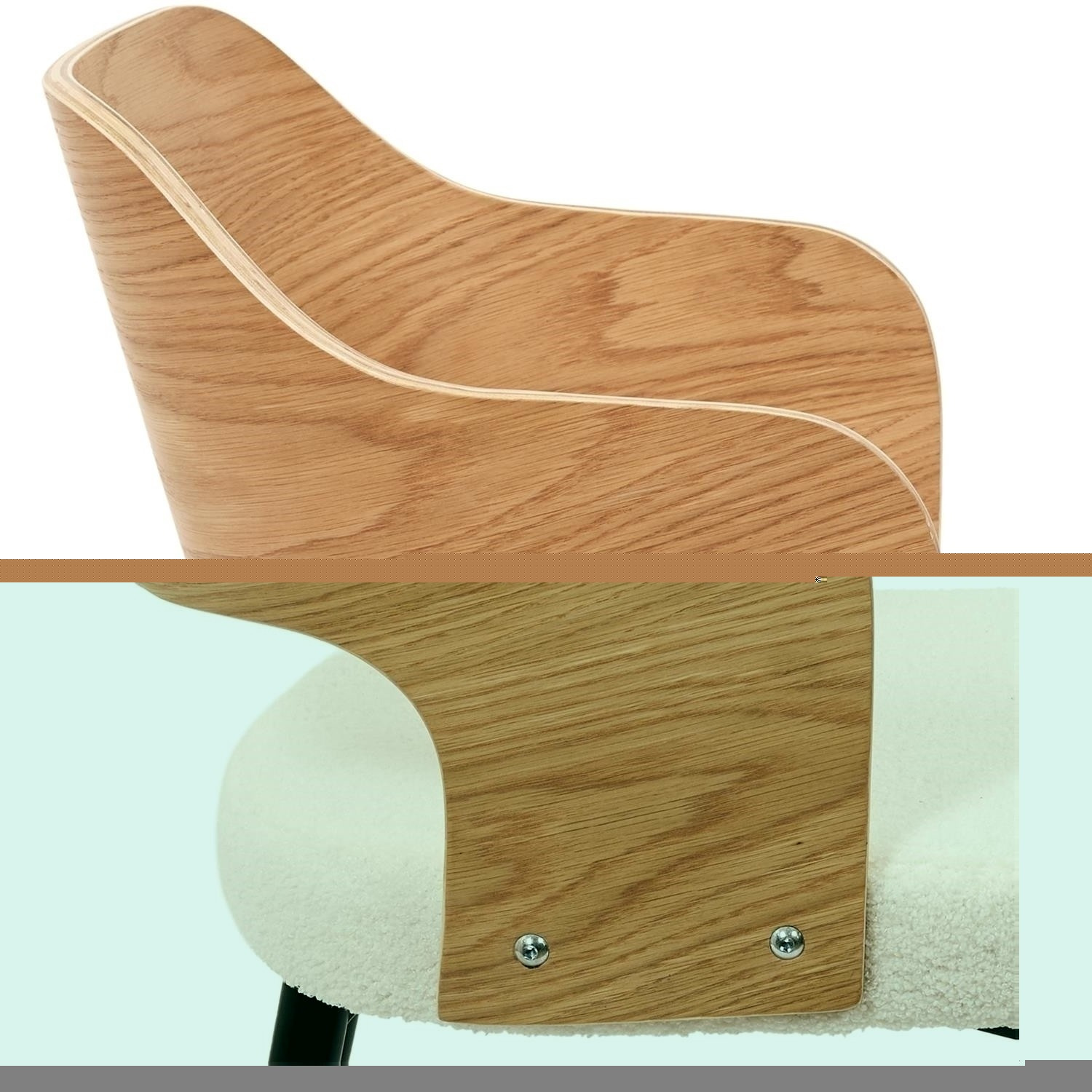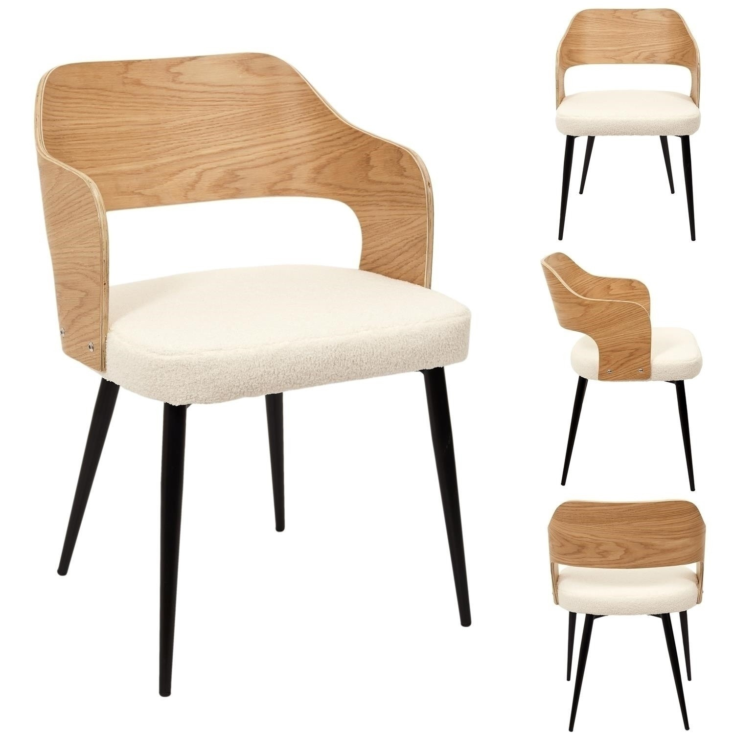 Stolička Roci je kombináciou ohýbanej preglejky operadla a mäkkého materiálu boucle na sedadle. Nadčasové materiály a farby vytvárajú stoličku, ktorá dokonale zodpovedá súčasným módnym trendom. Základom stoličky sú kovové nohy, práškovo lakované na čierno. Sedák je z preglejky pokrytý mäkkou čalúnnickou penou a dokončený módnou tkaninou boucle v svetlej, jemne krémovej farbe. Ohýbané operadlo z preglejky dodáva celému nábytku ľahkosť a prirodzený vzhľad. Max. zaťaženie 120 kg. Stolička vyžaduje montáž, Rozmery kartónu: 73x30x57cm. Max. 2 ks v kartóne