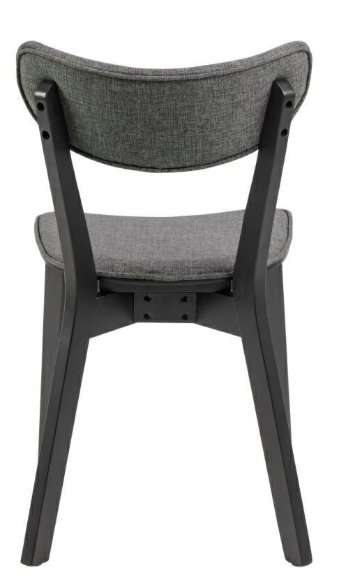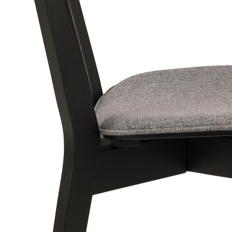 Stolička do jedálne Roxby má klasické tvary v modernom prevedení. Vďaka svojmu surovému dizajnu sa dobre prezentuje v moderných a loftových interiéroch. Kreslo do obývacej izby Roxby je vyrobené z odolných materiálov - príjemnej na dotyk látky a masívneho kaučukového dreva v čiernej farbe. Moderná stolička Roxby sa vďaka svojim kompaktným rozmerom hodí do kuchyne alebo obývacej izby. Stolička s podstavcom z masívneho dreva Roxby vytvorí komplet so stolom rovnakého mena. Tkanina použitá na čalúnenie sedadla a operadla je Spirit fabric grey 15. Hĺbka sedadla: 37,5 cm Šírka sedadla: 41,5 cm