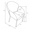 Rozmery: - šírka 61 cm - hĺbka: 55 cm - celková výška: 78 cm - podrobné rozmery na poslednej fotografii Materiál - čalúnenie: látka - nohy: kov lakovaný práškovou farbou Farba: - sedák: sivý - rám: čierny