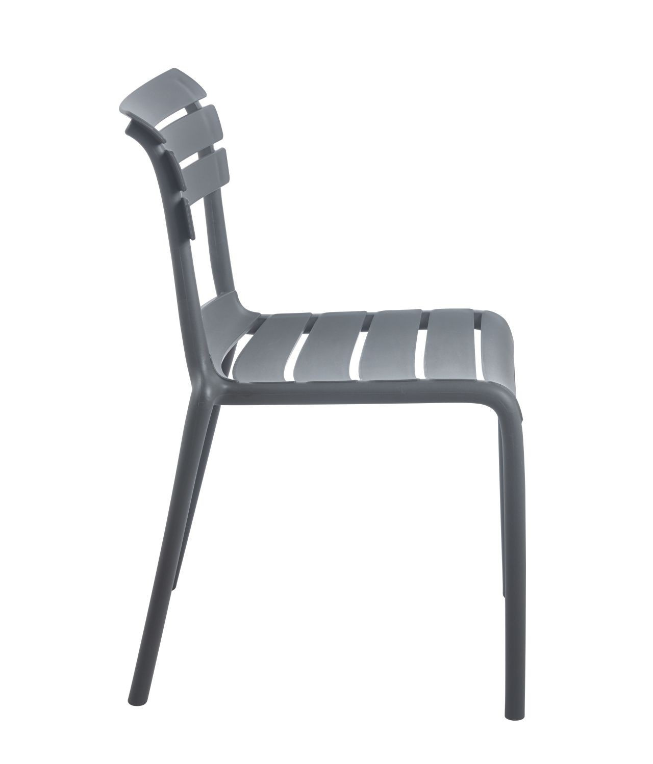 Rozmery: - výška: 81 cm - šírka: 42 cm - hĺbka: 45 cm - výška sedadla: 46 cm Materiál: - PP plast Farba: - sivá Ďalšie: - UV ochrana - možnosť stohovania