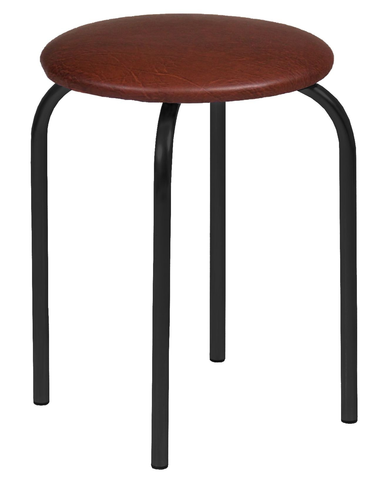Rozmery: - priemer sedadla: 35 cm - celková výška: 49 cm Materiál - čalúnenie: ekokoža - konštrukcia: kov s práškovým nástrekom Farba: - sedadlo: tmavohnedá - konštrukcia: čierna