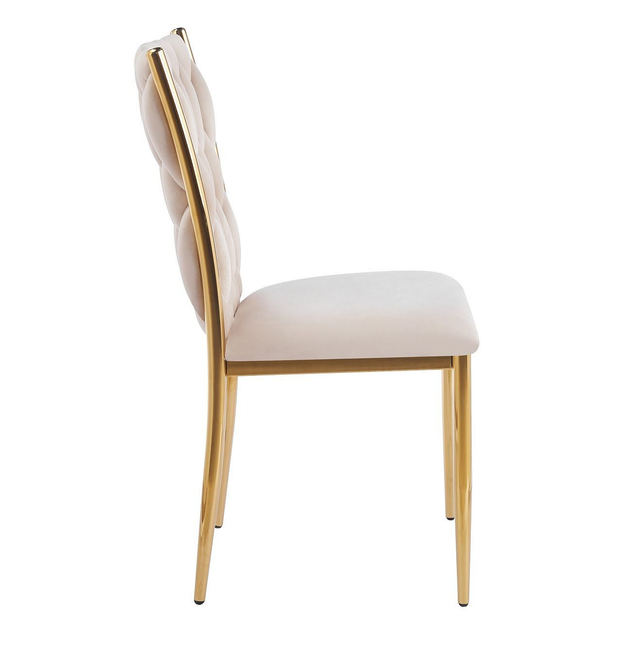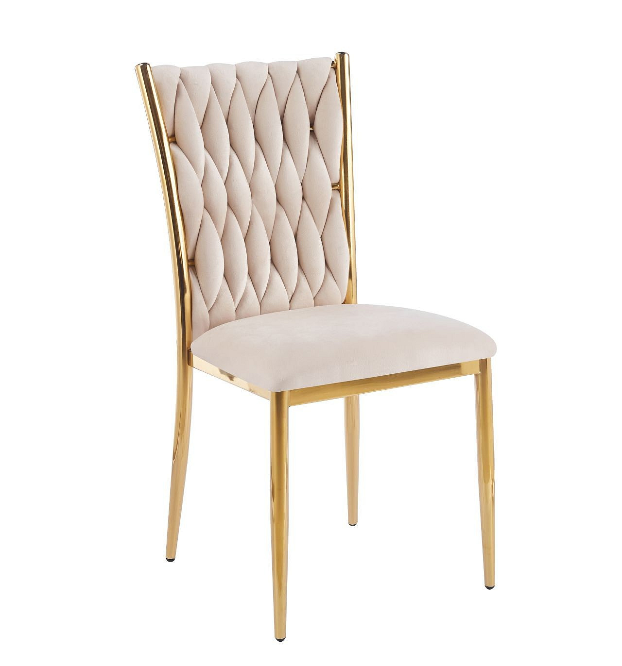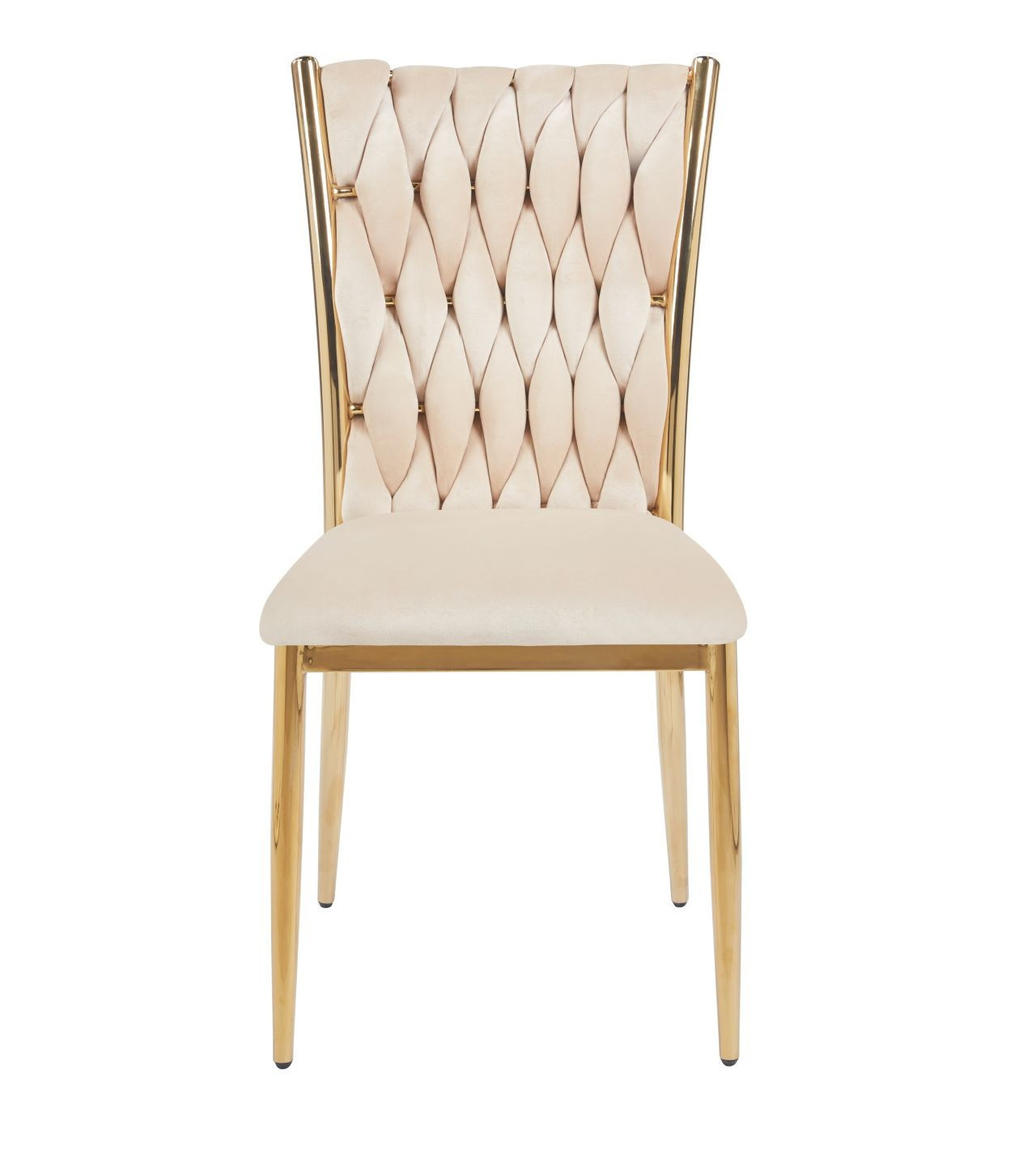 Rozmery: - šírka sedadla: 42 cm - celková šírka: 47 cm - výška sedadla: 46 cm - celková výška: 95 cm - hĺbka sedadla: 42 cm Materiál - čalúnenie: zamat - konštrukcia: chróm Farba: - sedadlo + operadlo: béžová - konštrukcia: zlatá