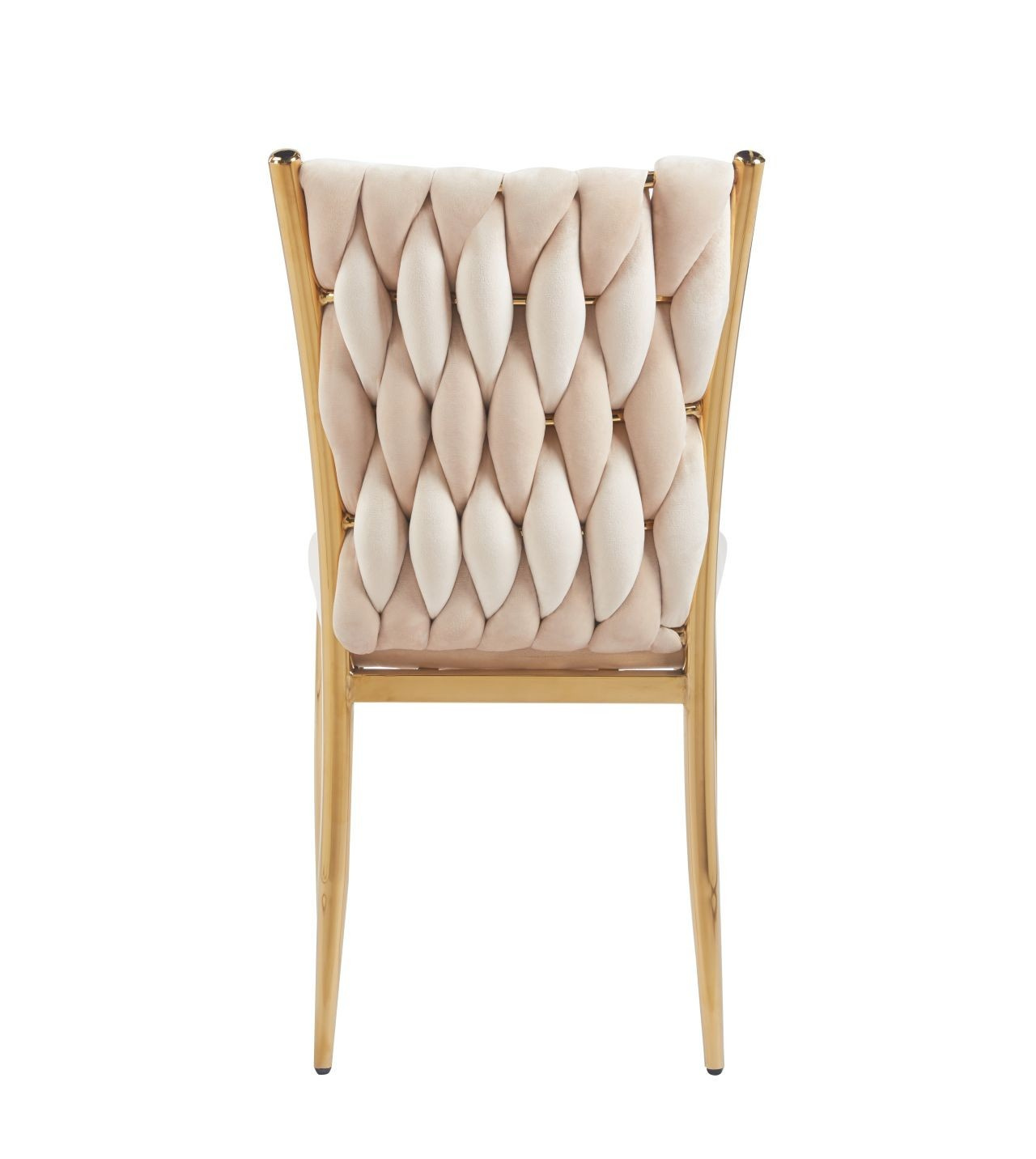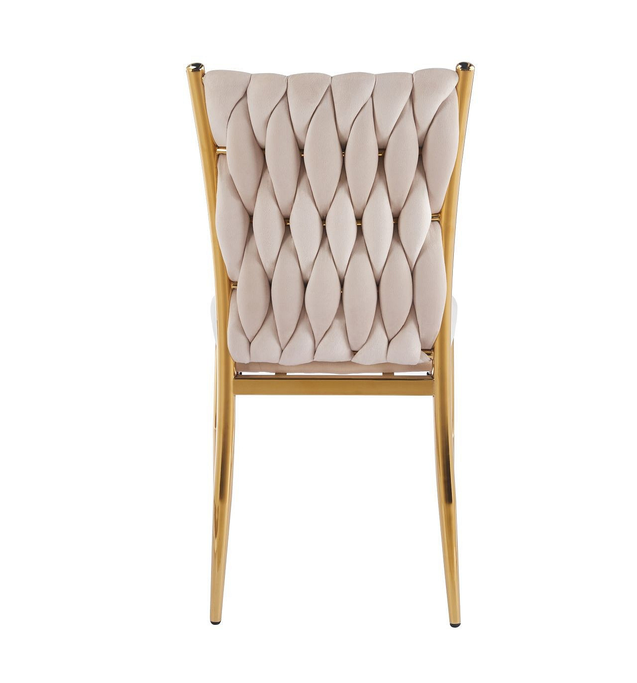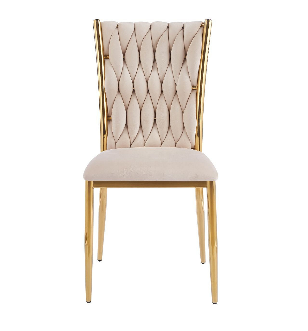 Rozmery: - šírka sedadla: 42 cm - celková šírka: 47 cm - výška sedadla: 46 cm - celková výška: 95 cm - hĺbka sedadla: 42 cm Materiál - čalúnenie: zamat - konštrukcia: chróm Farba: - sedadlo + operadlo: béžová - konštrukcia: zlatá