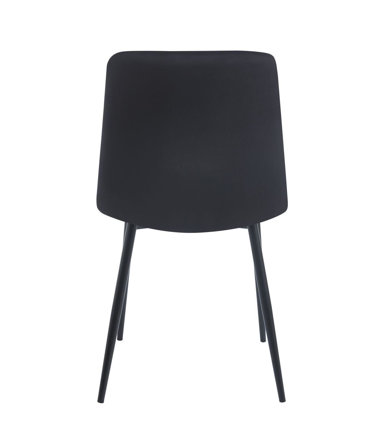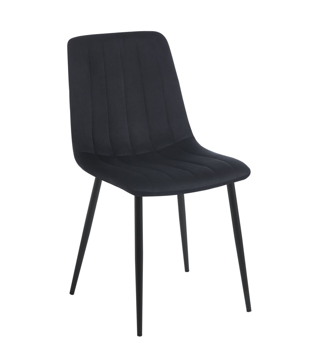 Rozmery: - šírka sedadla: 44 cm - výška sedadla: 49 cm - celková výška: 87 cm - hĺbka sedadla: 55 cm Materiál - čalúnenie: zamat - nohy: kov lakovaný práškovou farbou Farba: - sedadlo: čierne - nohy: čierne