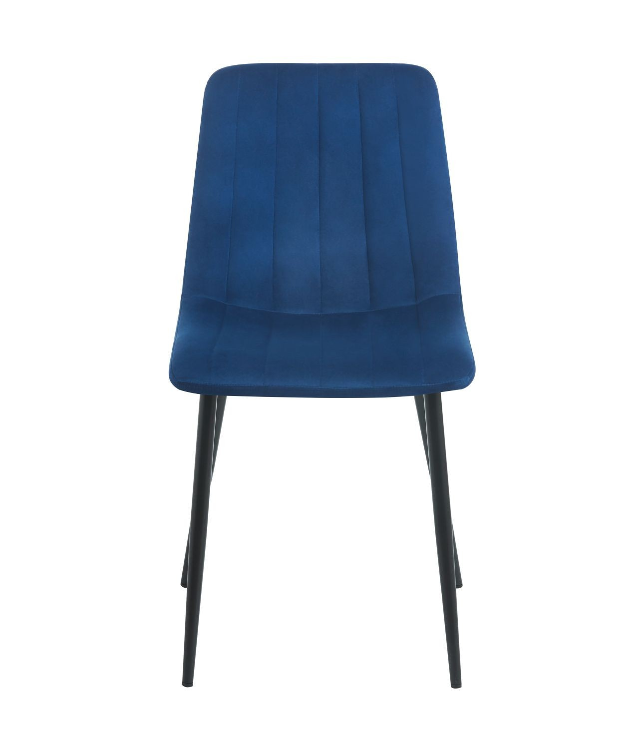 Rozmery: - šírka sedadla: 44 cm - výška sedadla: 49 cm - celková výška: 87 cm - hĺbka sedadla: 55 cm Materiál - čalúnenie: zamat - nohy: kov lakovaný práškovou farbou Farba: - sedadlo: modré - nohy: čierne