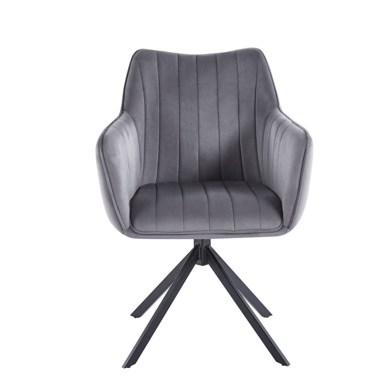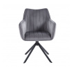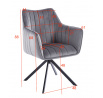 Stolička má sedadlo otočné v rozsahu 180 stupňov s funkciou návratu do východiskovej polohy.Rozmery: - celková šírka: 61 cm - šírka sedadla: 44 cm - výška sedadla: 45 cm - celková výška: 88 cm - hĺbka sedadla: 45 cm Materiál - čalúnenie: zamat - rám: kov s práškovým nástrekom Farba: - sedadlo: sivé - rám: čierny