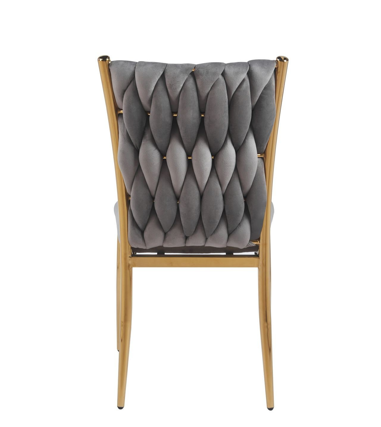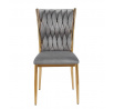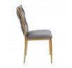 Rozmery: - šírka sedadla: 42 cm - celková šírka: 47 cm - výška sedadla: 46 cm - celková výška: 95 cm - hĺbka sedadla: 42 cm Materiál - čalúnenie: zamat - rám: chróm Farba: - sedadlo + operadlo: sivá - rám: zlatá