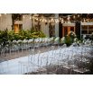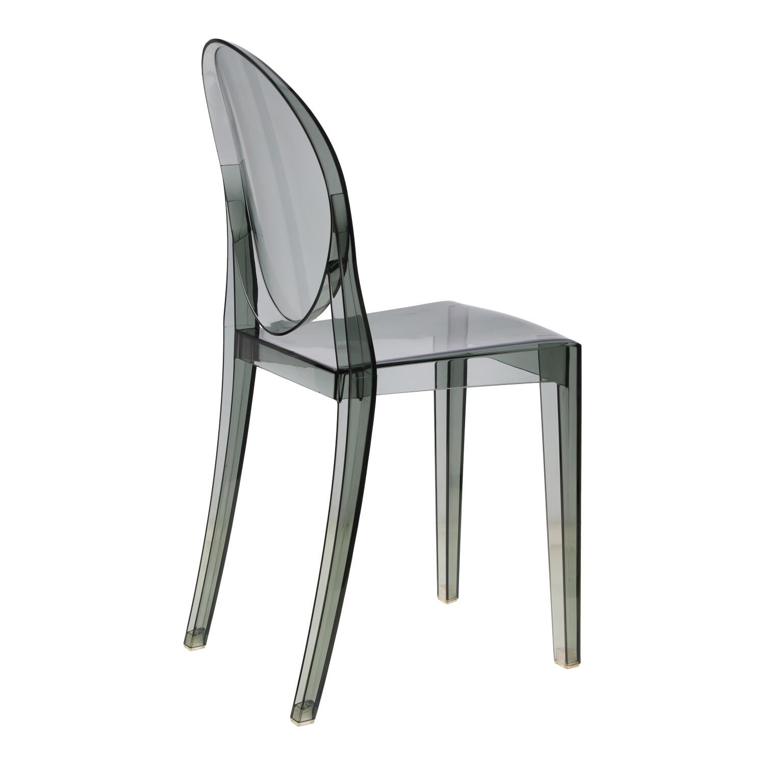 Vyrobené z jedného kusu polykarbonátu, stolička spája čistý dizajn a pevnú štruktúru s ľahkosťou vzhľadu. Zaoblená horná časť operadla kontrastuje s hranatým sedadlom, čo vytvára neočakávane elegantný celok. Okrem jemnosti formy je stolička stabilná a pevná, a navyše odolná voči poveternostným vplyvom.Prezentovaný produkt je inšpirovaný projektom Victoria.Maximálne zaťaženie je 120 kg