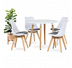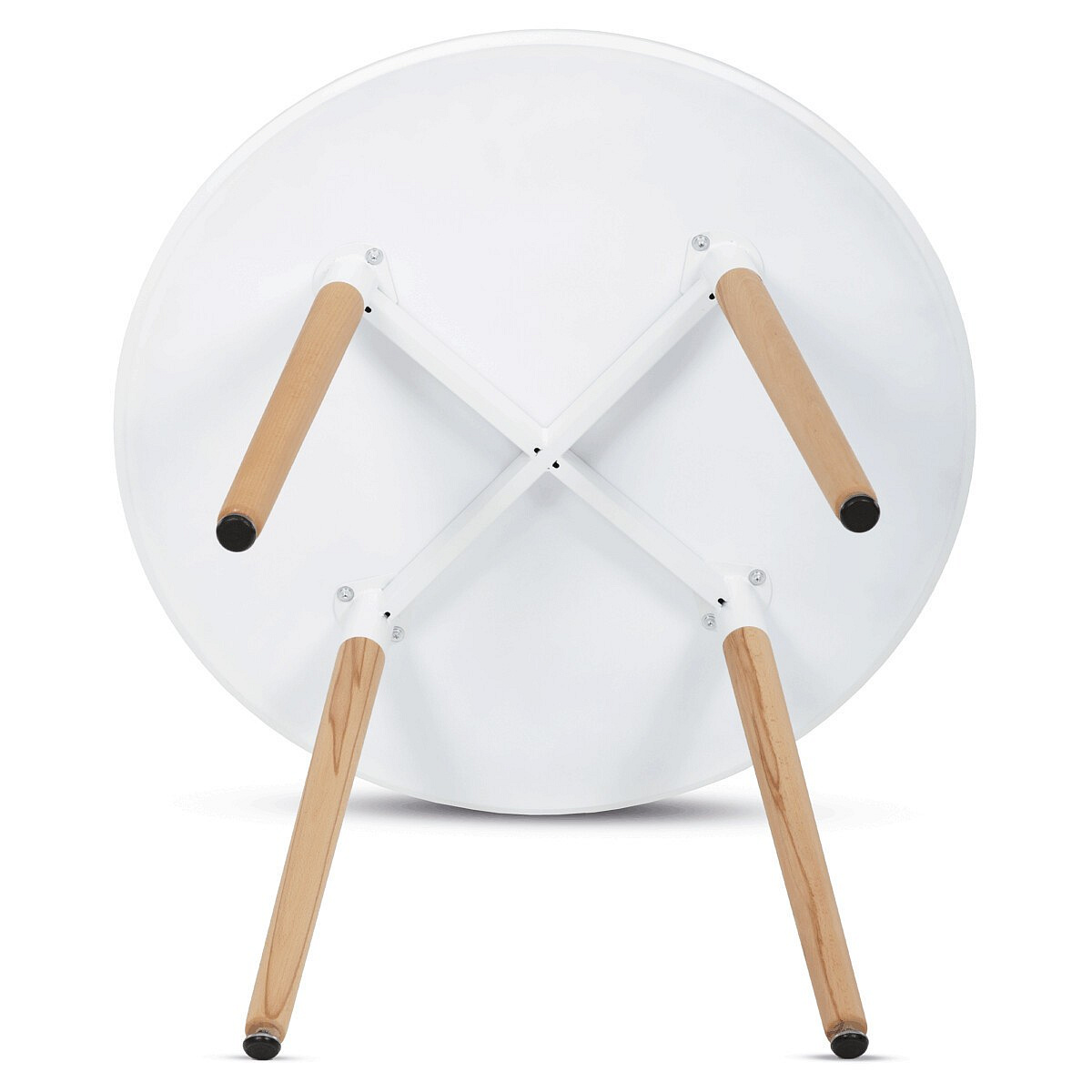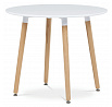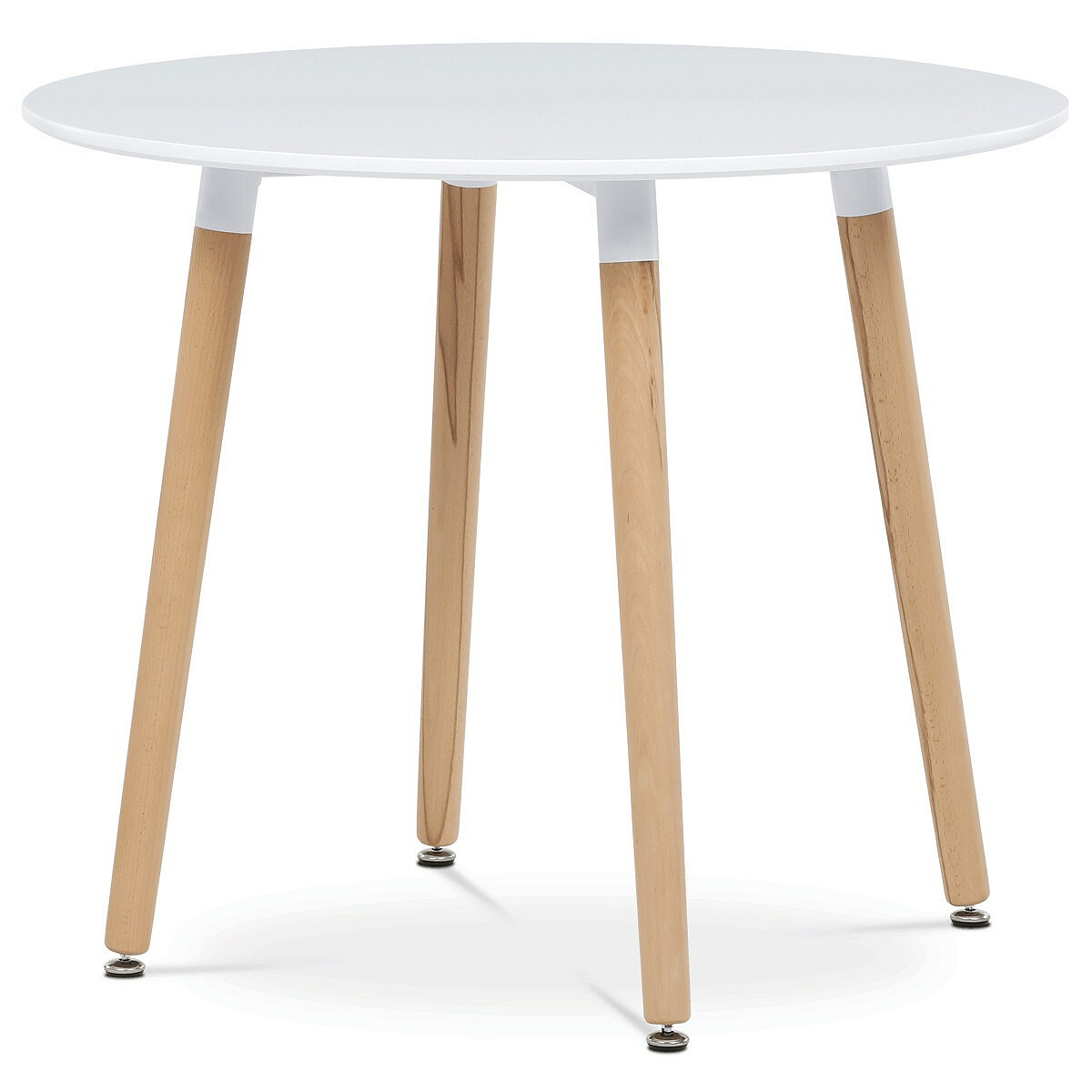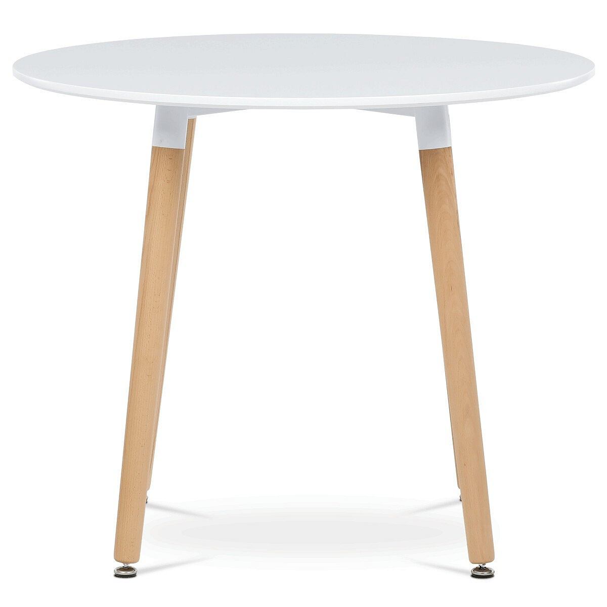 Jedálenský stôl, 90x90x74 cm, MDF - biely matný lak, kovová konštrukcia, drevené nohy