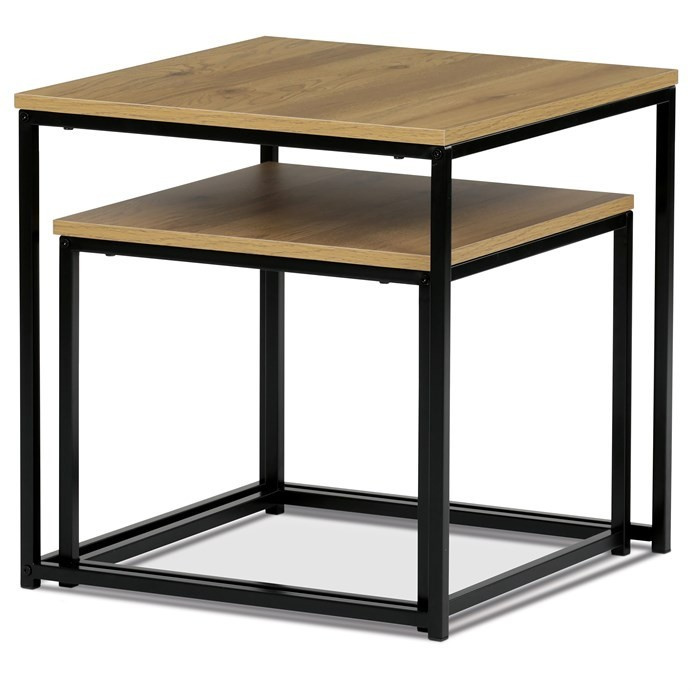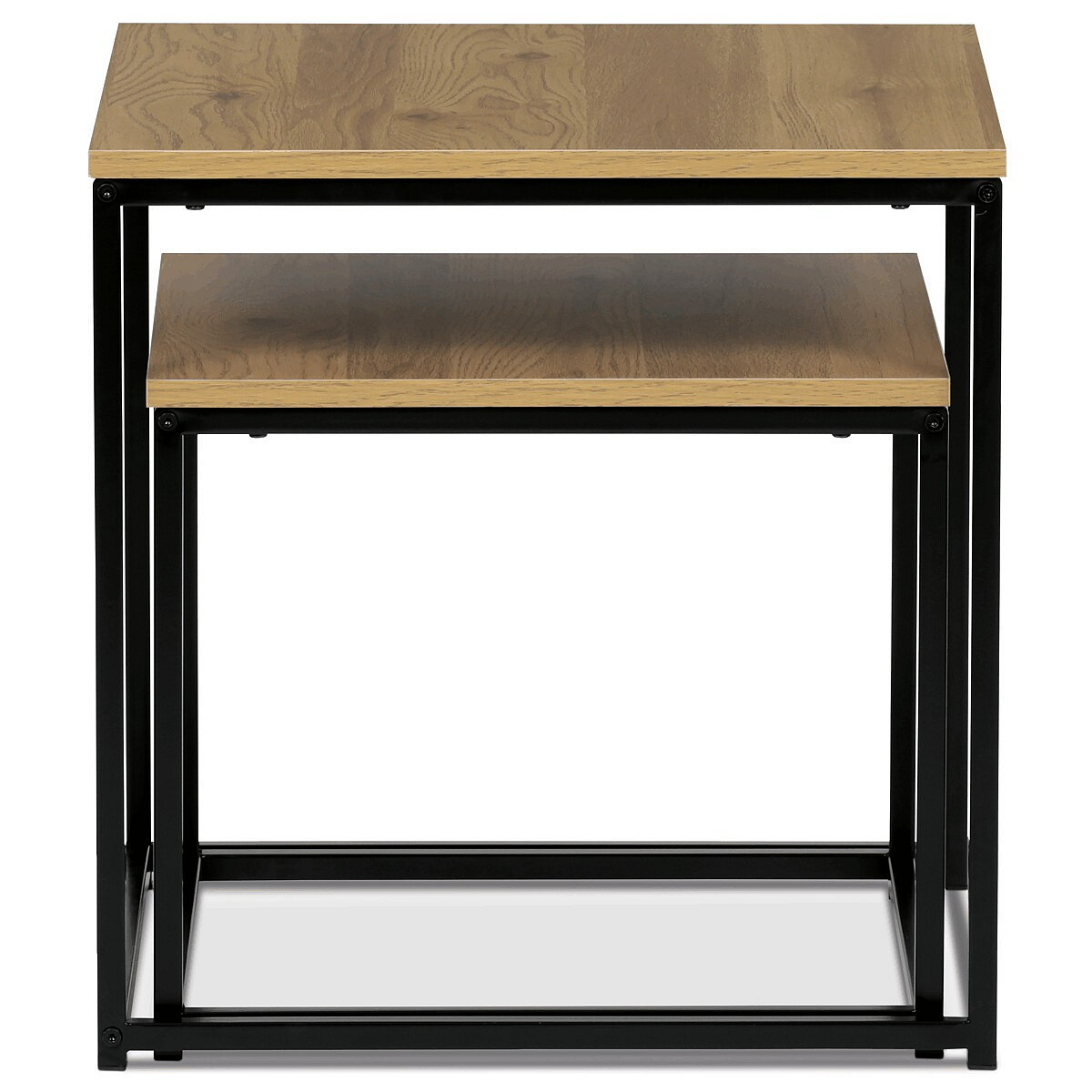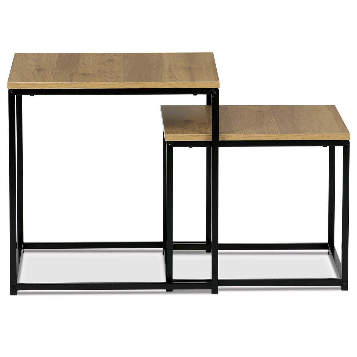 Súprava 2 odkladacích stolíkov, MDF, dekor divoký dub, kov, čierny lak