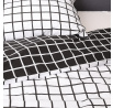 Súprava obliečok REYES sa skladá z obliečky na prikrývku s rozmermi 220 x 200 cm a dvoch obliečok na vankúš s rozmermi 70 x 80 cm. Zips obliečky na prikrývku je všitý na dlhšej strane. Vzor čiernobielej karty dominuje na oboch stranách obliečky - jedna je však čierna s bielou mriežkou a druhá biela s čiernou. Ty rozhoduješ, na akú farbu máš chuť!