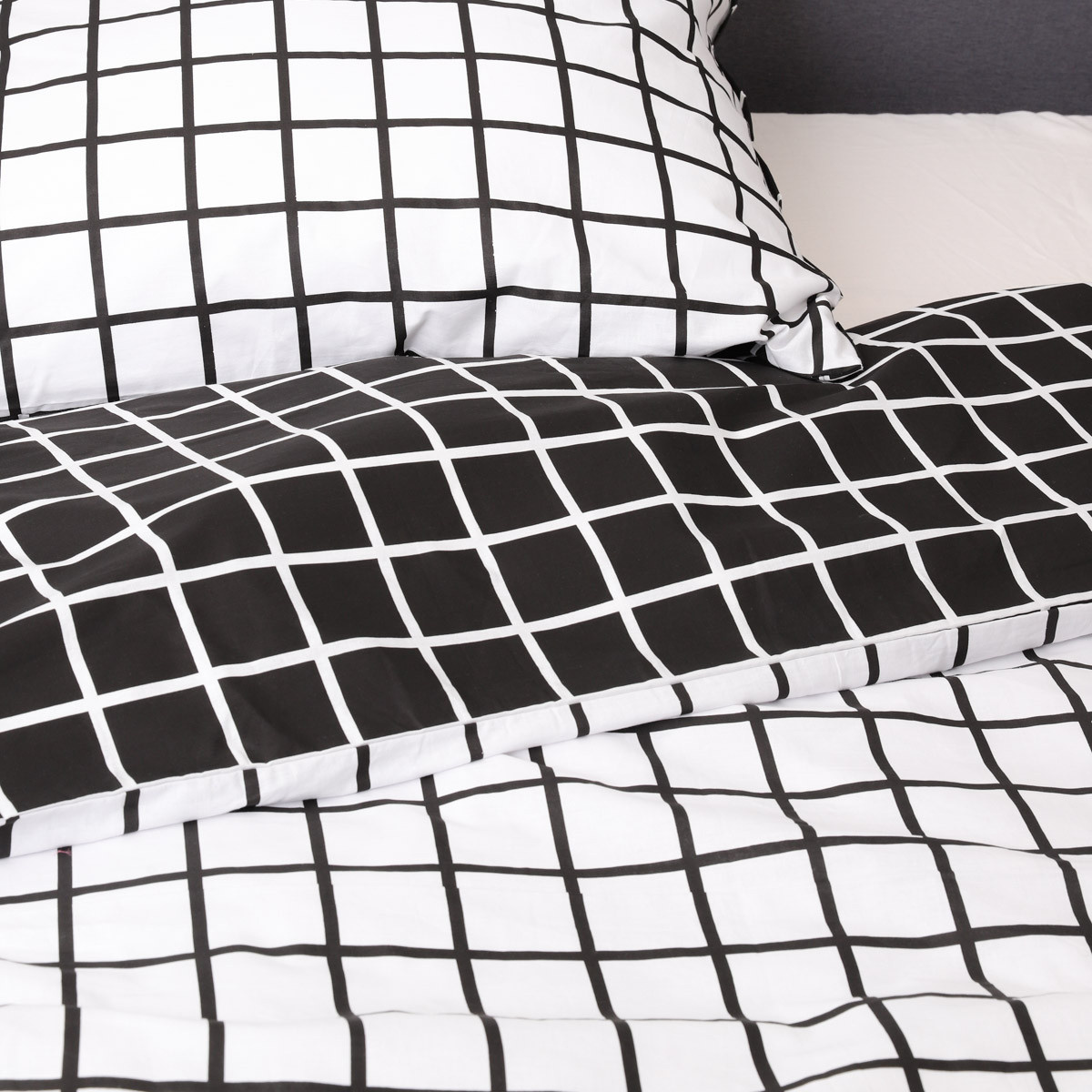 Súprava obliečok REYES sa skladá z obliečky na prikrývku s rozmermi 220 x 200 cm a dvoch obliečok na vankúš s rozmermi 70 x 80 cm. Zips obliečky na prikrývku je všitý na dlhšej strane. Vzor čiernobielej karty dominuje na oboch stranách obliečky - jedna je však čierna s bielou mriežkou a druhá biela s čiernou. Ty rozhoduješ, na akú farbu máš chuť!
