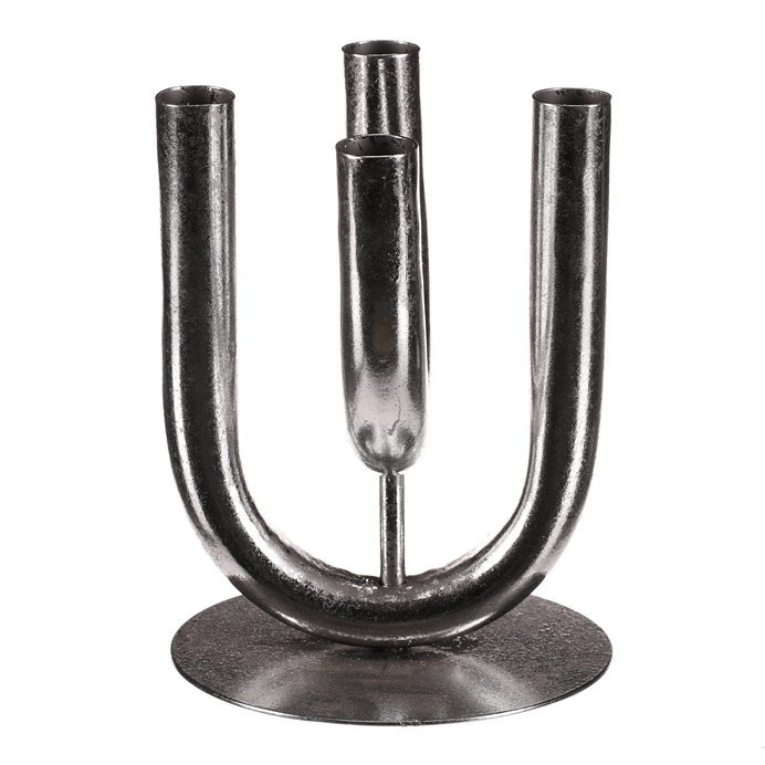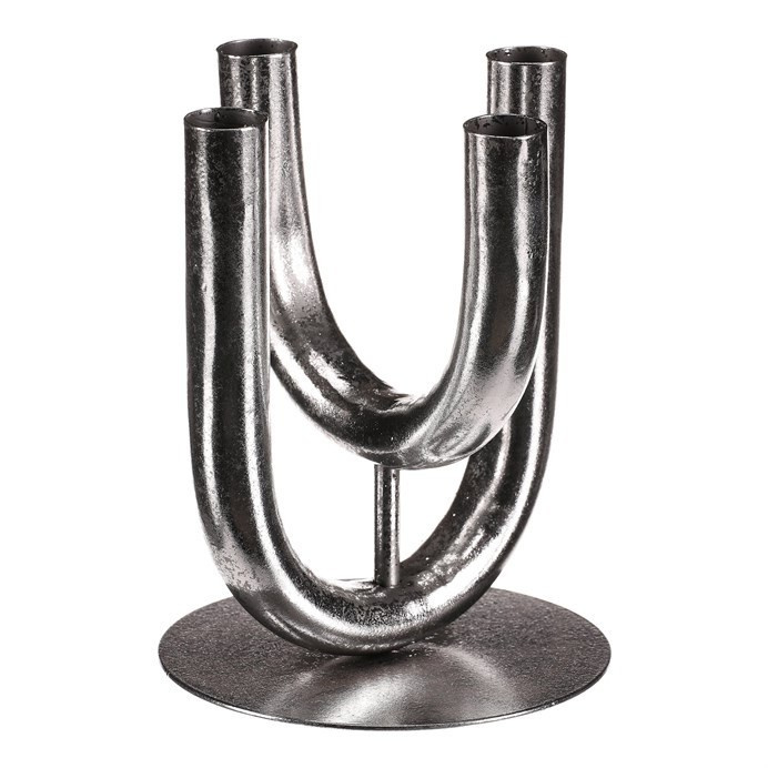 Čtyřramenný kovový svícen ve stříbrné barvě a uzpůsobený pro umístění kónických svíček, je elegantním doplňkem pro vaše adventní aranžmá, případně i pro celoroční použití. Jeho unikátní design ve tvaru dvou překřížených "U" nad sebou, přináší do vašeho domova stylový dotek, který zdůrazní atmosféru klidu a pohody. S tímto svícnem budete mít možnost vytvořit si nezapomenutelné okamžiky a podtrhnout jedinečnost každého momentu.