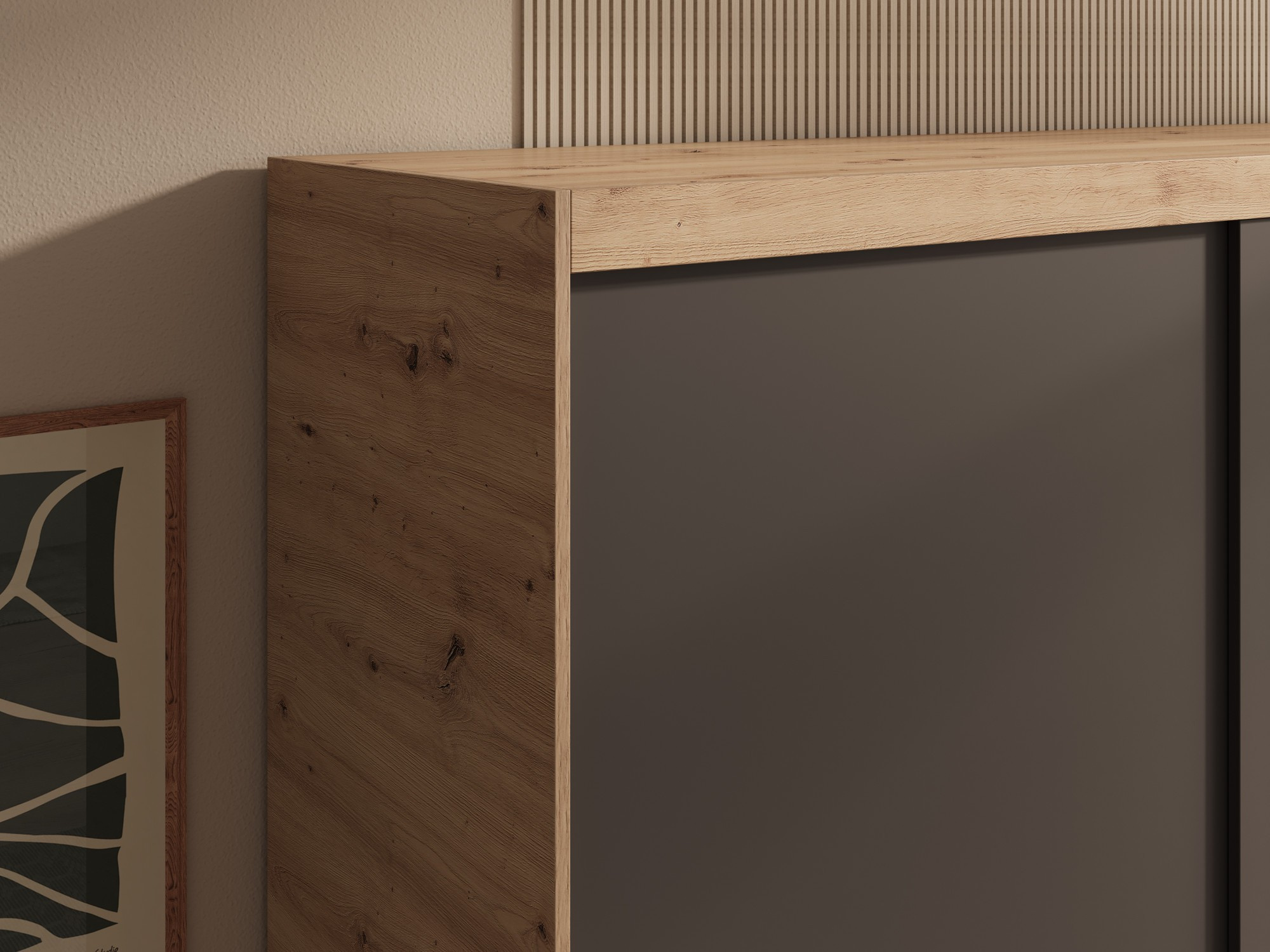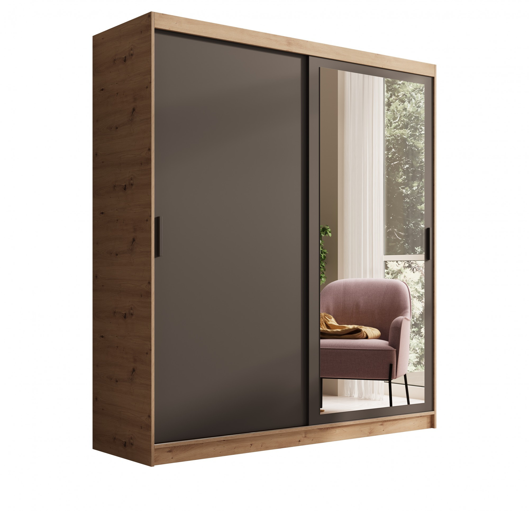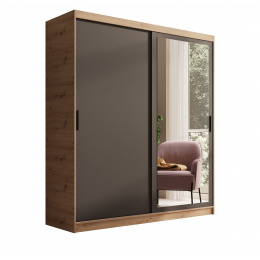 Šatní skriňa s posuvnými dverami a zrkadlom Hailey 180 Artisan+Čierna