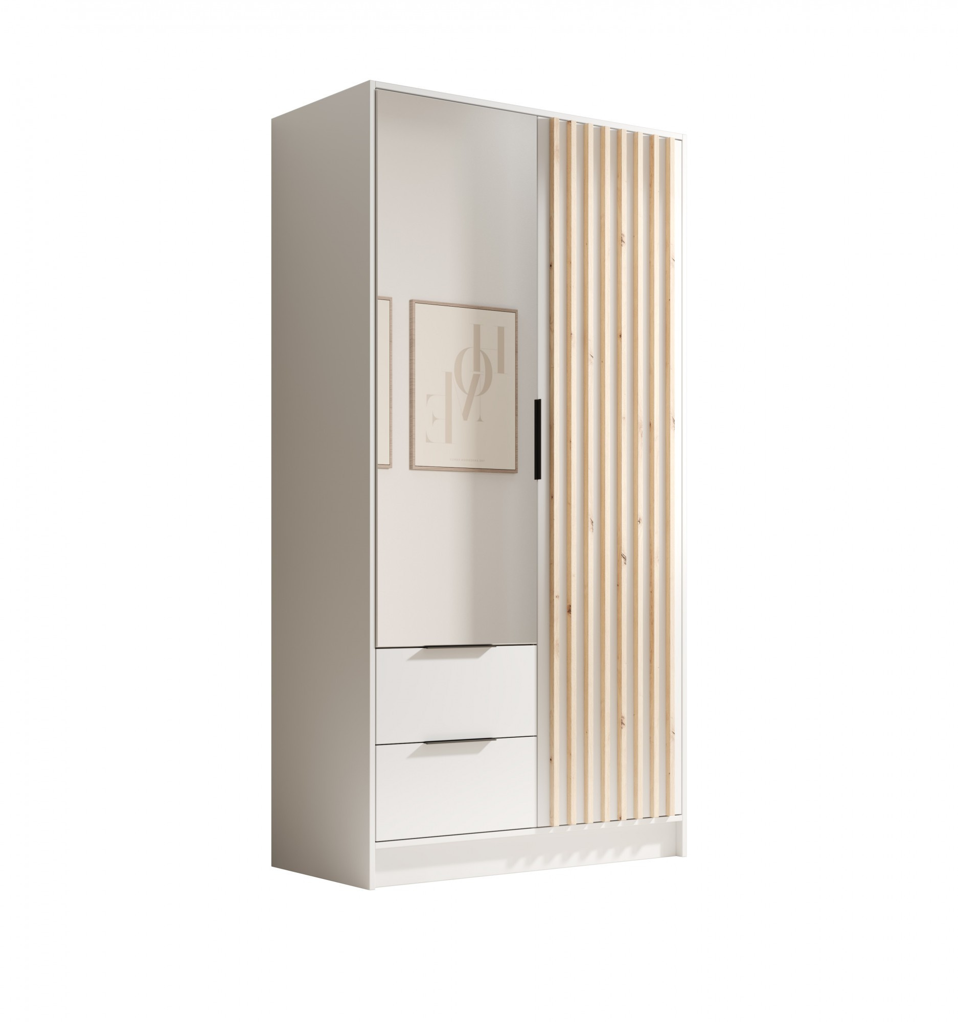 Šatní skriňa Neri – elegantná a funkčná skriňa, ktorá sa dokonale hodí do moderných aj klasických interiérov. Vďaka širokej škále farieb si každý nájde verziu, ktorá dokonale ladí s jeho štýlom. Skriňa Neri sa vyznačuje dekoratívnymi lamelami na čelných stranách a veľkým zrkadlom, ktoré opticky zväčší priestor a dodá mu ľahkosť.Skriňa je k dispozícii v troch praktických veľkostiach:- 100 cm – kompaktná, ideálna pre menšie priestory,- 150 cm – vynikajúci kompromis medzi priestorom a veľkosťou,- 200 cm – priestranná varianta, ideálna pre uloženie väčšieho šatníka.Každá z verzií bola navrhnutá s ohľadom na pohodlie používateľa a estetiku, ktorá obohatí každú spálňu alebo šatník.