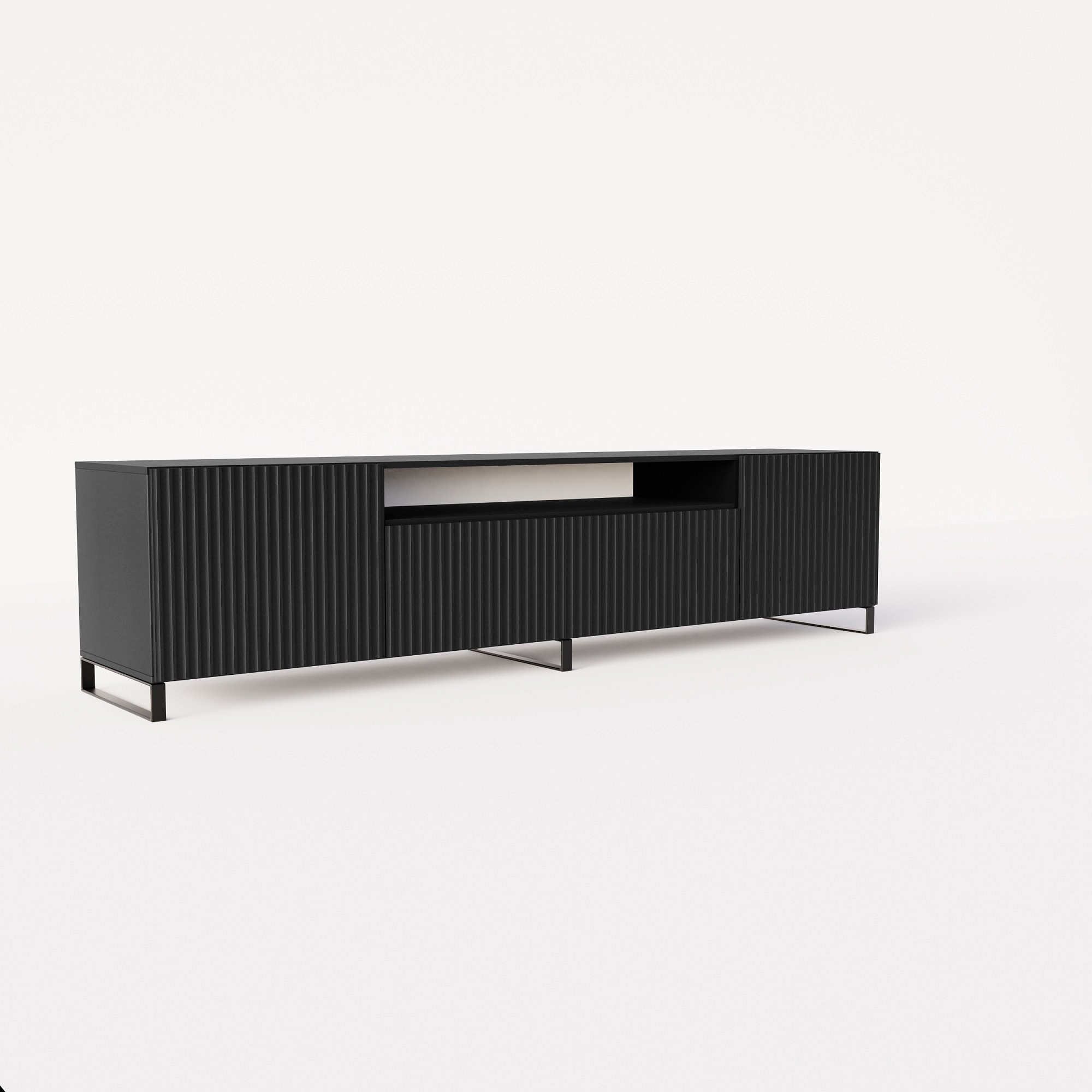 RTV Noemi je moderná, elegantná a funkčná televízna skrinka, ideálna na použitie v moderných interiéroch. Jeho unikátnou vlastnosťou je drážkované prevedenie, ktoré dodáva nábytku charakter a textúru. Skrinka bola navrhnutá tak, aby obsahovala vhodné priehradky a police na uloženie rôznorodého elektronického vybavenia, vrátane televízie, set-top boxu, hernej konzoly a mnohých ďalších.