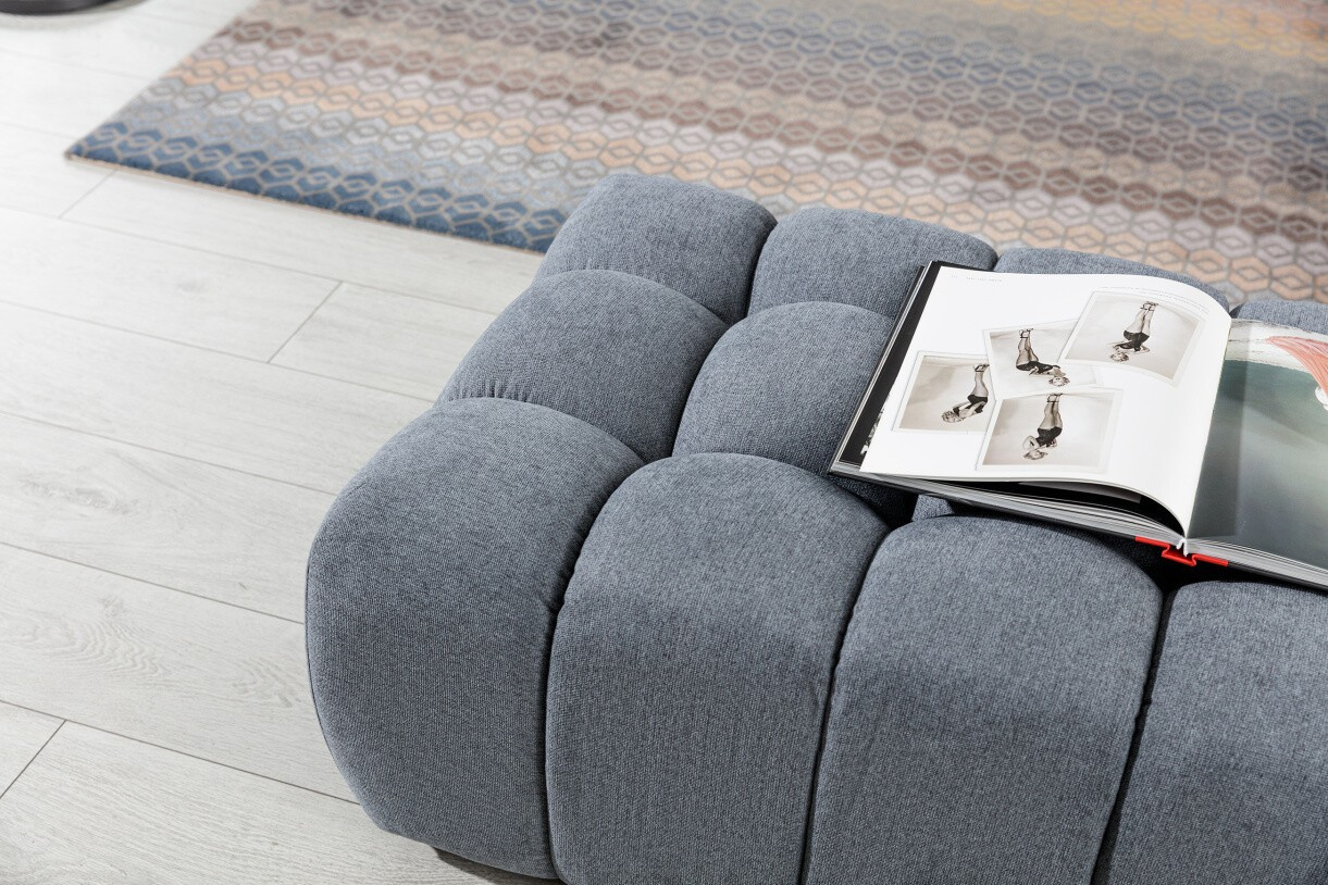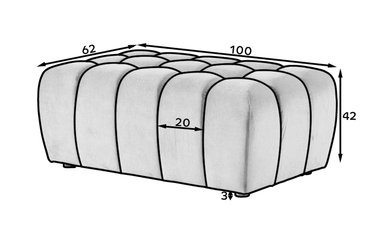 Lazaro je puf s jedinečným dizajnom, ktorý upúta pozornosť každého, kto dáva prednosť štýlovým obytným priestorom. Jeho rozmery 102 x 64 x 40 cm a ľahkosť vám umožňujú prispôsobiť jeho polohu podľa vašich potrieb. Lazaro puf je multifunkčný, pretože sa môže premeniť na ďalšie miesto na sedenie, pohodlnú opierku nôh alebo stôl. Naša puf je charakterizovaná neobvyklým tvarom a výnimočnou - na prvý pohľad - mäkkosťou. Ďalší charakter mu dodáva hlboké prešívanie a quiltovanie. Pri výbere správnej farby a látky pre vás - máme širokú škálu možností, takže si každý nájde niečo pre seba. Takéto riešenie vám zaručí najvyššiu úroveň pohodlia. Sedák je vyrobený z vlnitej pružiny a peny HR+T21. Taburet Lazaro je tiež k dispozícii v sade s vkusnou pohovkou a kreslom.