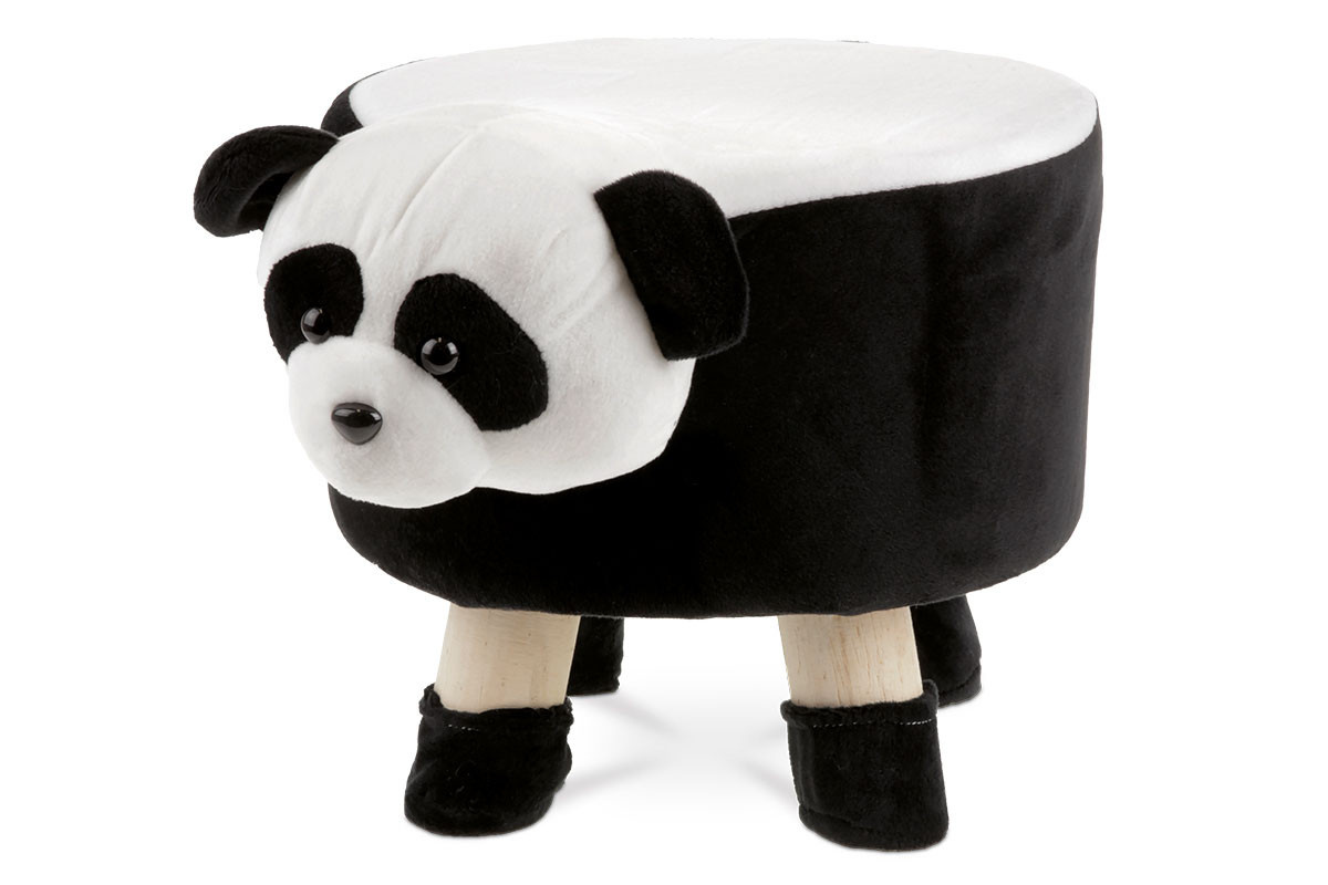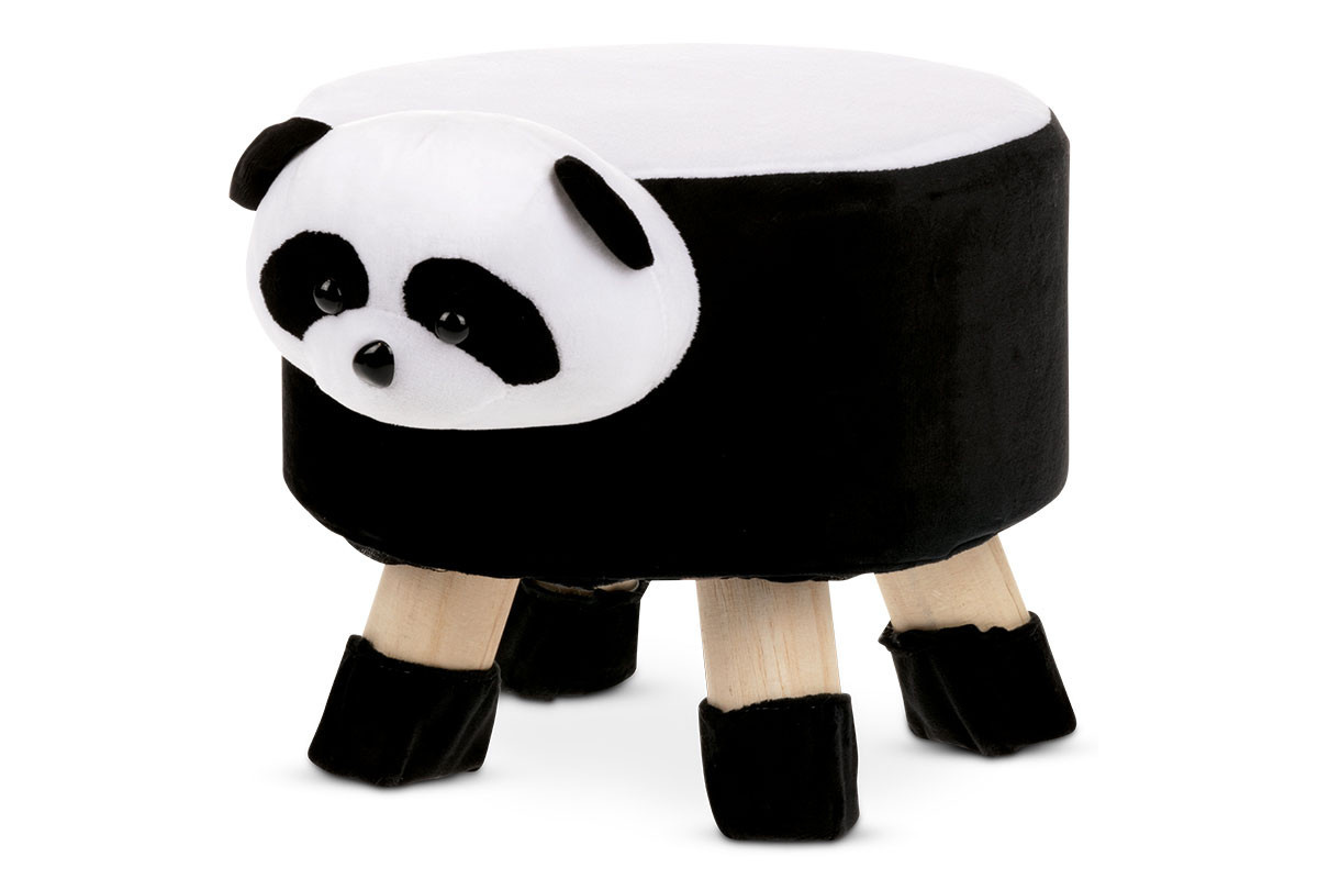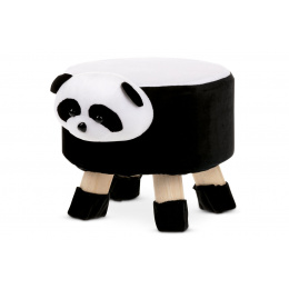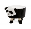 Taburette - panda, kombinácia čiernej a bielej tkaniny z mikroflísu, masívne nohy z kaučukového dreva