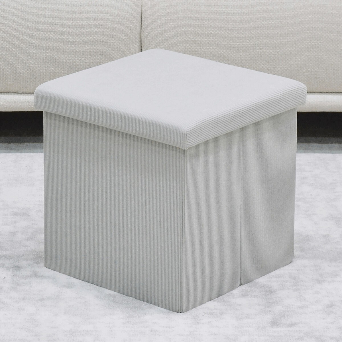 Taburet s úložným priestorom, krémová menčestrová látka