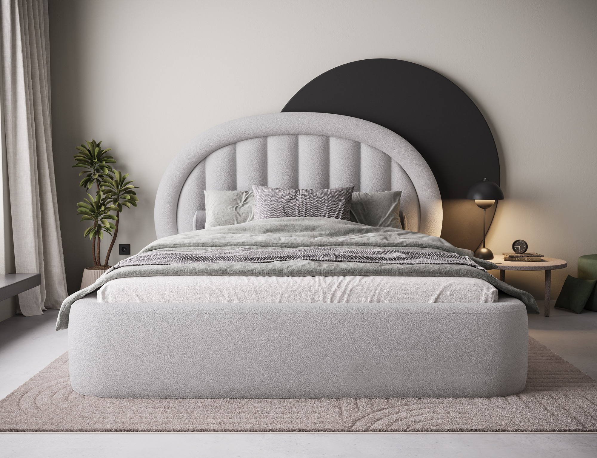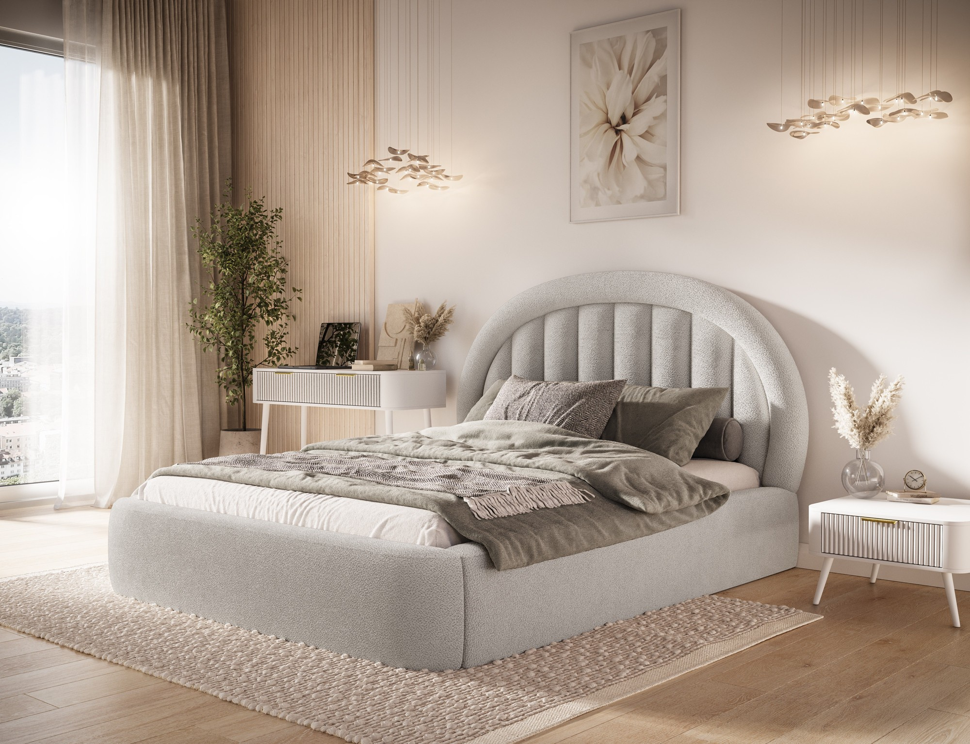 Posteľ do spálne Tapedo kombinuje moderný dizajn, funkčnosť a pohodlie pri spaní. Dostupné v troch veľkostných variantoch: 140x200 cm, 160x200 cm a 180x200 cm, umožňuje prispôsobiť šírku vašim individuálnym potrebám – 165 cm, 185 cm alebo 205 cm. Celková výška postele je 131 cm a hĺbka je 221 cm, čo konštrukcii dodáva elegantný a vyvážený vzhľad. Výplň z vysoko kvalitnej polyuretánovej peny T2130 zabezpečuje optimálnu podporu tela a vynikajúce pohodlie. Posteľ Tapedo je vybavená praktickým úložným priestorom na posteľnú bielizeň, ktorý uľahčuje udržiavanie poriadku vo vašej spálni. Stabilné čierne plastové nohy dodávajú dizajnu ľahkosť a moderný nádych. Vďaka svojej solídnej remeselnej práci, funkčným vlastnostiam a estetickej forme, posteľ Tapedo dokonale dopĺňa moderné interiérové usporiadanie, čím vytvára elegantný a útulný priestor pre odpočinok.